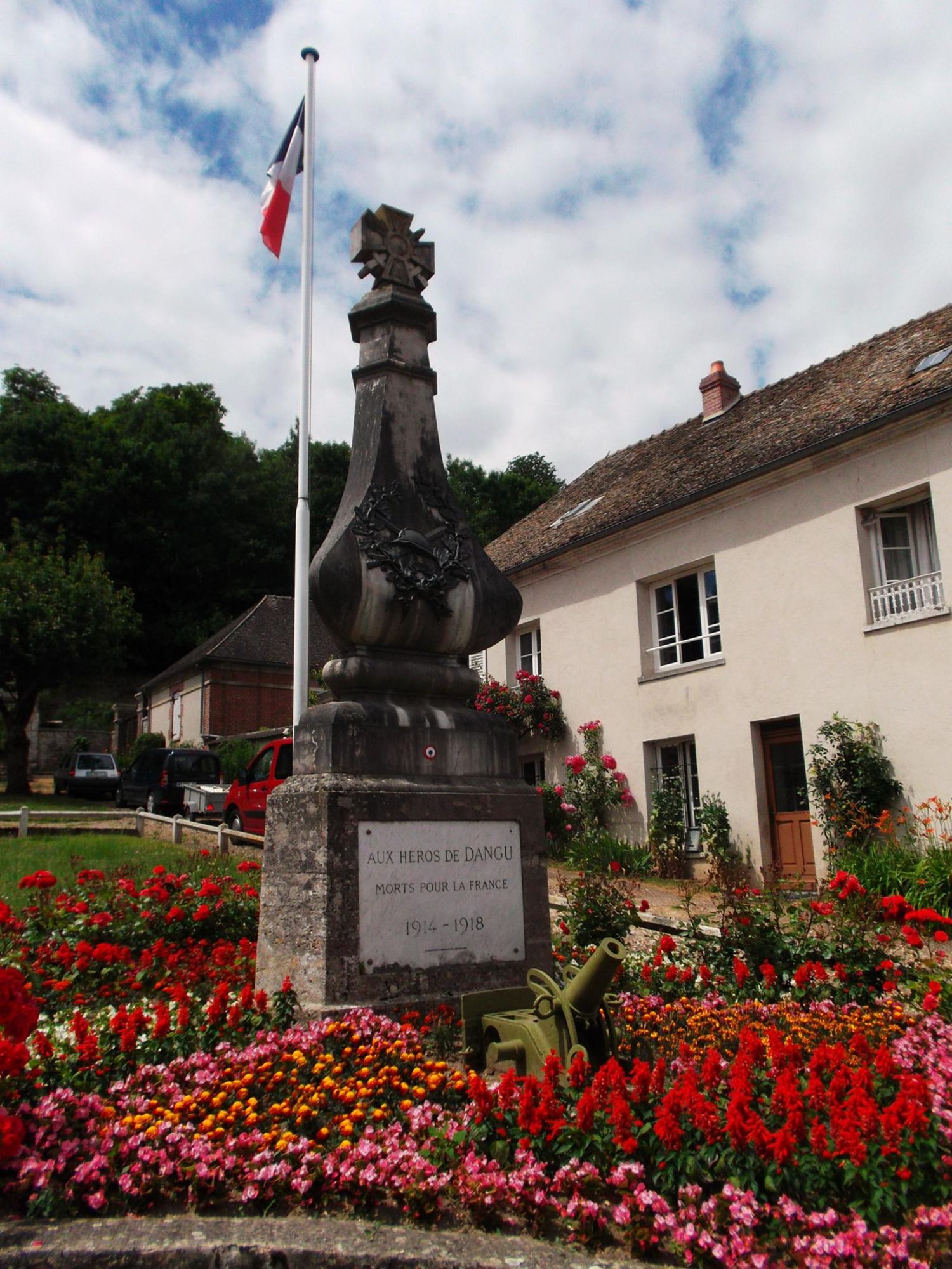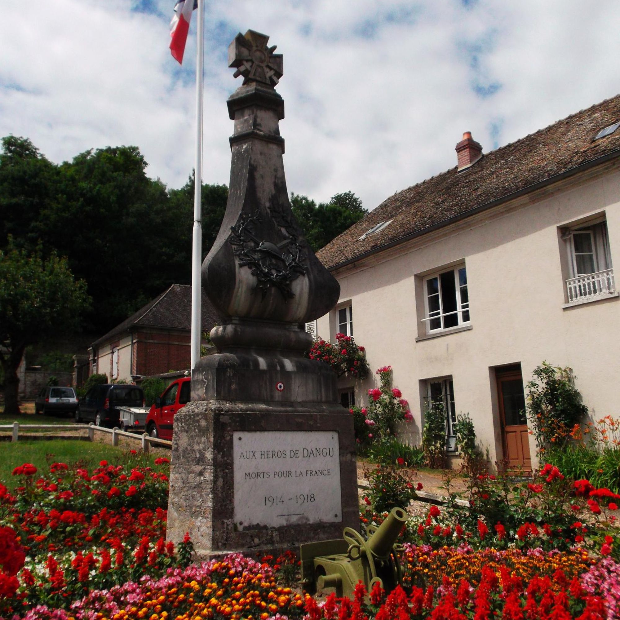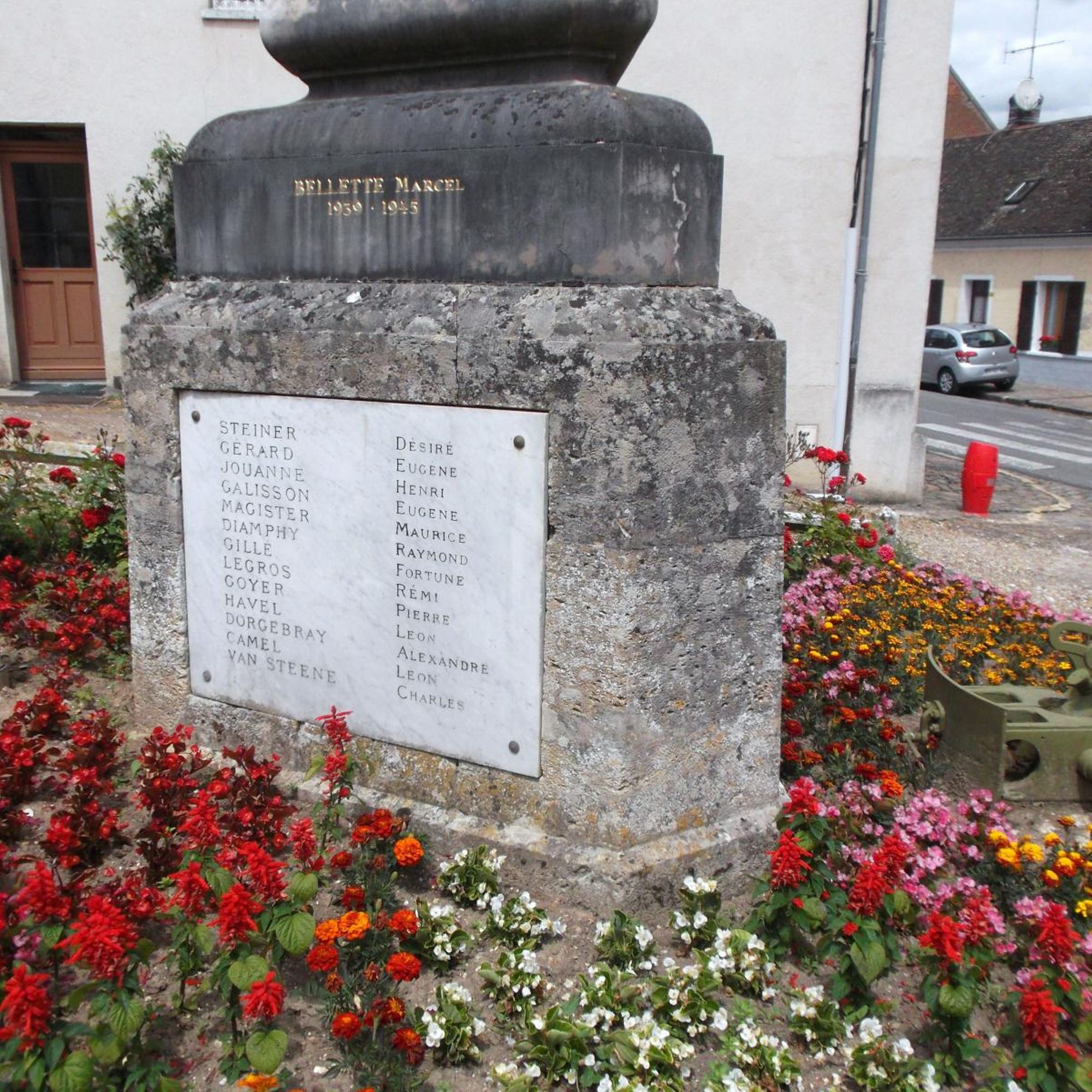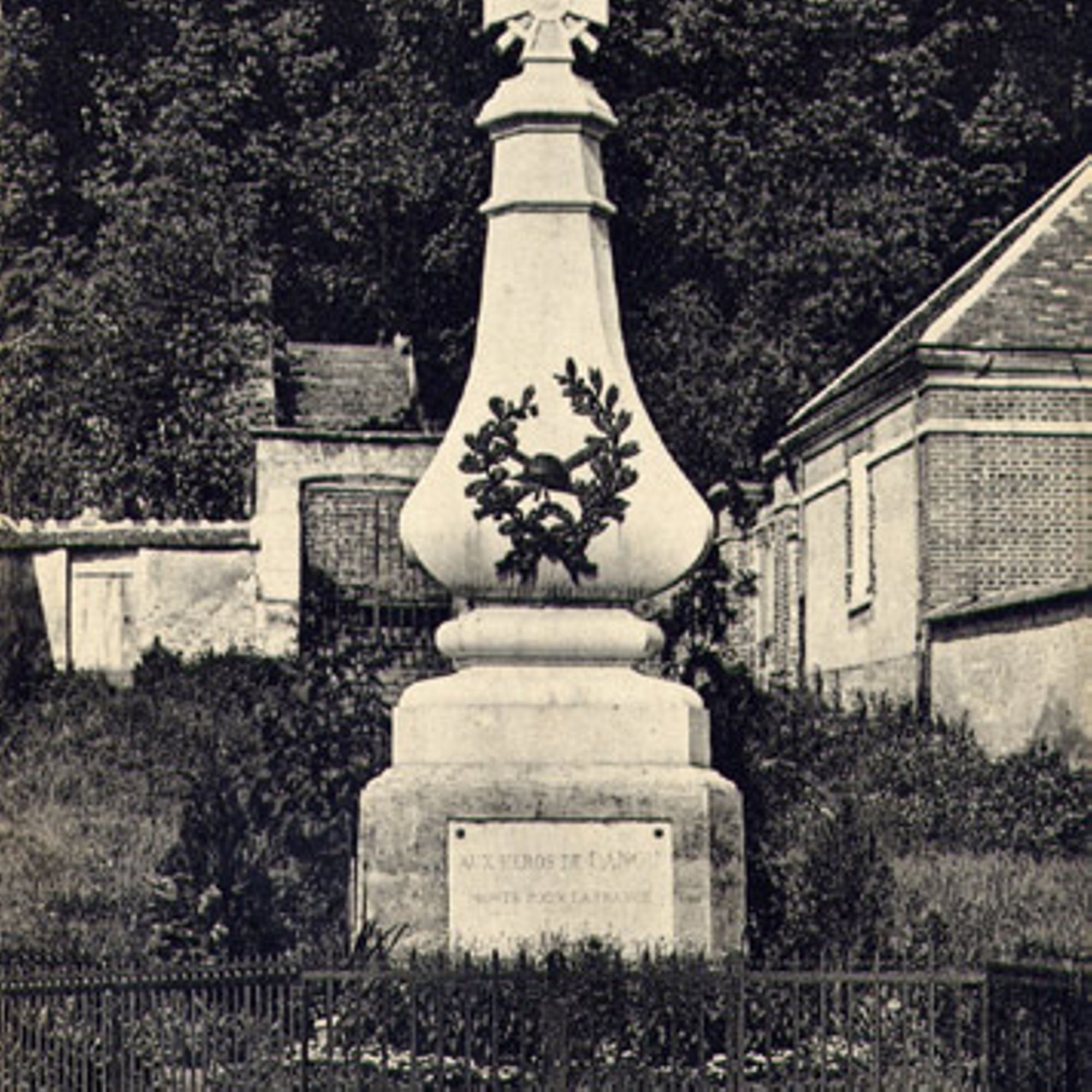 Colonne quadrangulaire renflée à la base avec croix de guerre au sommet