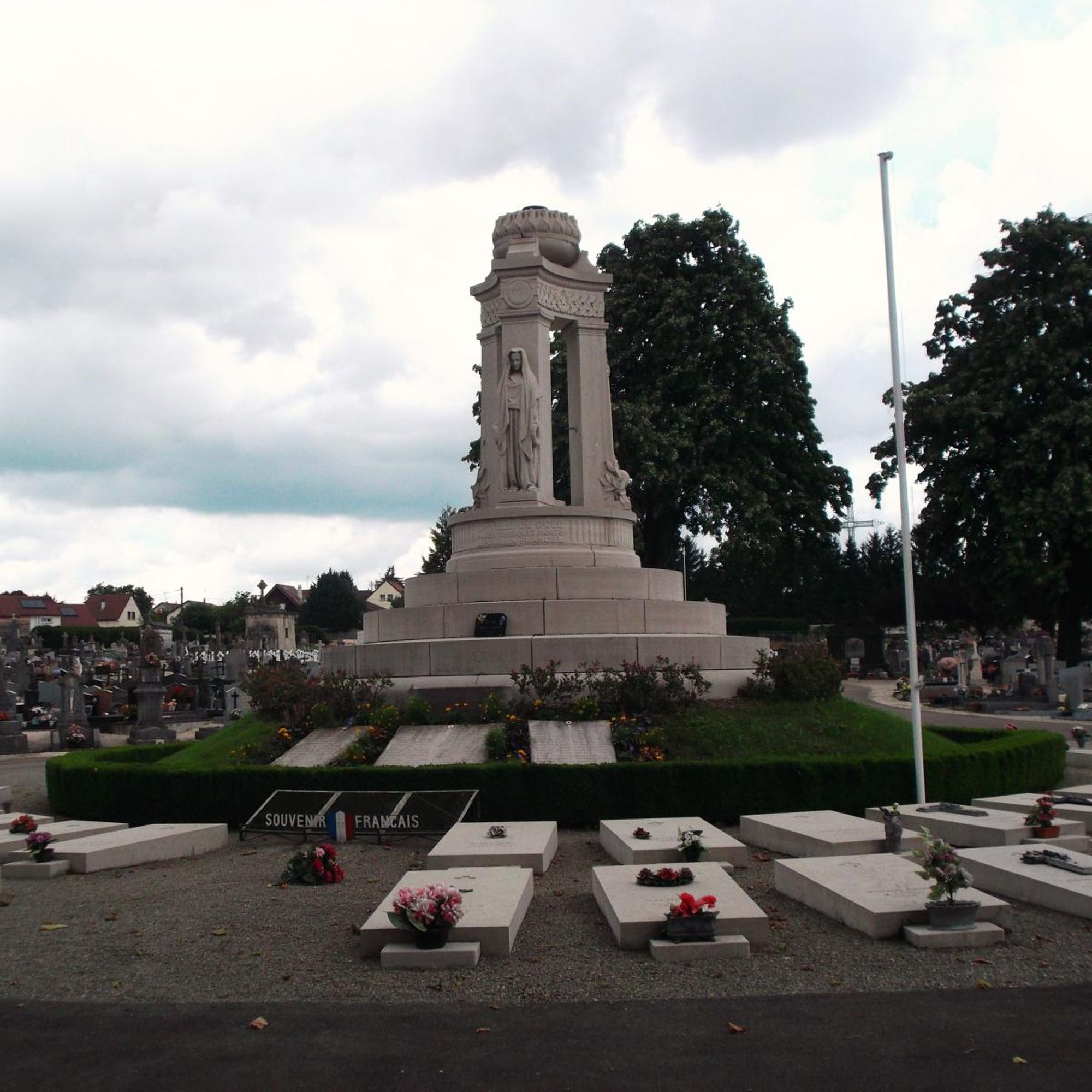 - Mausolée avec urne et flamme au sommet. A ses pieds, pierres tombales