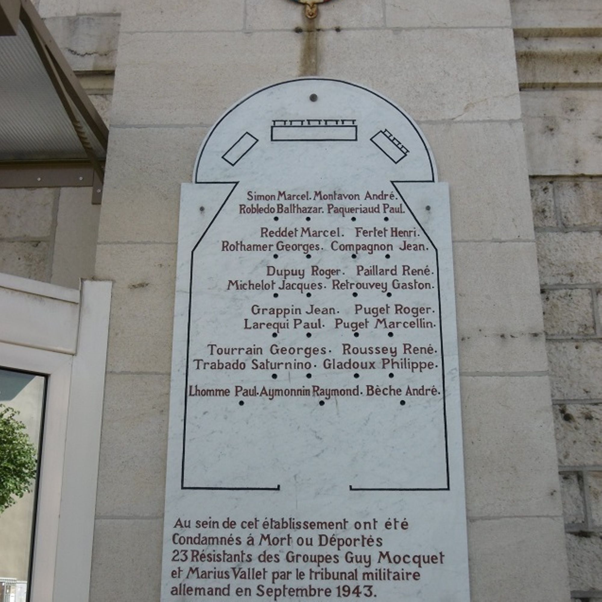 Plaque située à gauche du portail de la Maison d'arrêt, 5 rue Louis Pergaud
