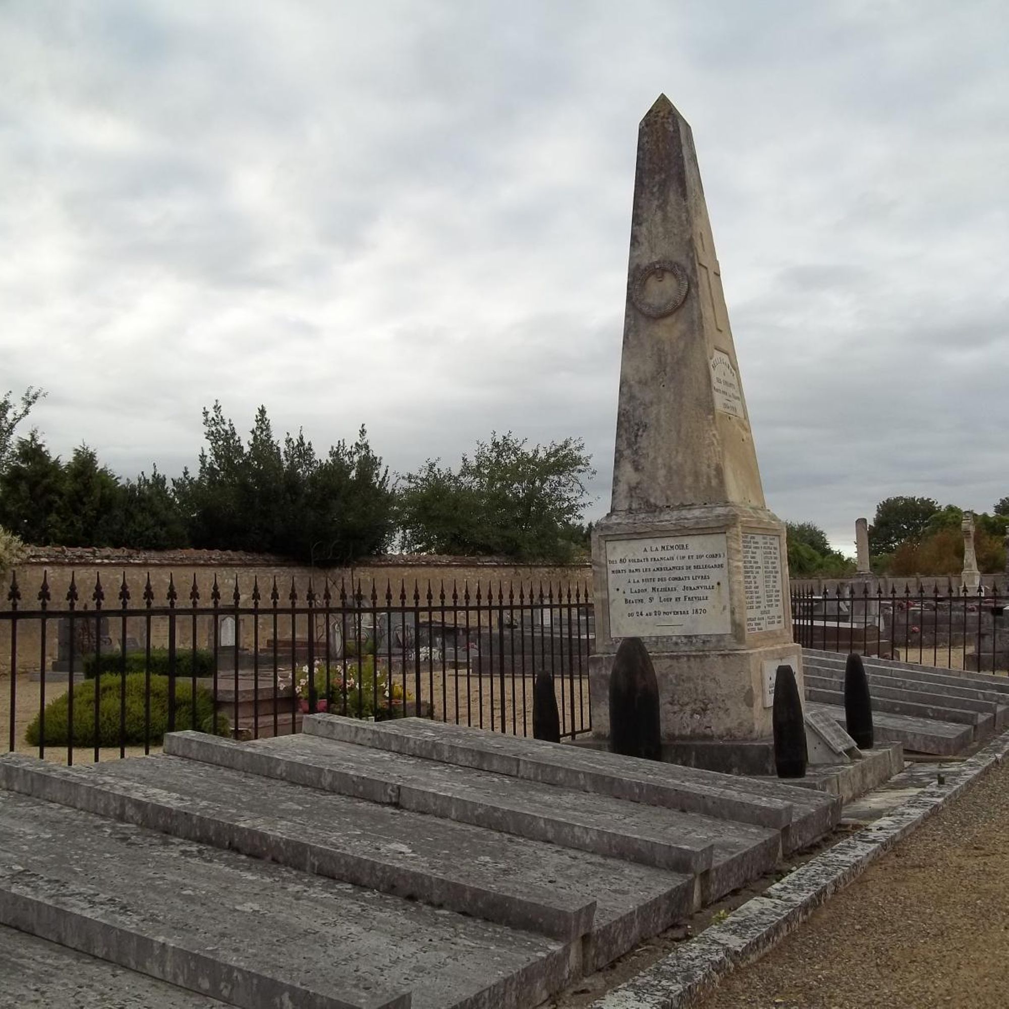 80 soldats français (18e et 20e corps) morts dans les ambulances de Bellegarde à la suite des combats livrés à Ladon, Mezières, Juranville, Beaune, St Loup et Fréville du 24 au 29 novembre 1870.