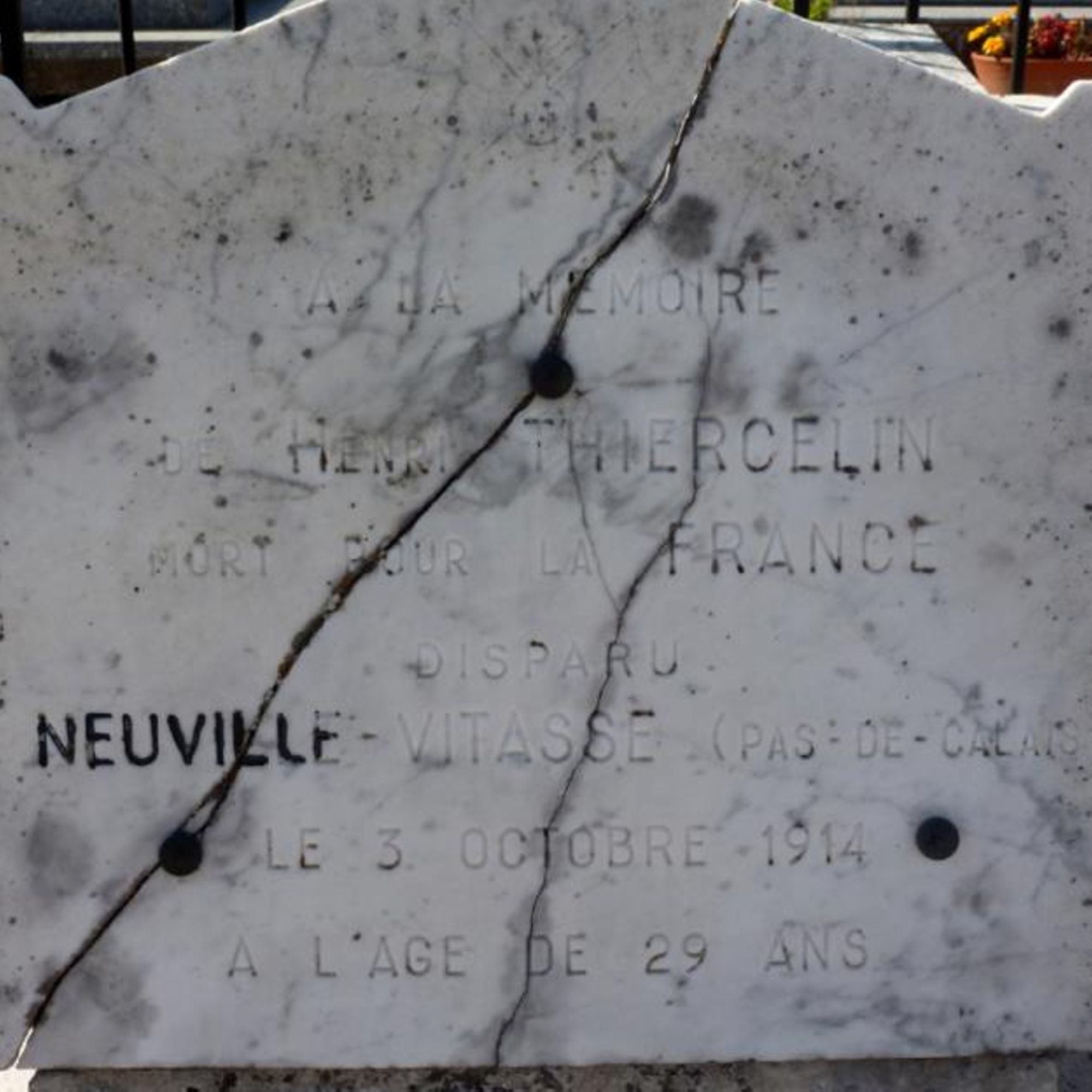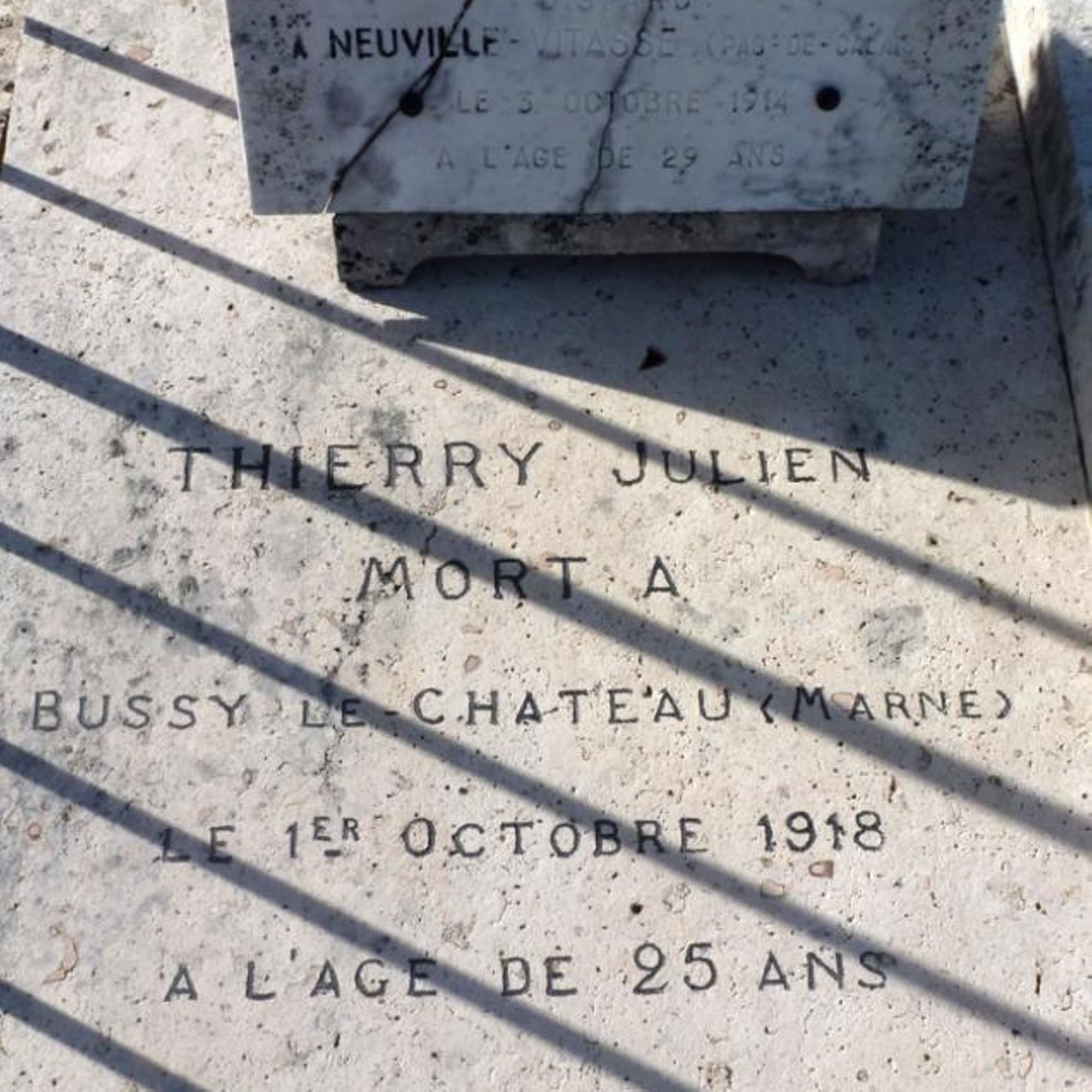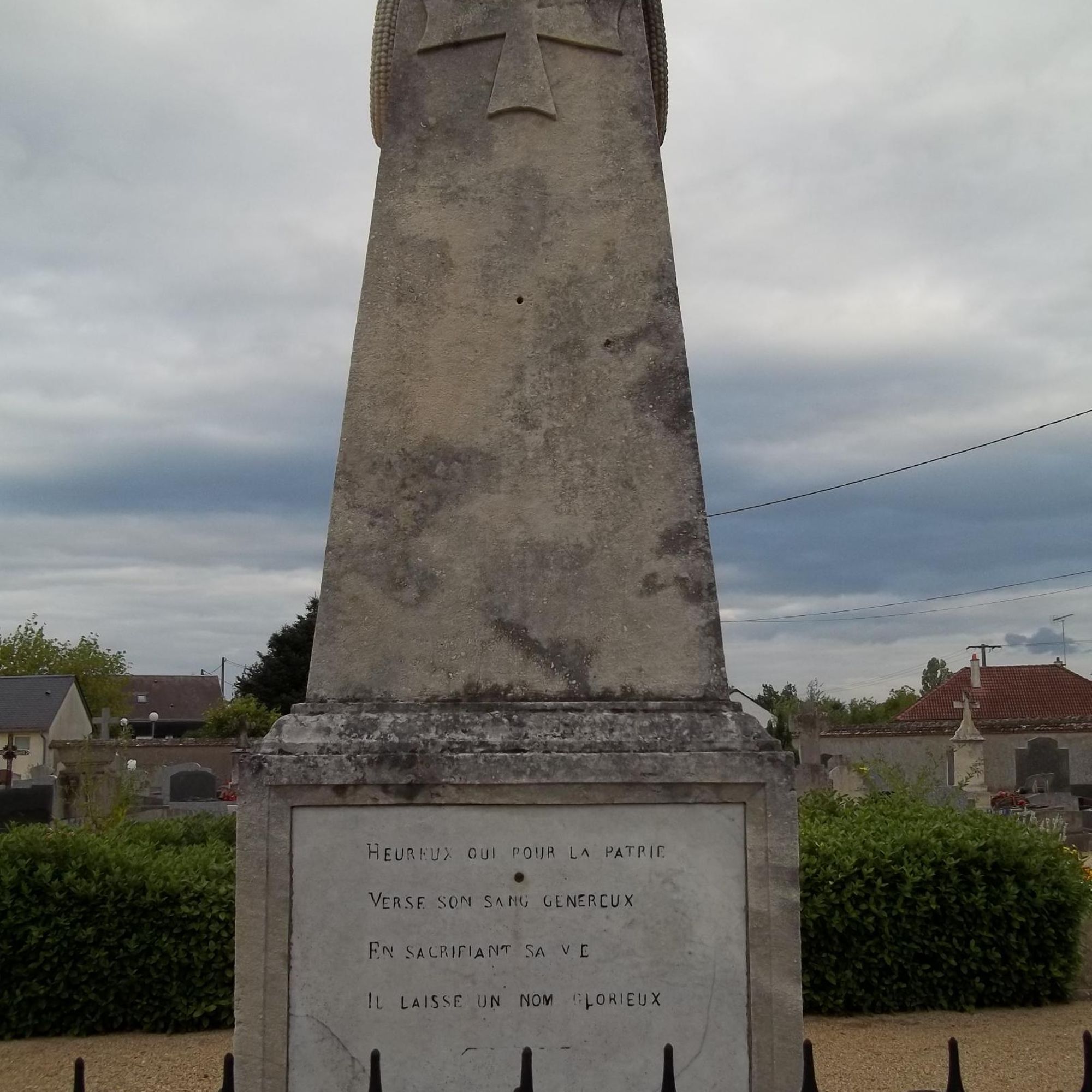 - Présence de 12 tombes de soldats morts durant la 1ère guerre mondiale réparties de part et d'autre du monument : 6 à gauche, 6 à droite. Les noms, âges et lieux de décès des 12 soldtas sont indiqués.