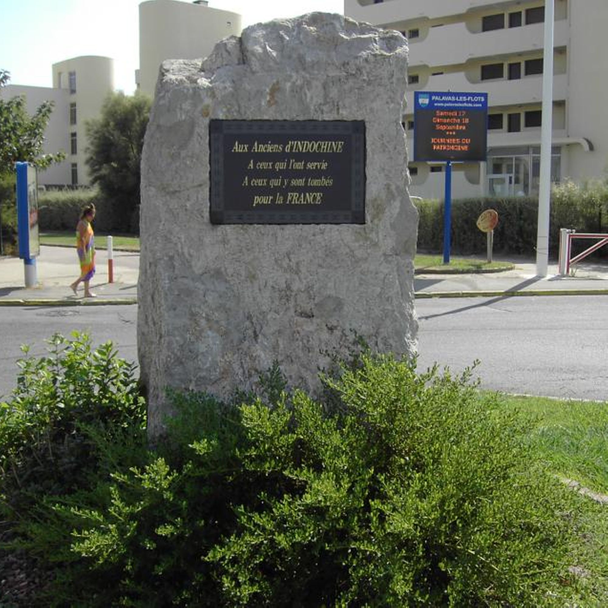 - une plaque de marbre incrustée avec les inscriptions relatant l'engagement des volontaires de Palavas- les-Flots sur le théatre indochinois.