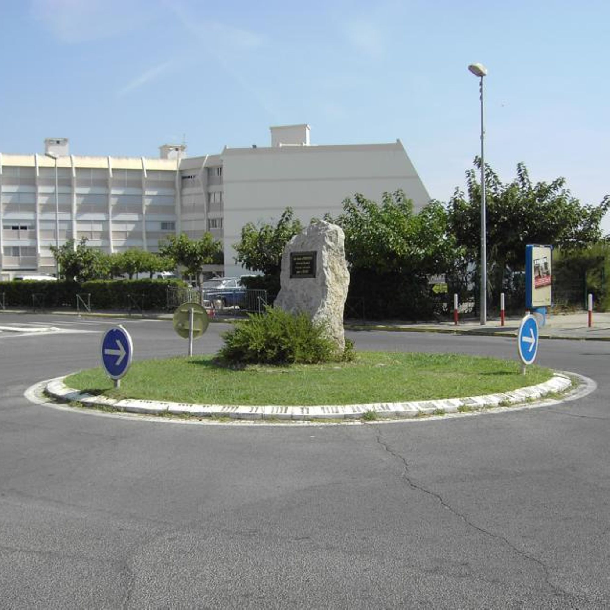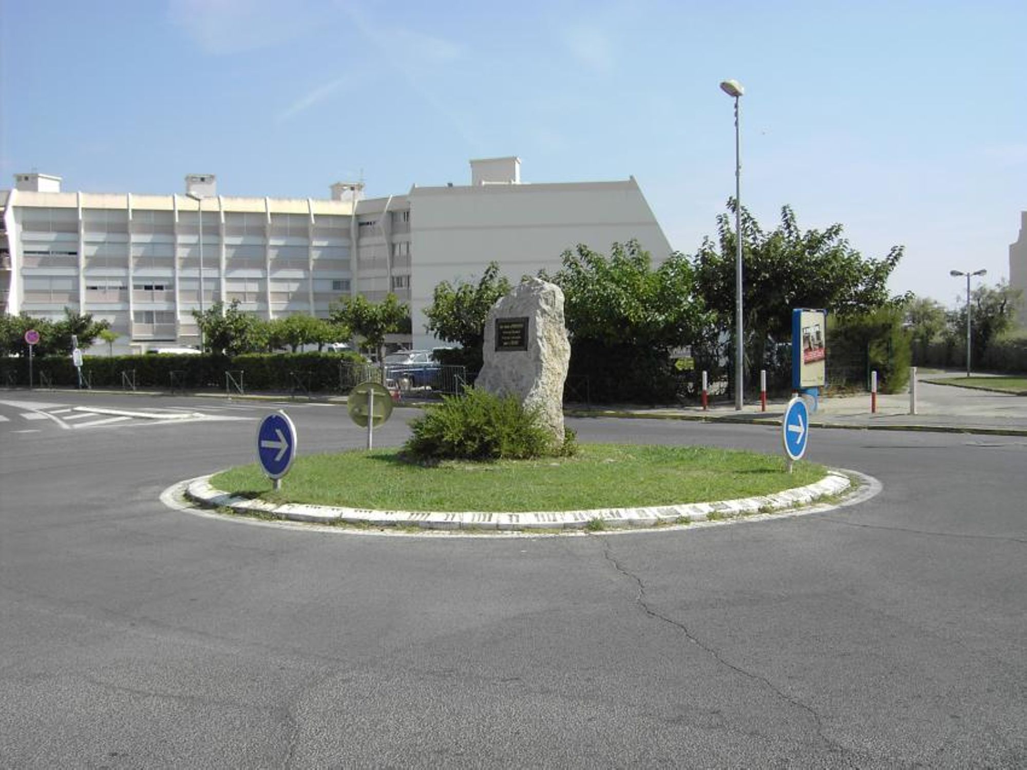 - Au centre du rond-point de l'avenue de l'Évéché de Maguelone et de la D62E2.