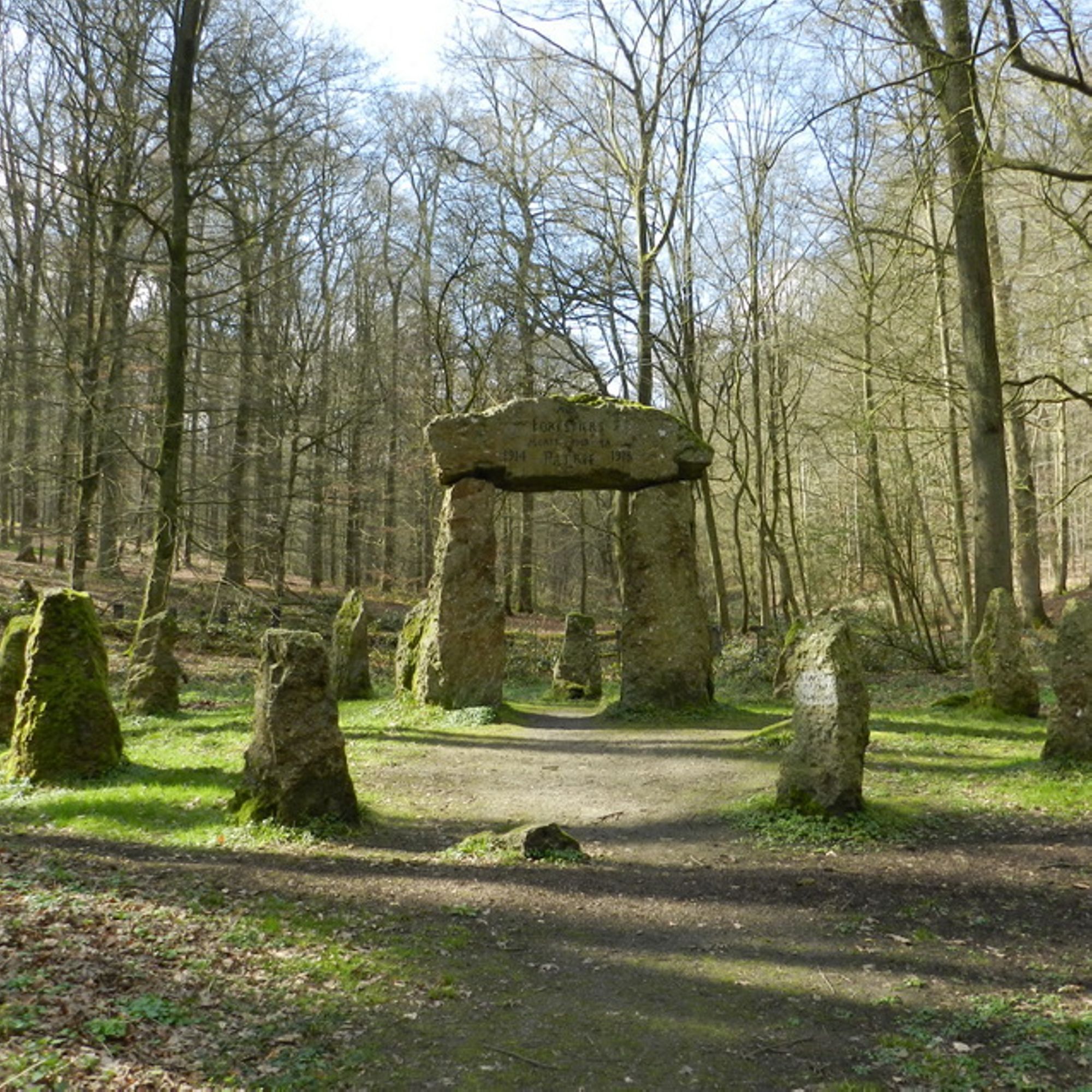 Monument aux Forestiers composé d’un grand dolmen et de menhirs installés en cercle.