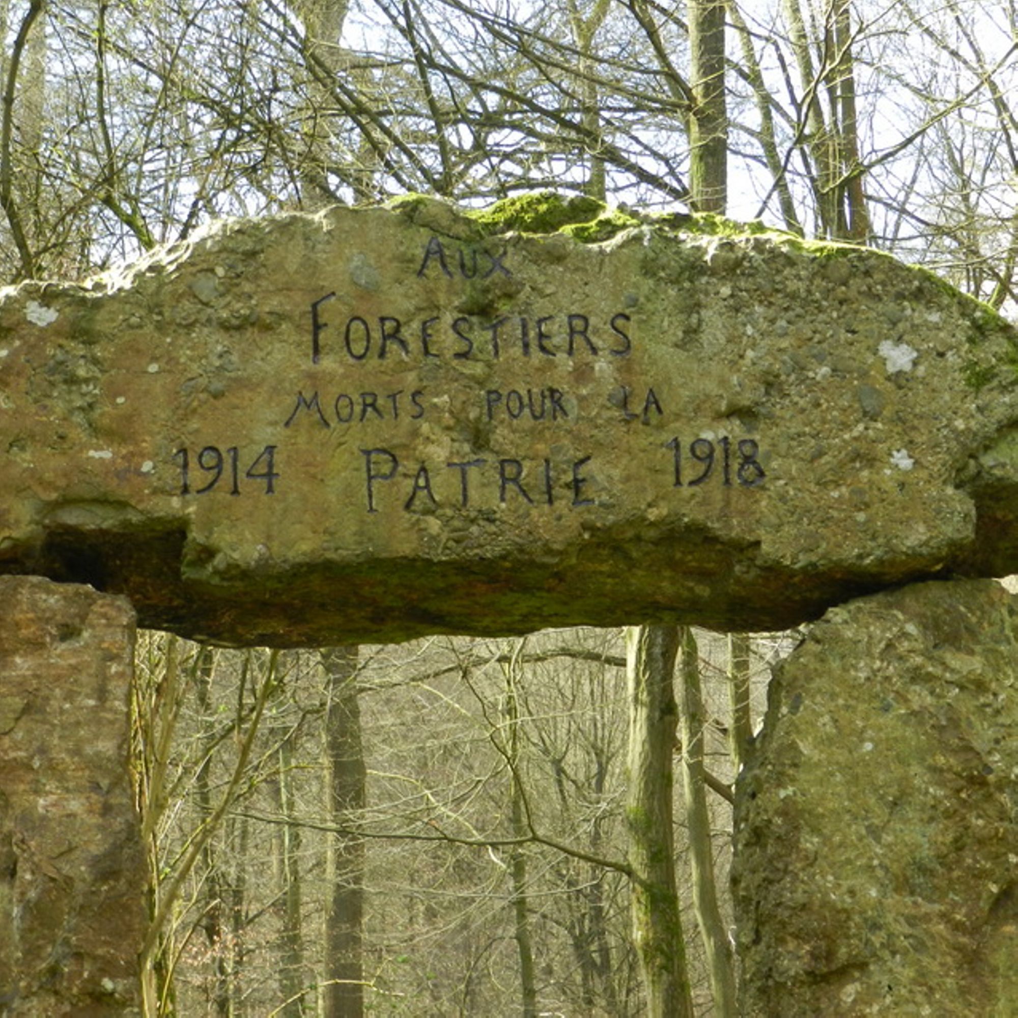 - Onze menhirs pour onze membres du personnel forestier, les uns tombés au champ d’honneur, les autres assassinés par les Allemands. Sur chacun de ces monolithes figurent le nom d’un des forestiers et sa localité d’origine.