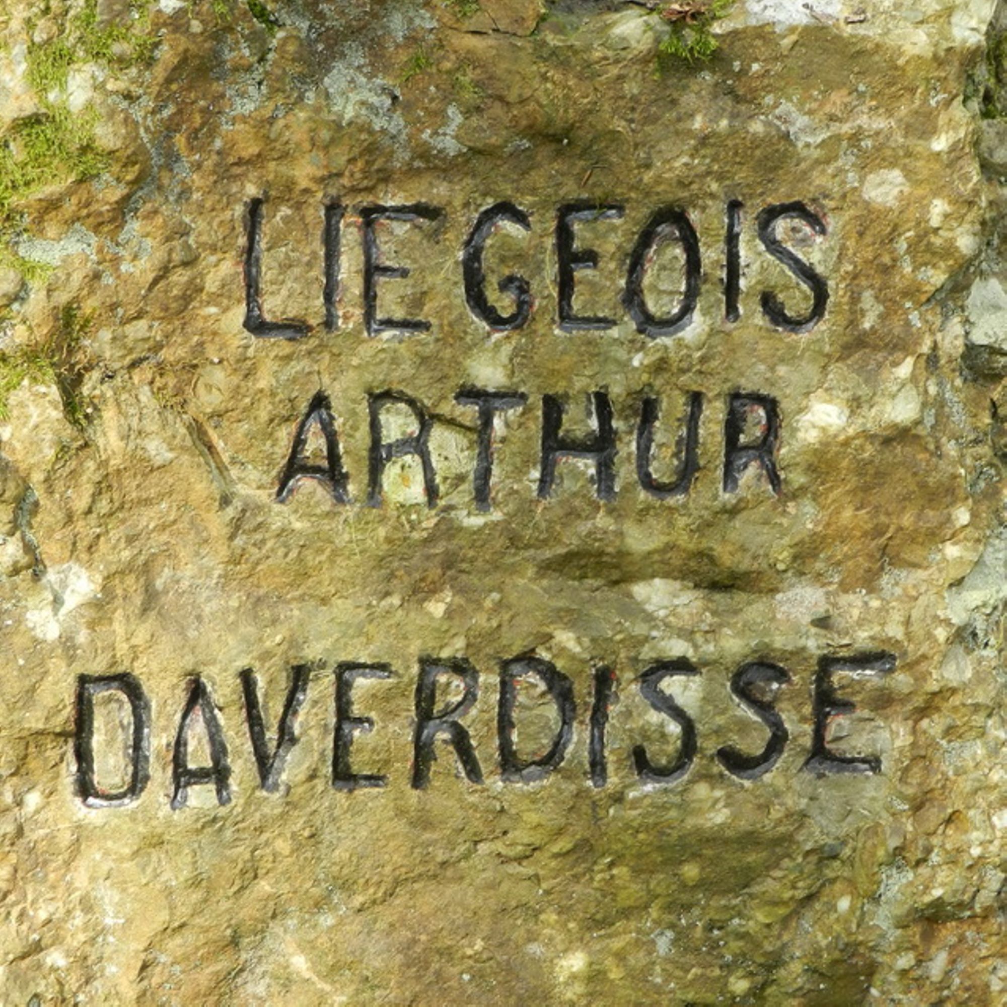 Ayant pénétré dans le cercle, on découvre sur chaque « menhir » à tour de rôle, l’ inscription du nom et du premier prénom de l’un des 11 forestiers belges tombés au champ d’honneur ou assassinés par les Allemands, ainsi que sa localité d’origine.