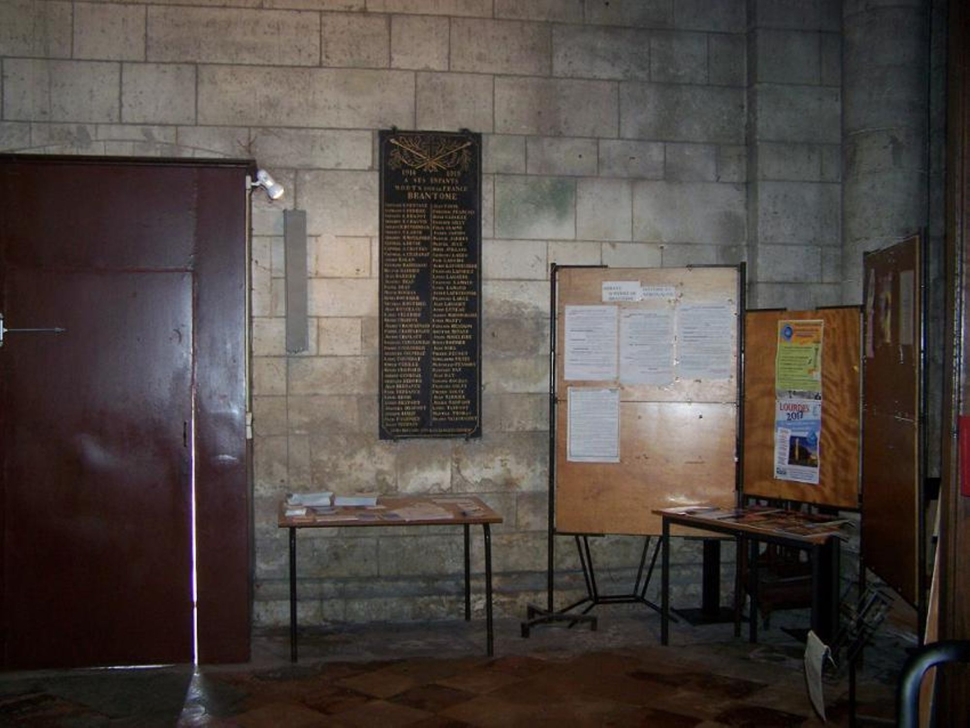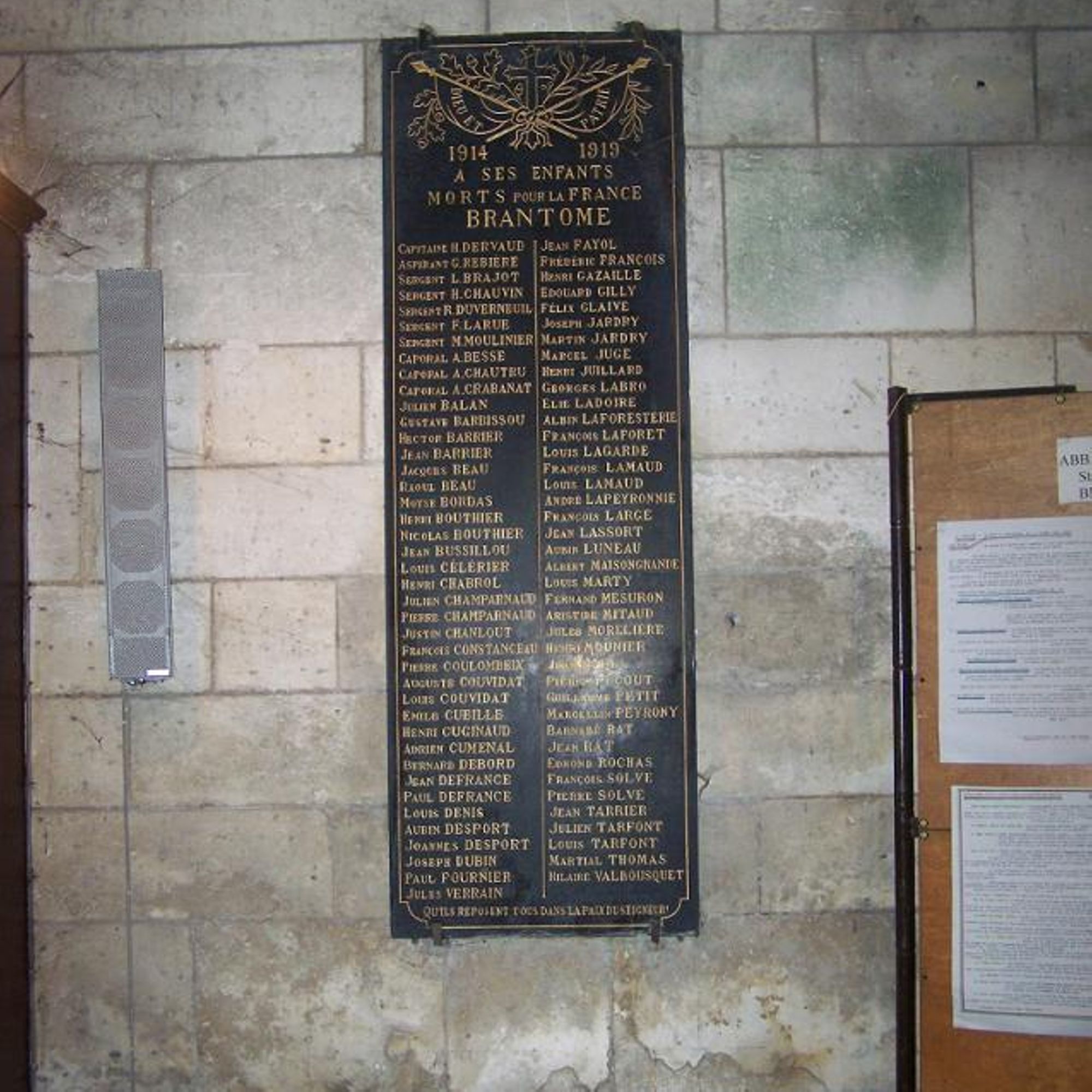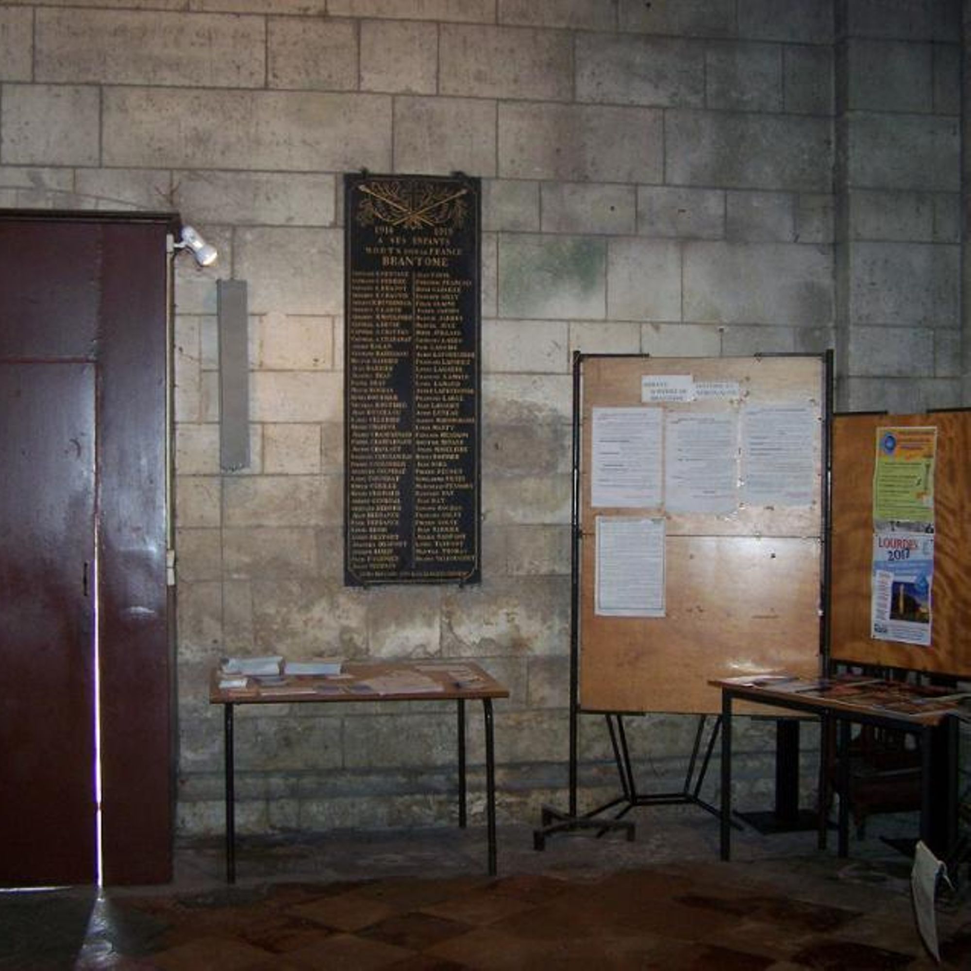à l'interieur de l'abbaye de Brantôme, sur le mur de droite, près de l'entrée.