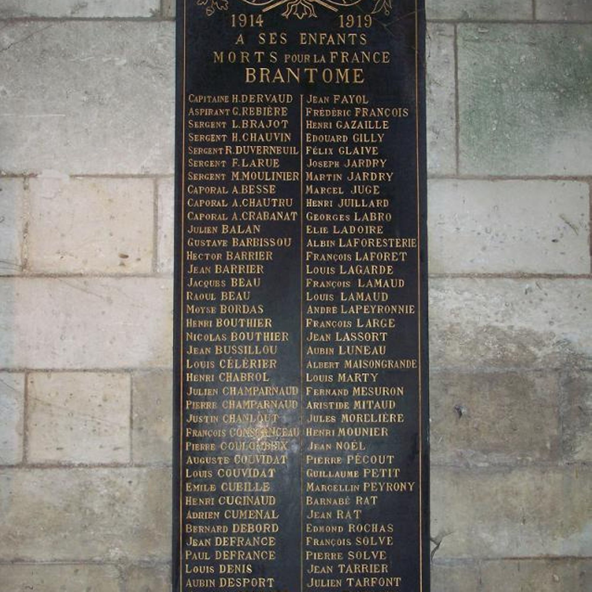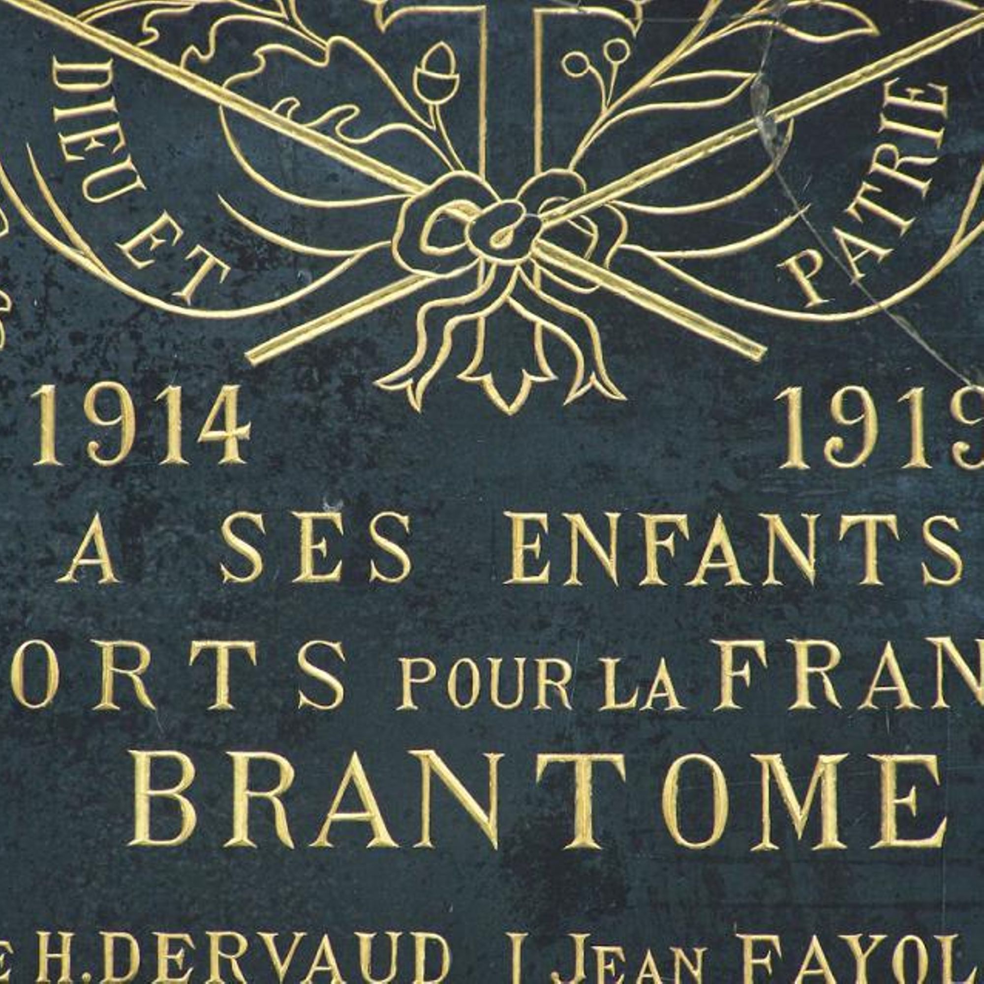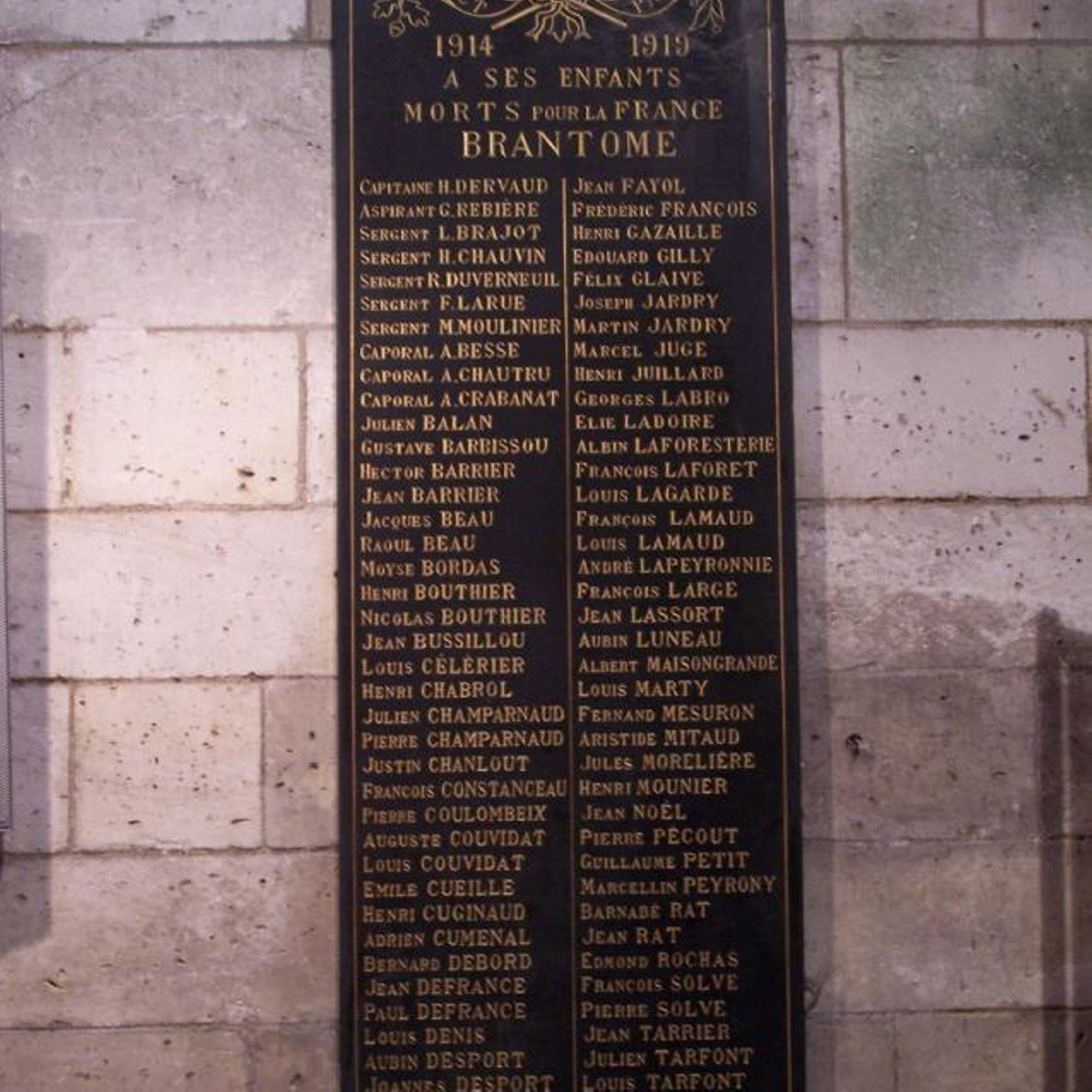 à l'interieur de l'abbaye de Brantôme, sur le mur de droite, près de l'entrée.
