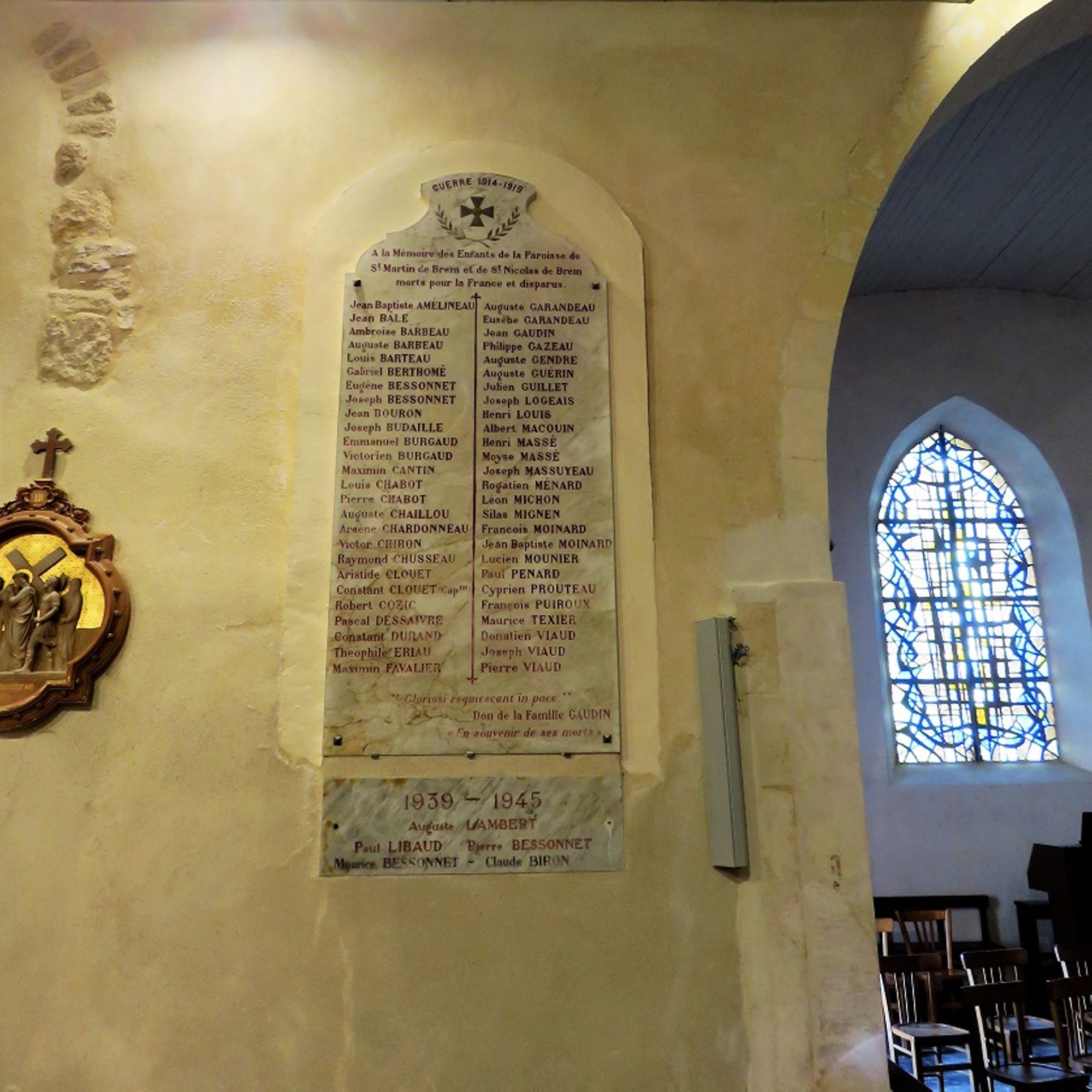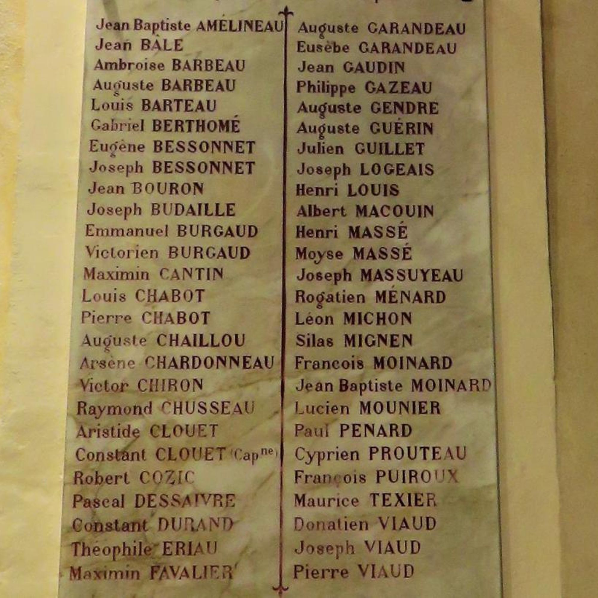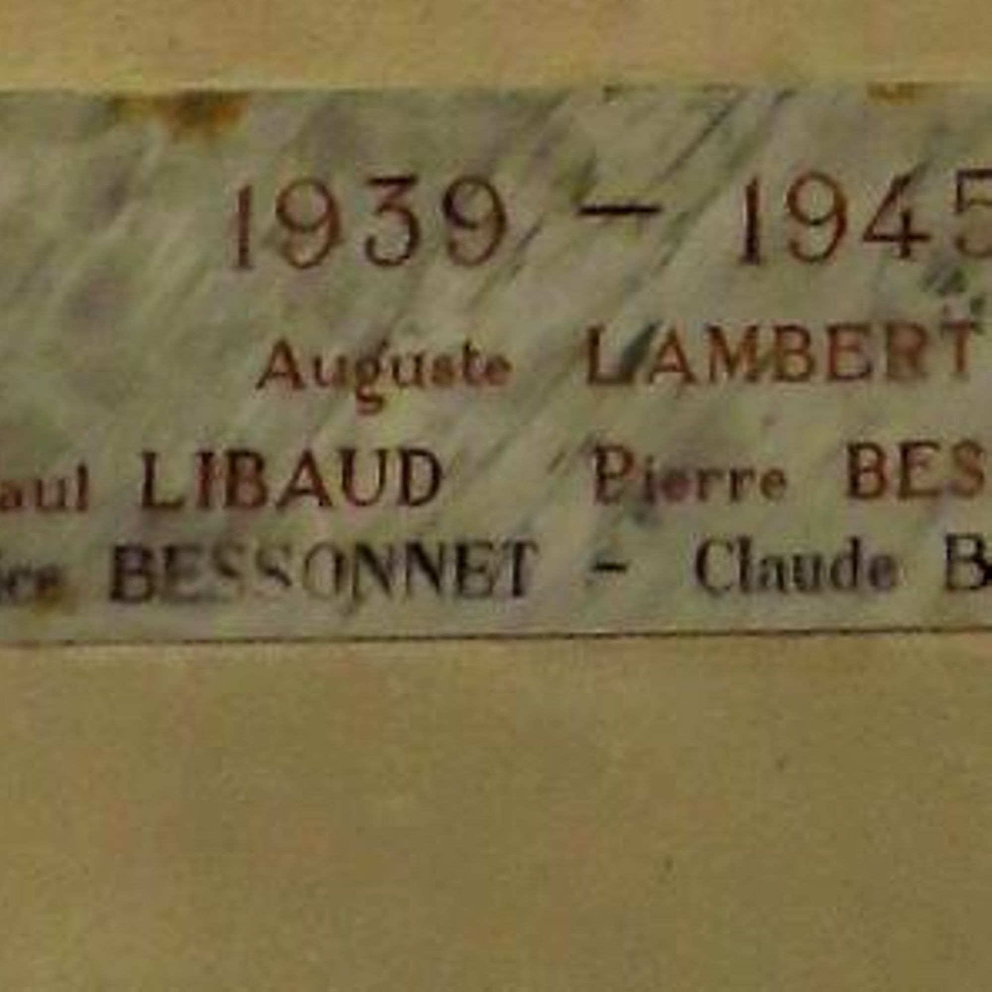 52 noms (56 sur le monument communal) de soldats morts pendant la guerre 14-18 sont gravés sur la plaque commémorative principale. Une seconde plaque fixée sous la précédente porte les 5 noms des morts de la guerre 39-45.