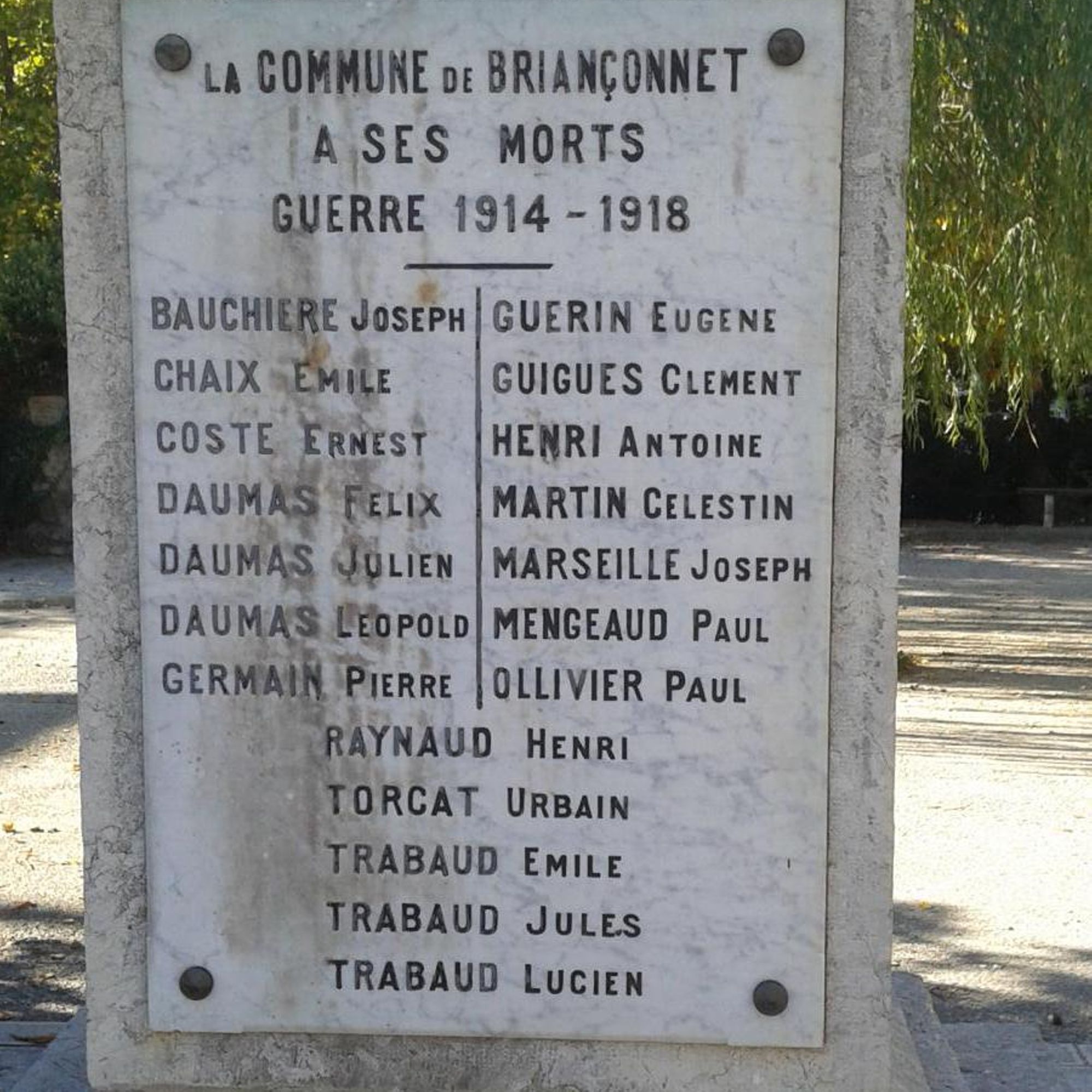 pierre de taille ppour le socle, plaque de marbre pour le nom des morts