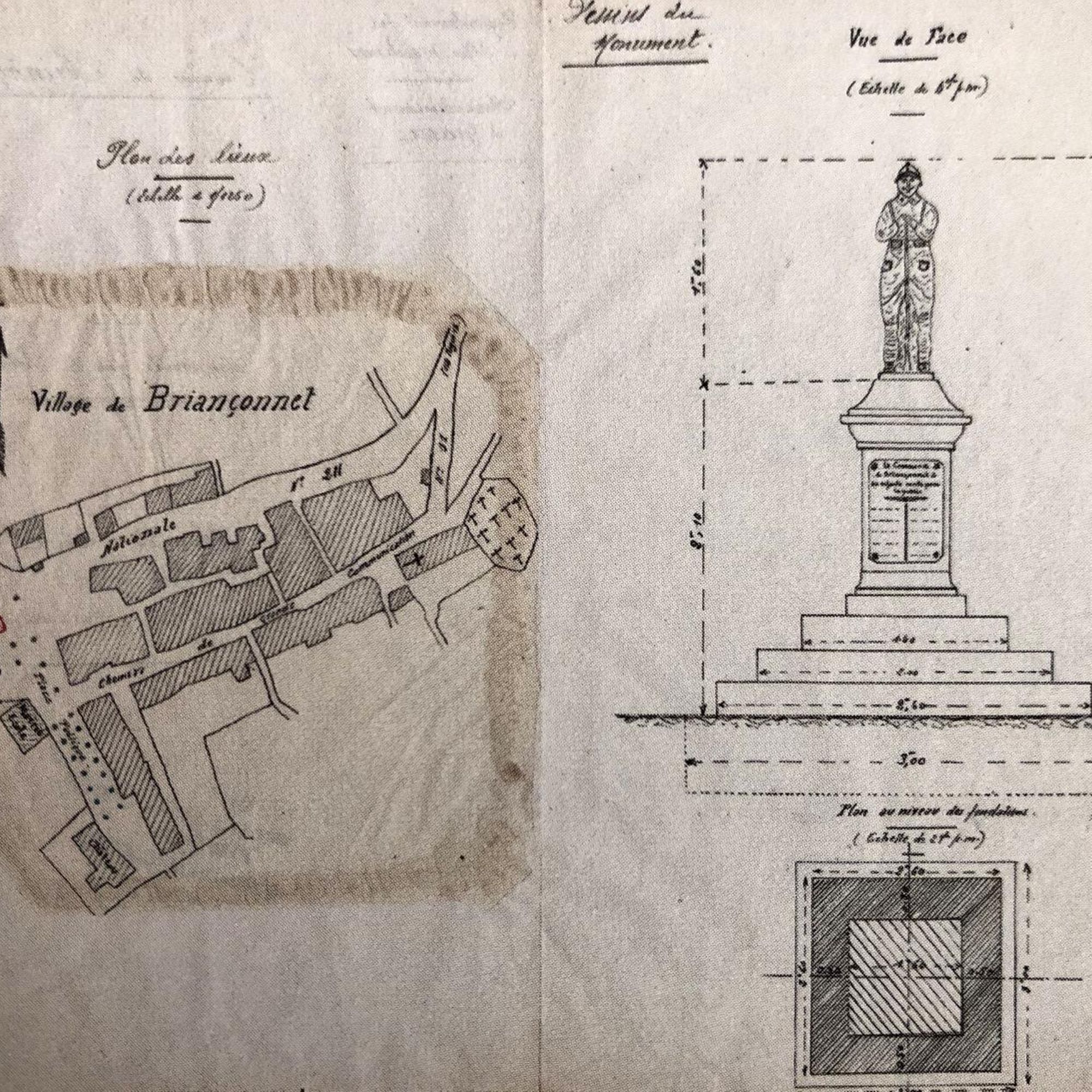 "Le projet présenté n'offre rien de choquant dans son aspect d'ensemble. Il est donc possible de donner un avis favorable. Ce projet gagnerait à comporter quatre marches au lieu de trois : on affirmerait ainsi la différence de proportions entre la statue et l'architecture formant le socle. Au point de vue esthétique, j'estime une fois de plus qu'il est infiniment regrettable d'introduire dans ces monuments des statues sans la moindre valeur artistique. C'est une atteinte à la beauté de notre pays. Il serait si simple, lorsqu'une commune n'a qu'une faible somme à sa disposition de se borner à un arrangement architectural de bon goût, sans une prétention qui ne sert que des intérêts commerciaux et contredit à nos traditions nationales de goût et de beauté"