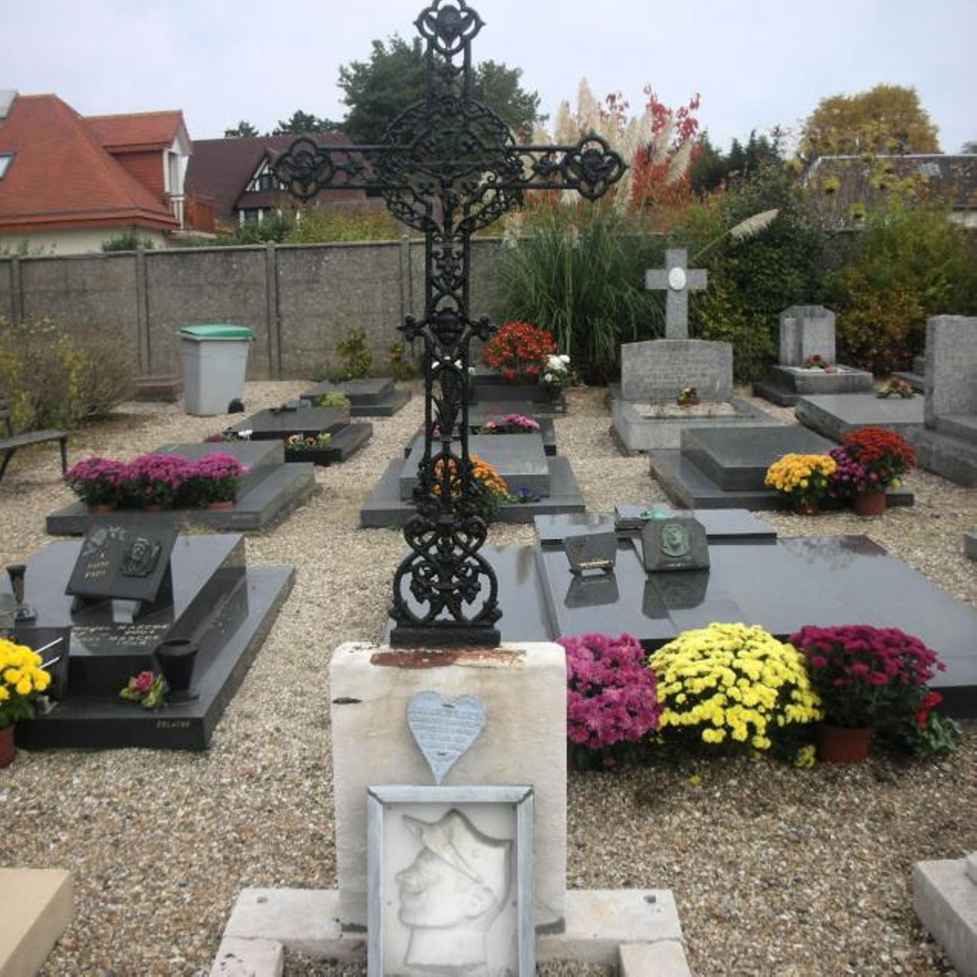 À droite de l’enclos, la tombe d'un certain Eugène Savreux attire l'attention. Elle est un peu particulière en raison de son bas-relief montrant le profil d’un jeune soldat à la fière moustache et portant képi. Cette tombe se signale par son médaillon en forme de coeur gravé de la mention "pro patria".