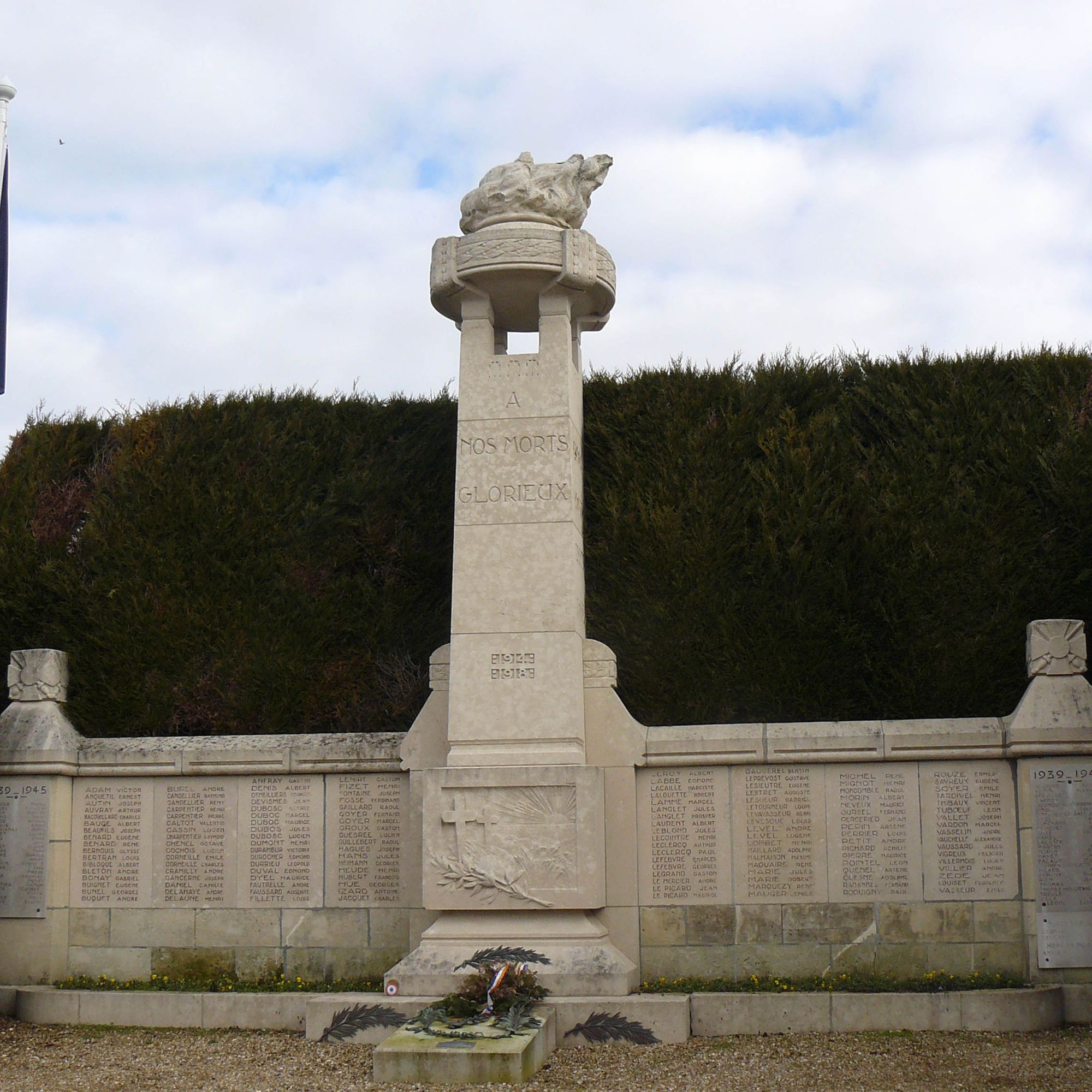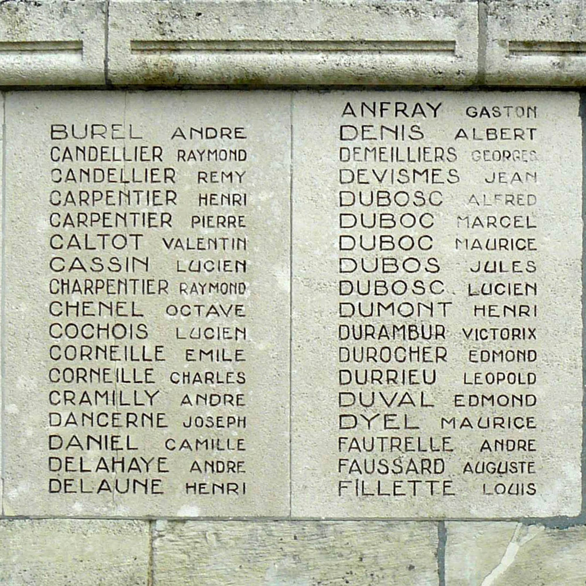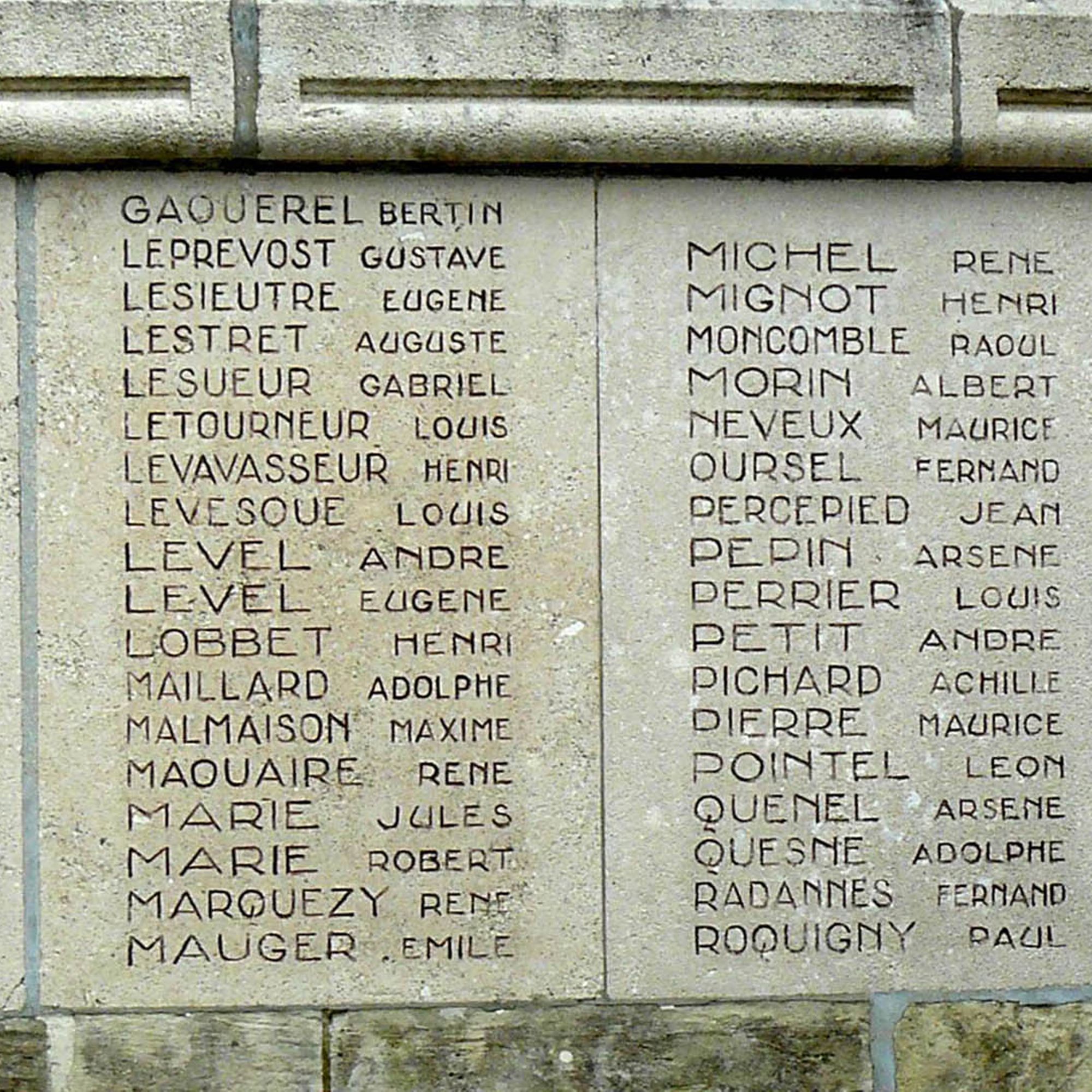 Les panneaux latéraux signalent les noms des poilus de Bois-Guillaume