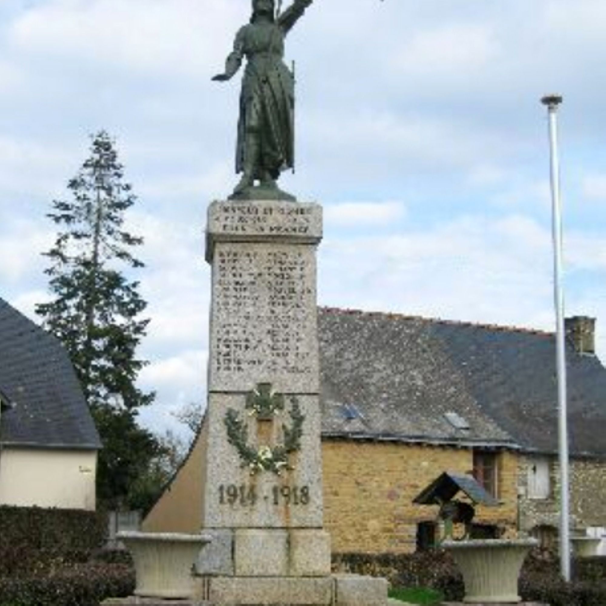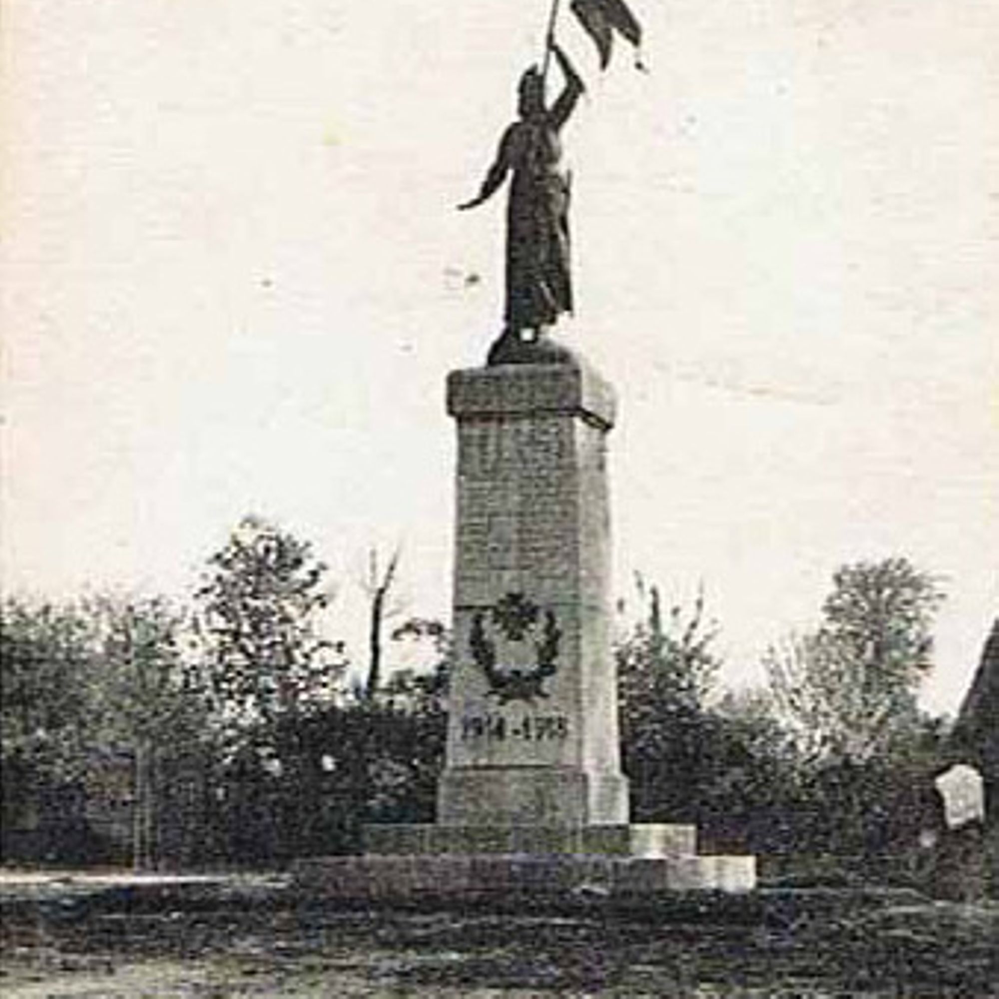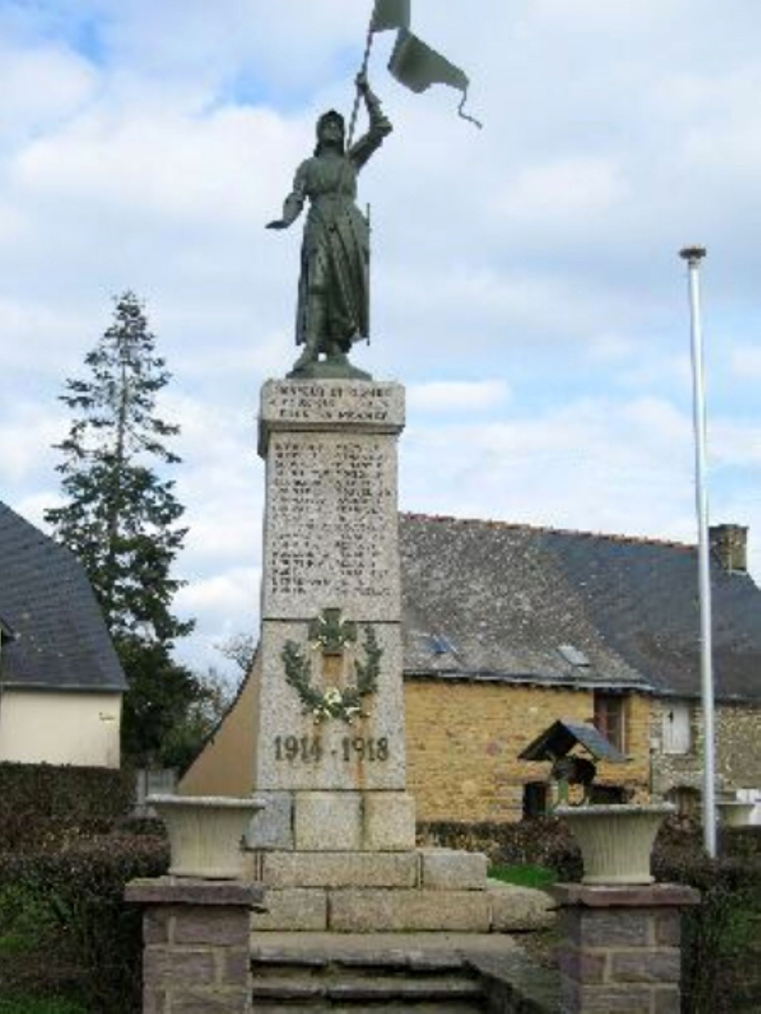 Monument aux morts édifié après la première guerre mondiale, constitué d'une colonne massive de forme carrée posée sur un emmarchement (une marche) et surmontée d'une statue de Jeanne d'Arc (fondue selon un modèle de série emprunté aux statues de Frémiet). La sainte de la patrie, canonisée en 1920 par l'Eglise, est debout et tient à la main son étendard aujourd'hui rouillé mais jadis articulé, semble t-il.
