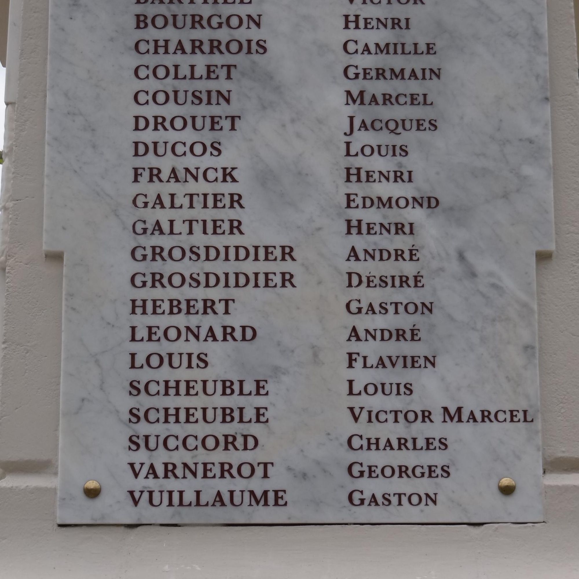 Marbre pour les plaques des noms.