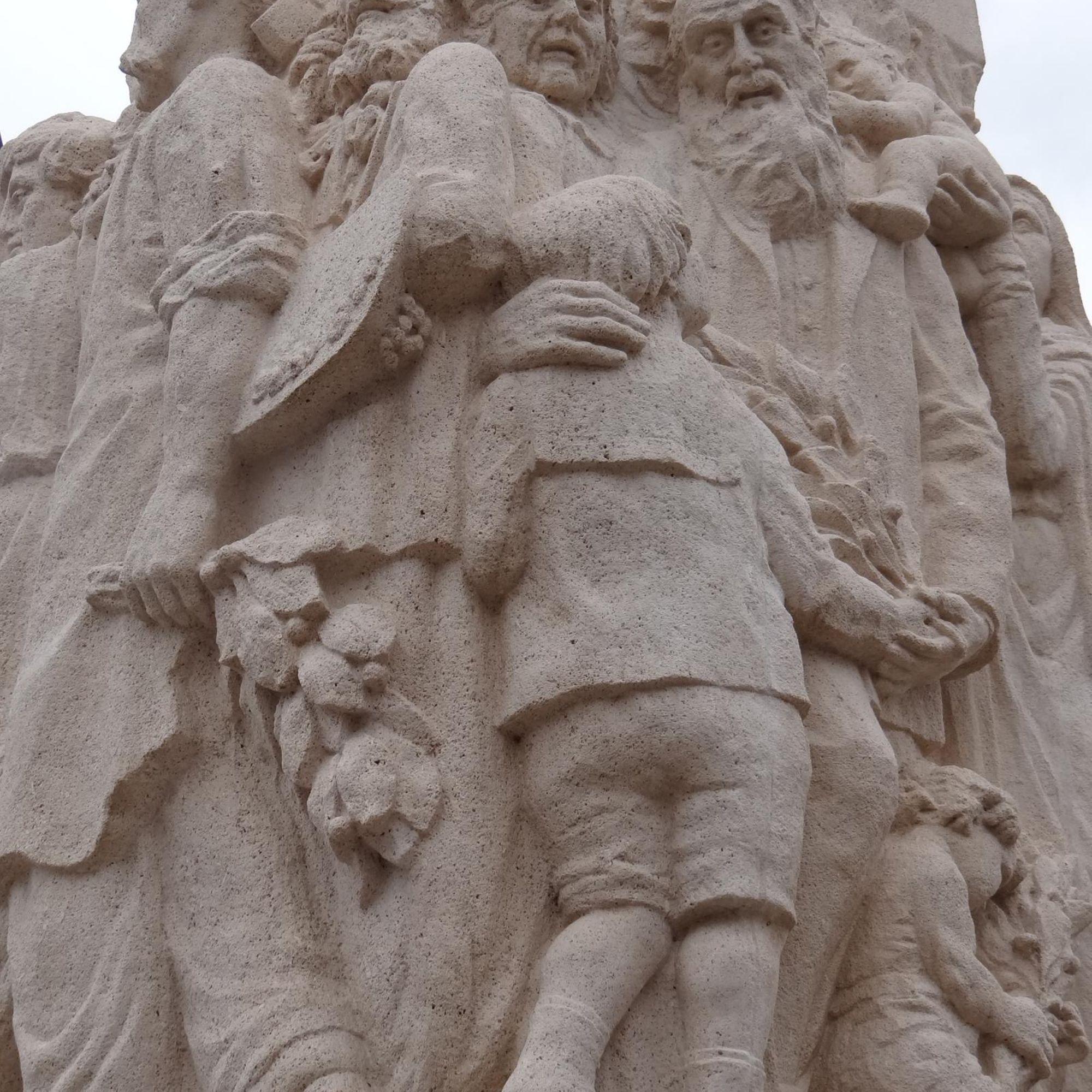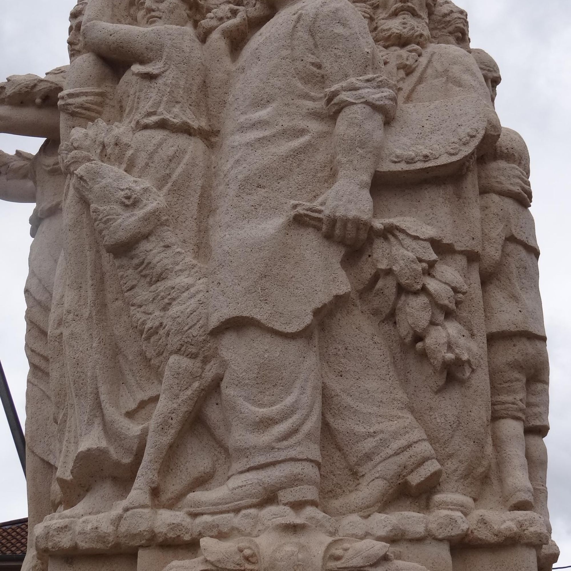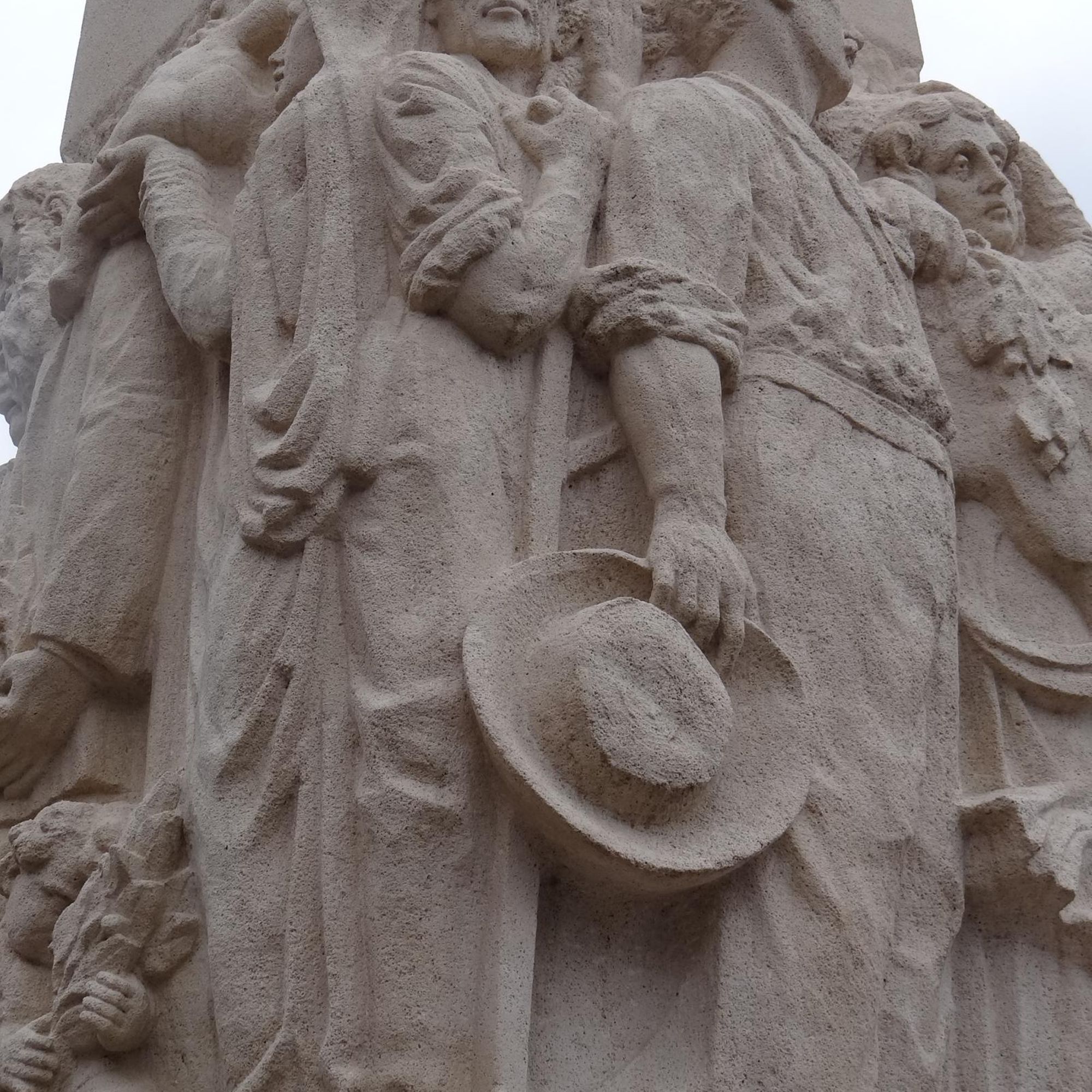 Ce rebord de socle est, sur toute sa circonférence, sculpté de personnages entre hauts et bas-reliefs.