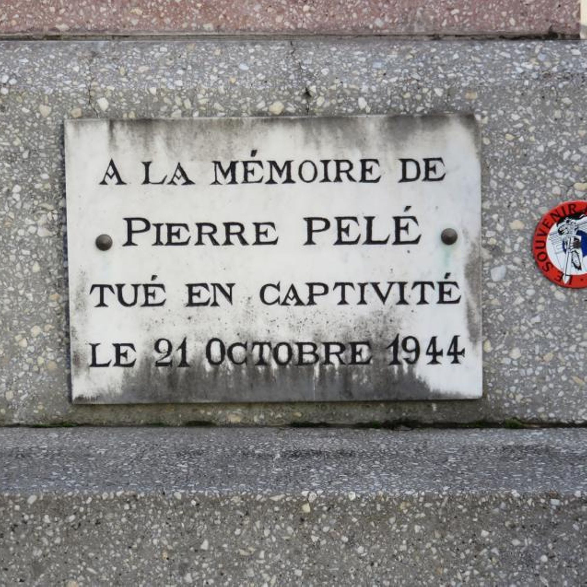 - Plaque individuelle "A la mémoire de Pierre PELÉ tué en captivité le 21 octobre 1944". (don du Souvenir Français)