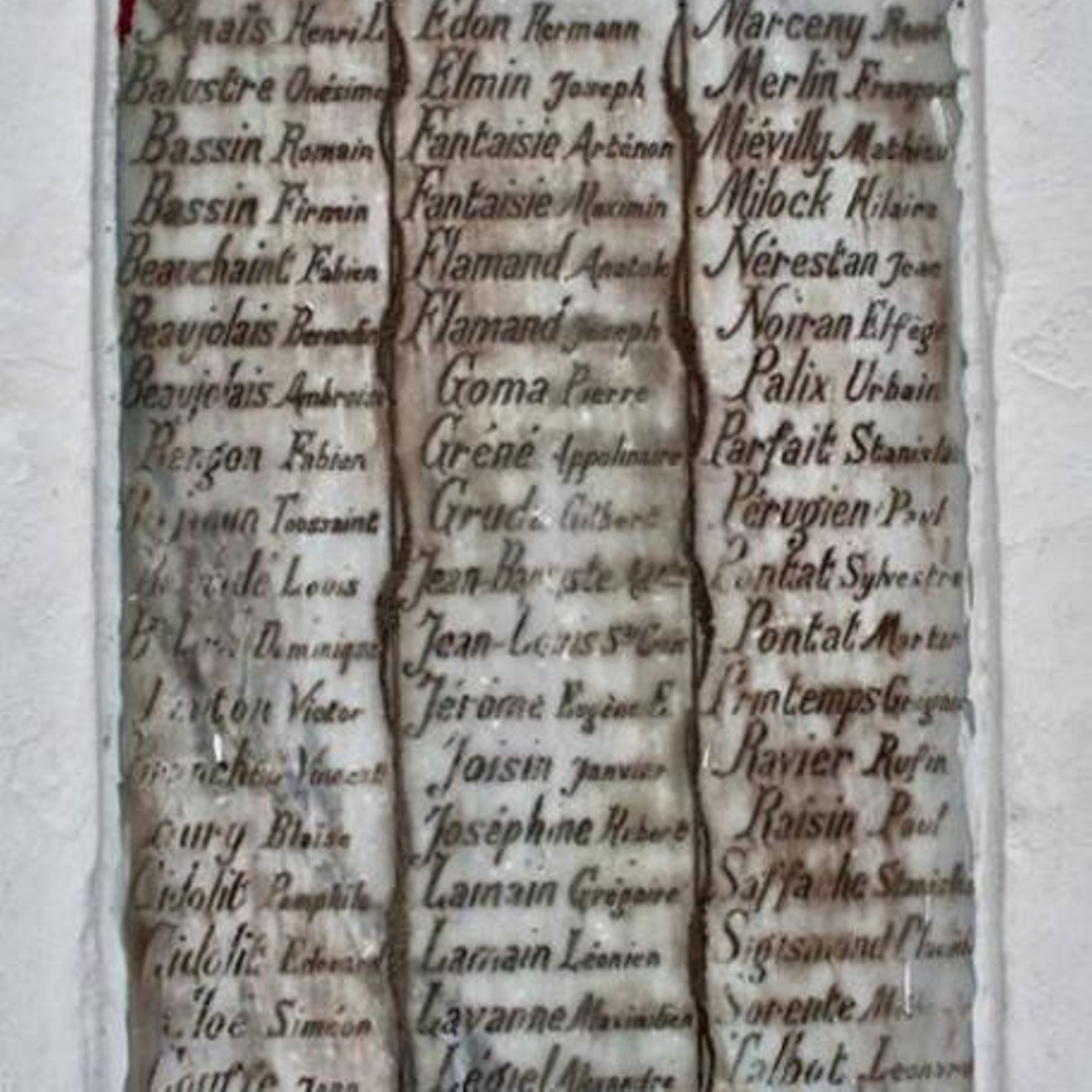 Monument aux Morts, érigée en 1922, avec plaques de marbre gravées par Boisson,