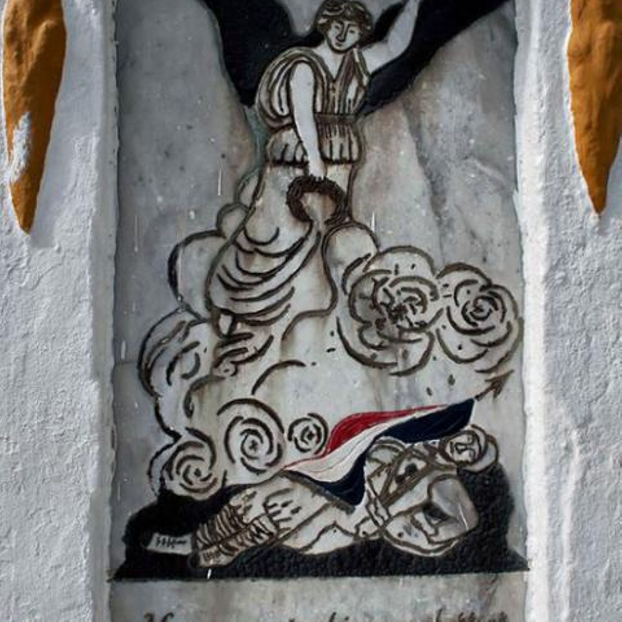 Obélisque sur socle avec bas-relief représentant un ange au-dessus d'un soldat couché