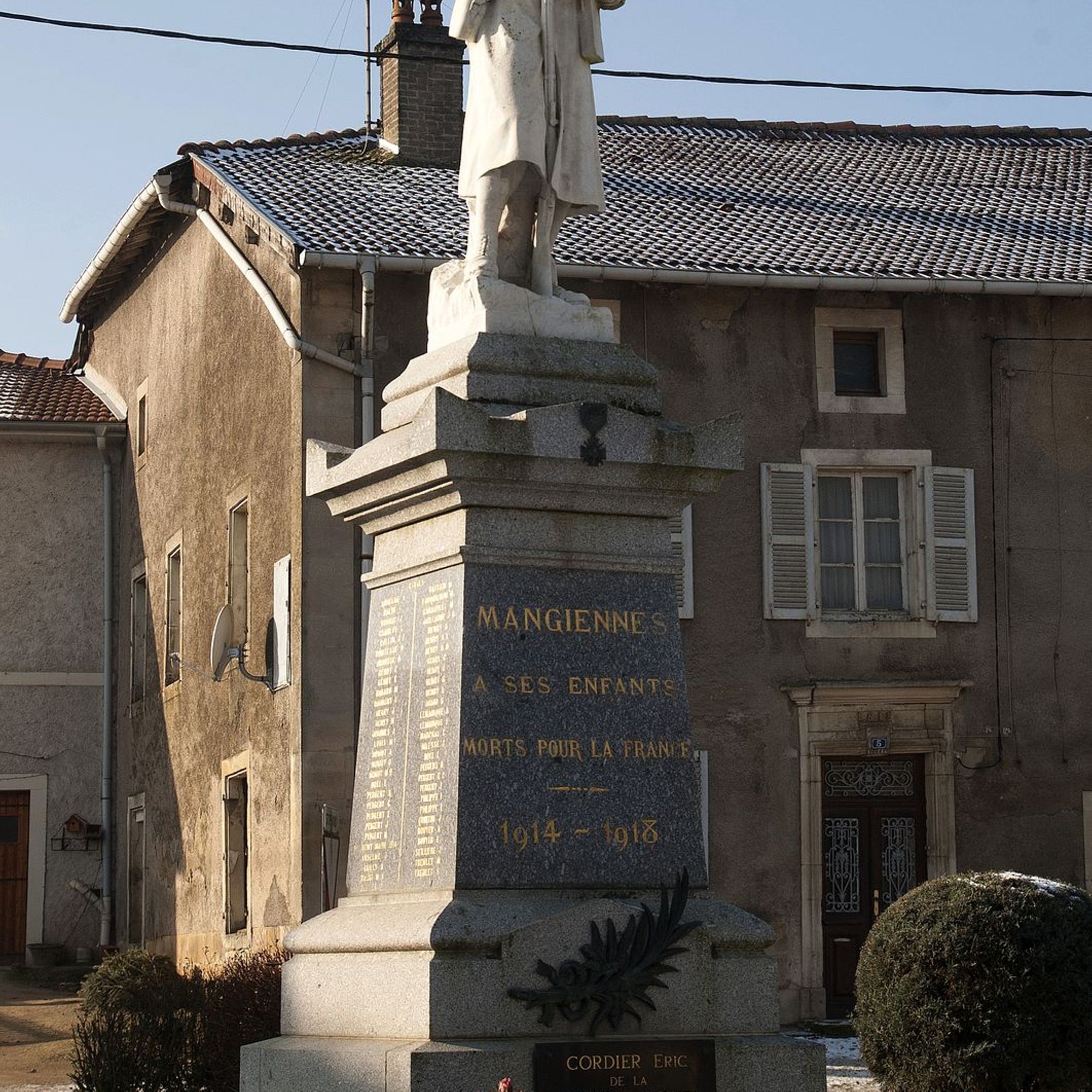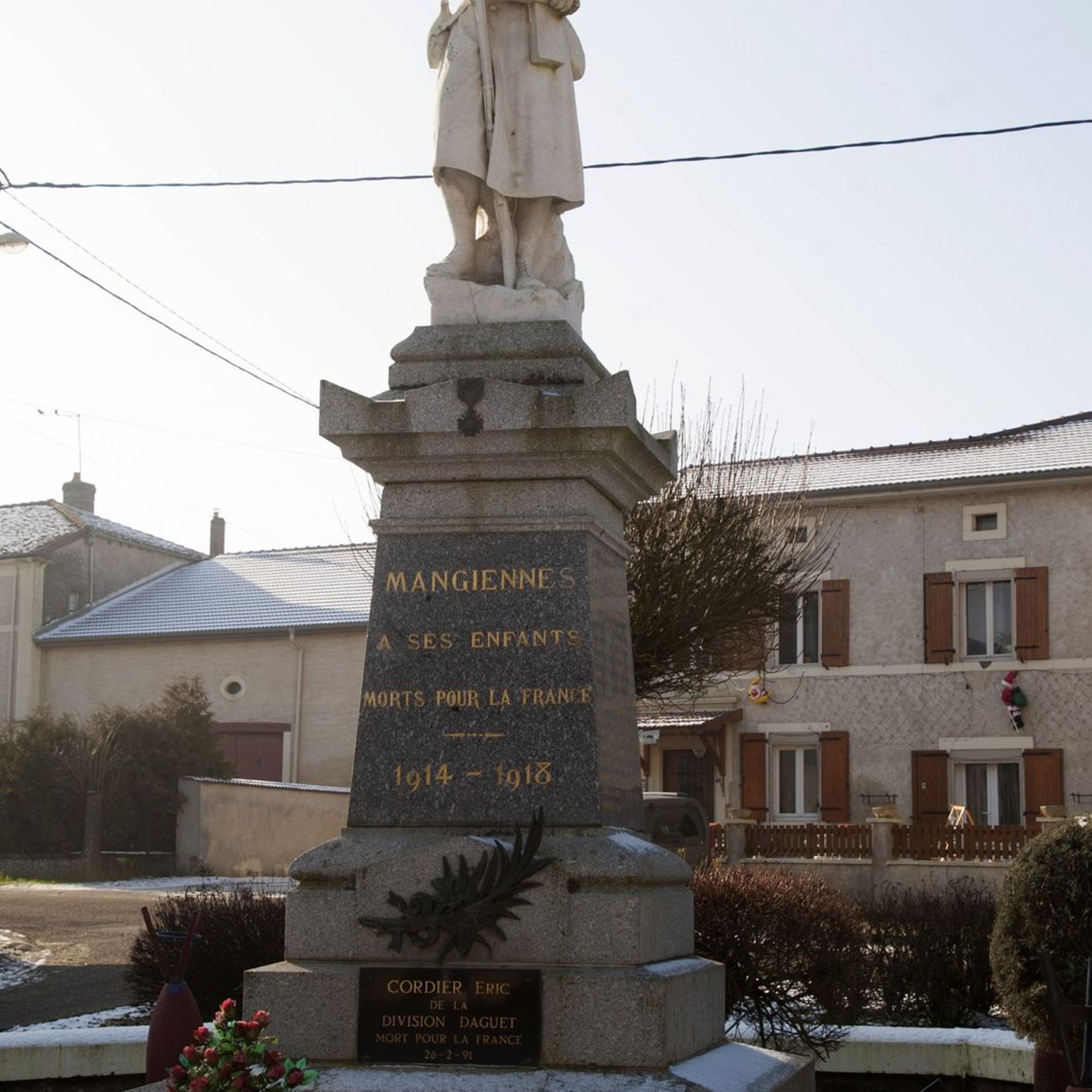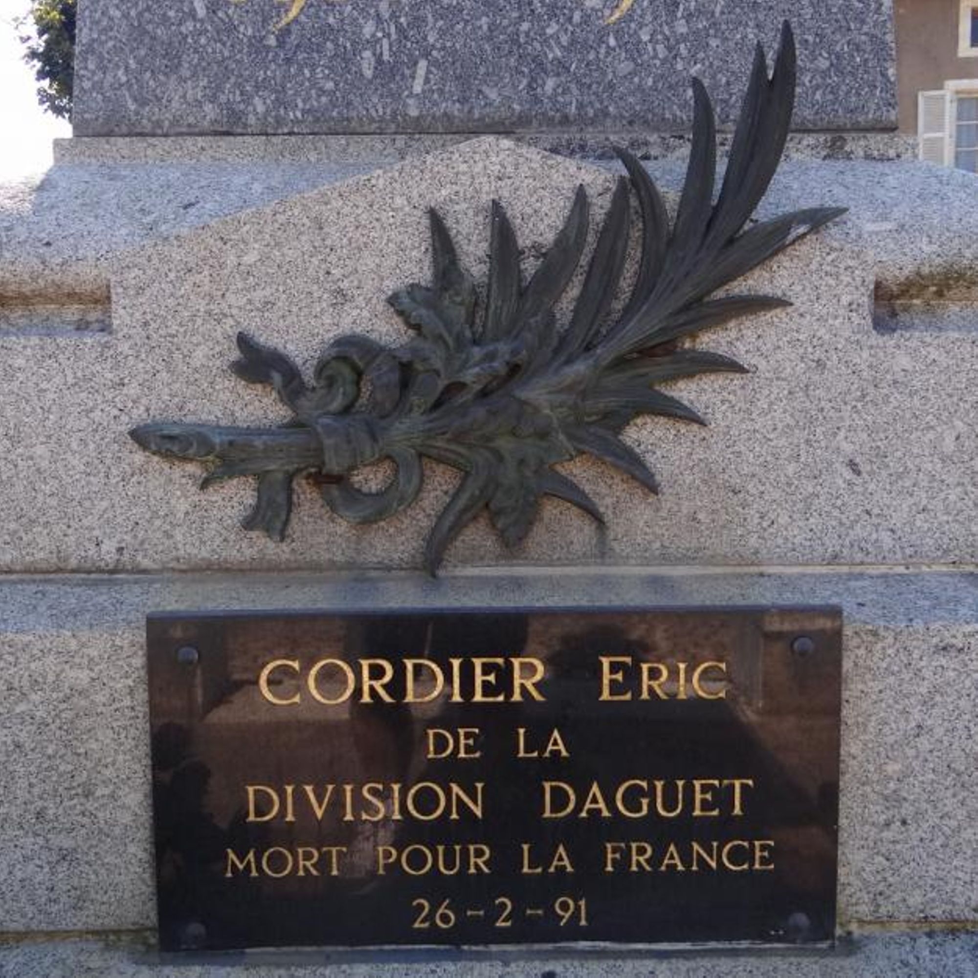 - Plaque additionnelle au pied du monument : CORDIER Eric, de la division Daguet, Mort pour la France 26/02/1991.