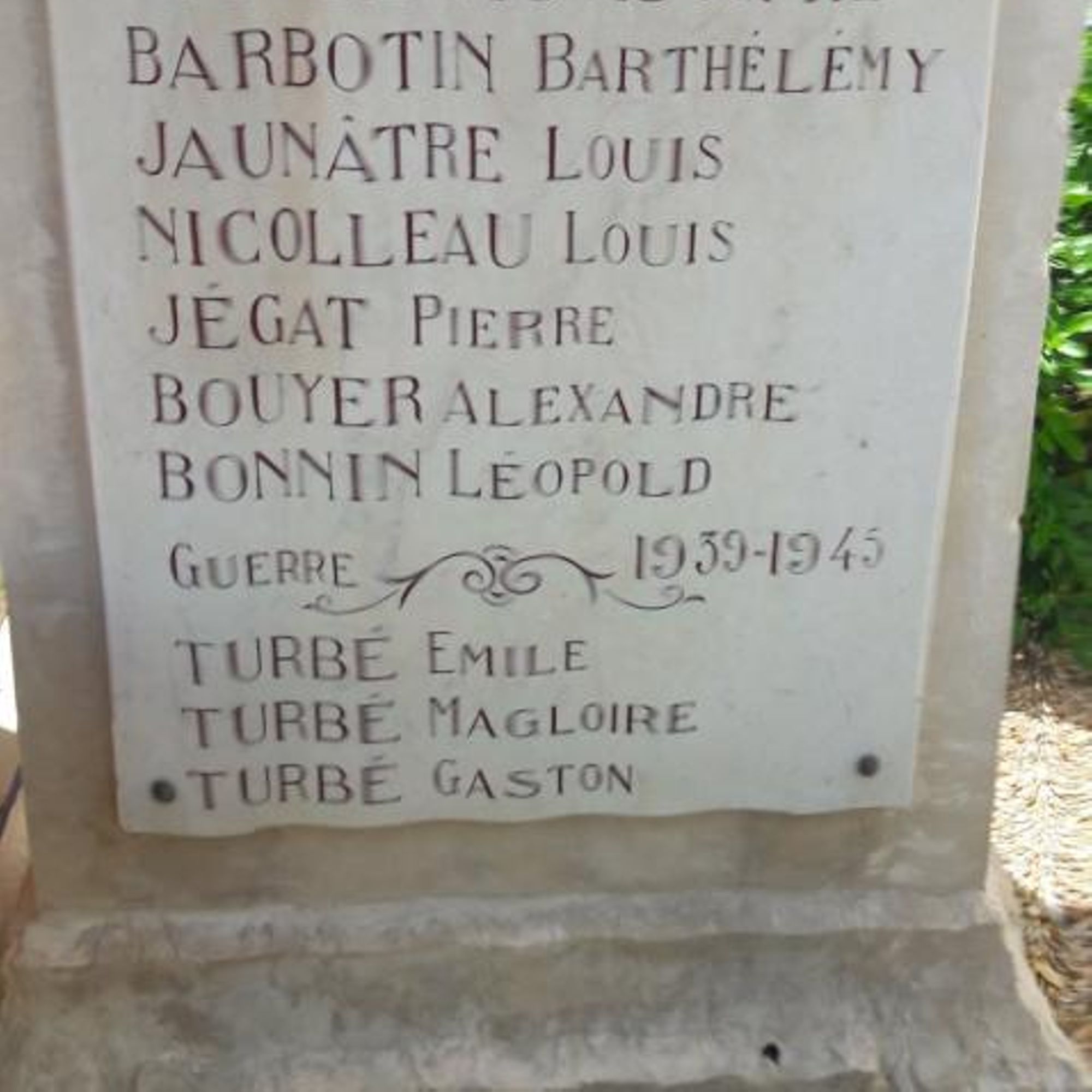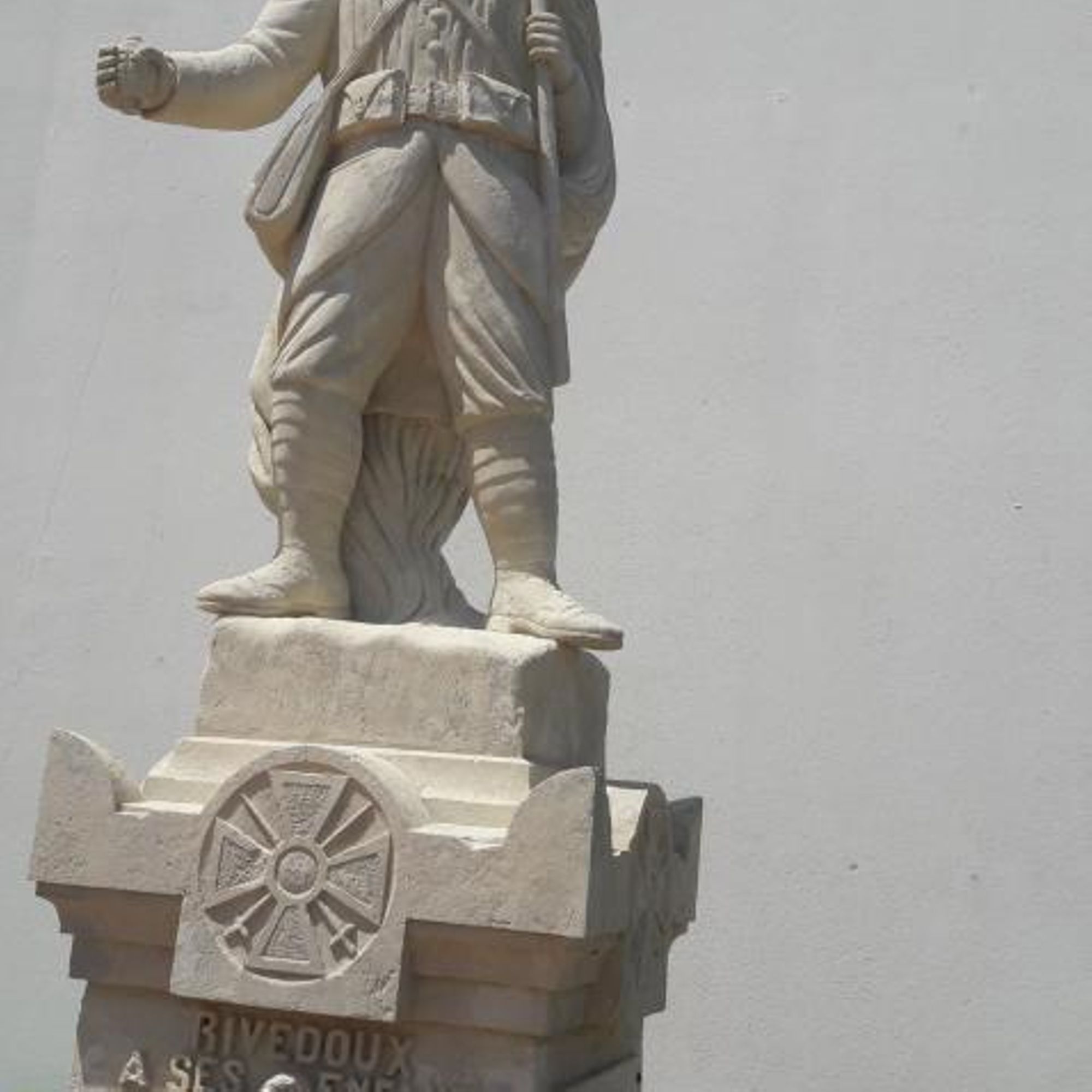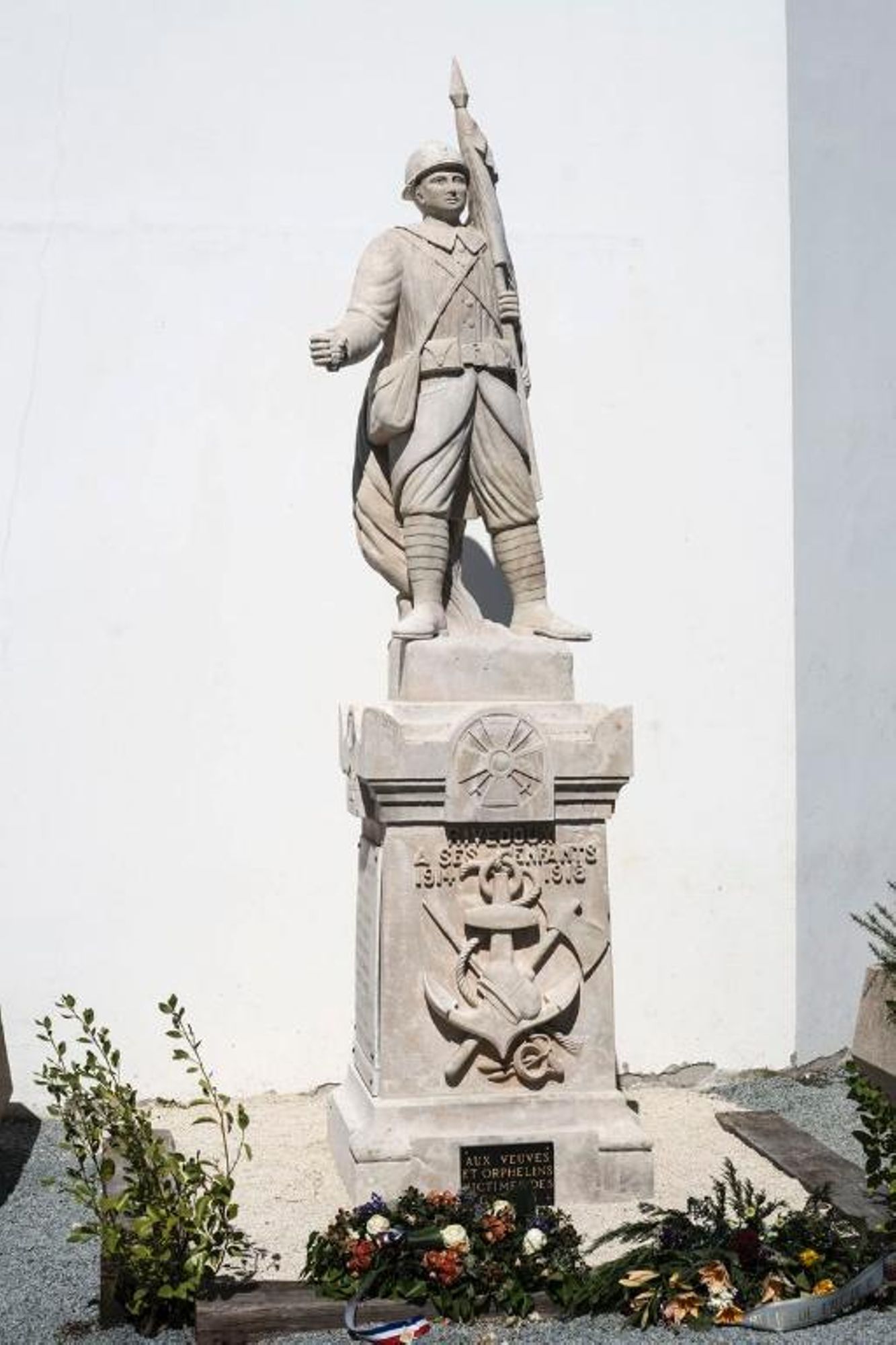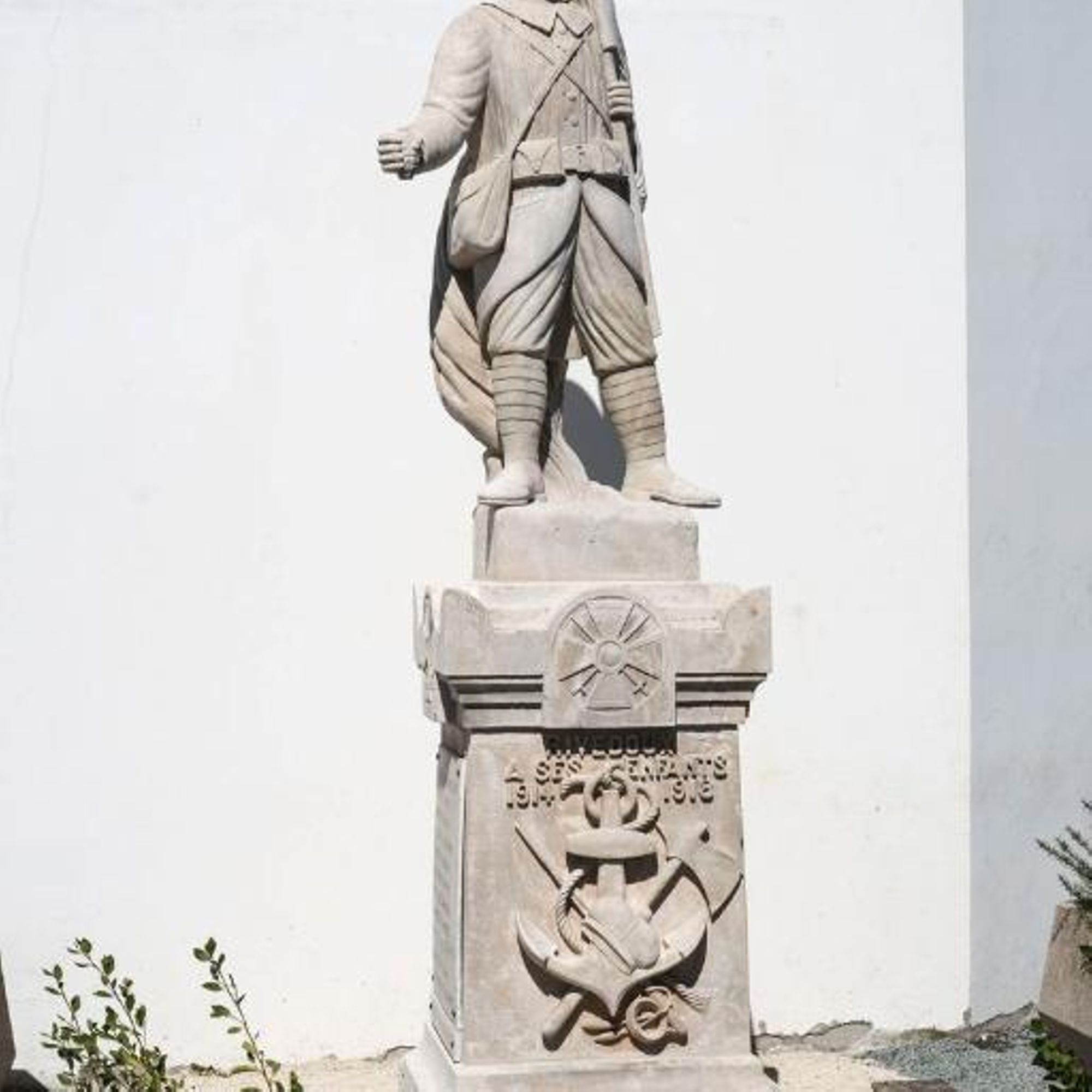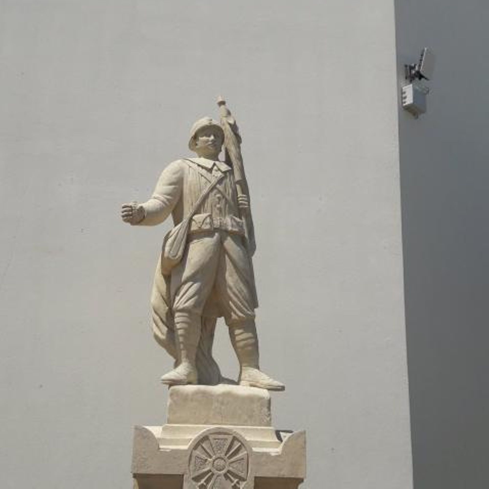 - Sur un piedestal, statue d'un poilu tenant un drapeau dans sa main gauche et une grenade dans la main droite.