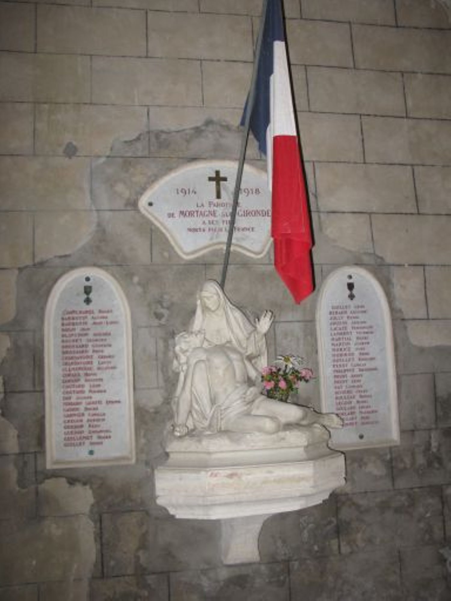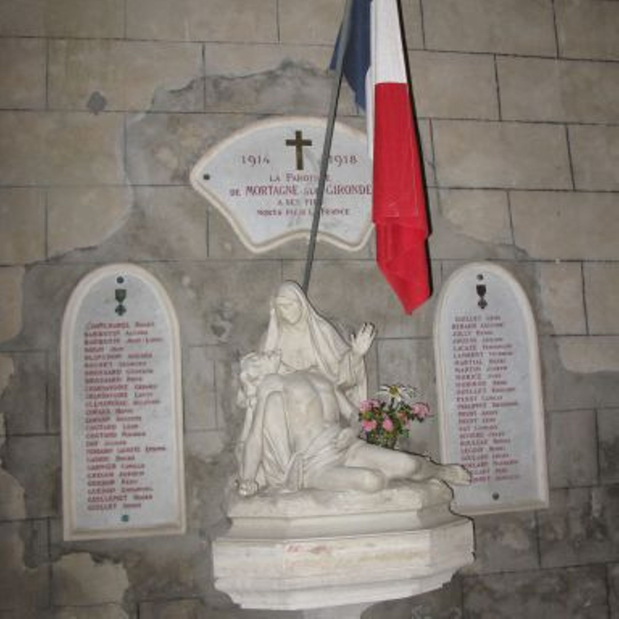 Plaque commémorative avec statue du Christ dans les bras de la Vierge