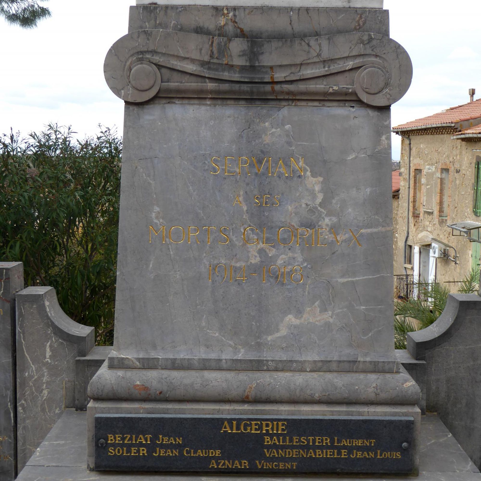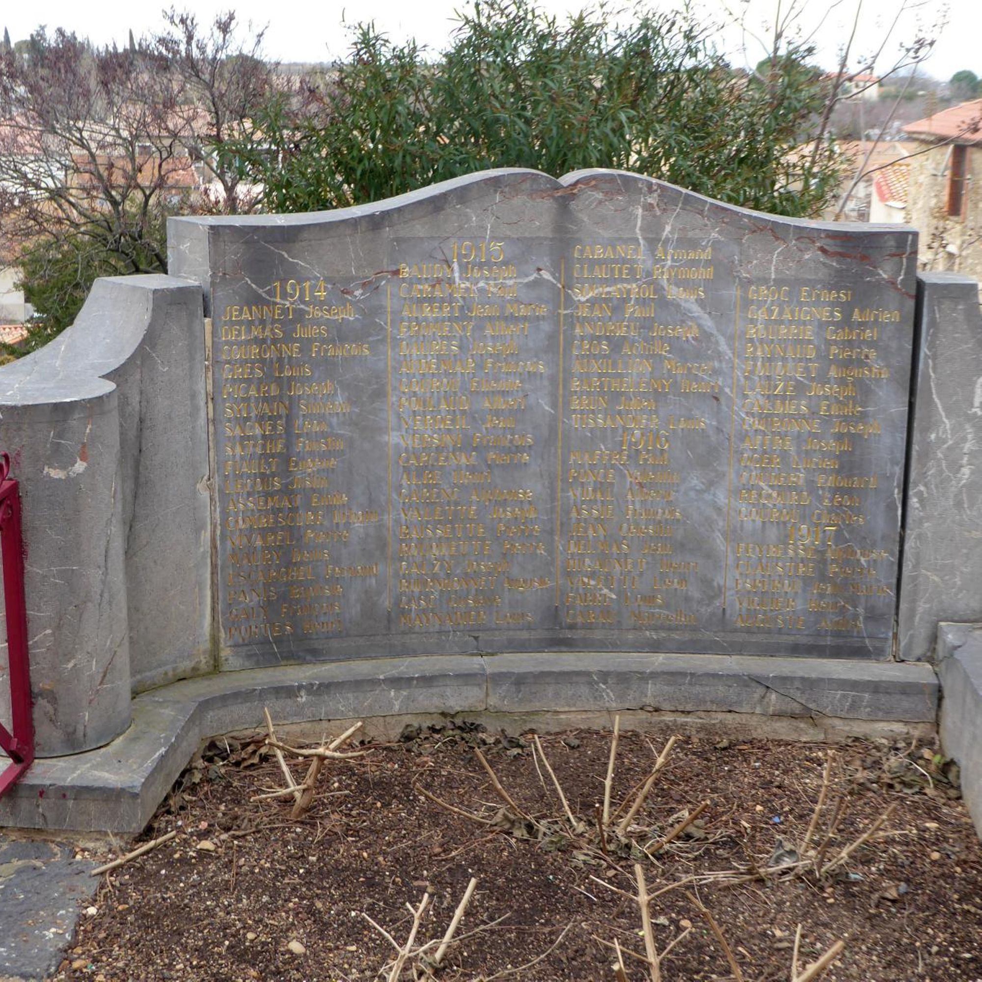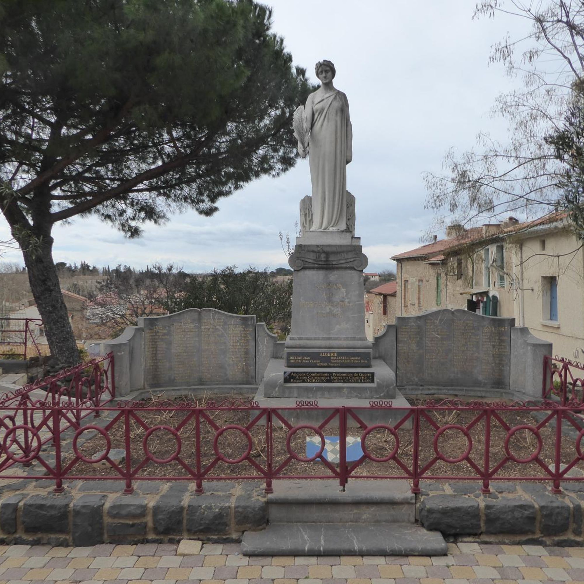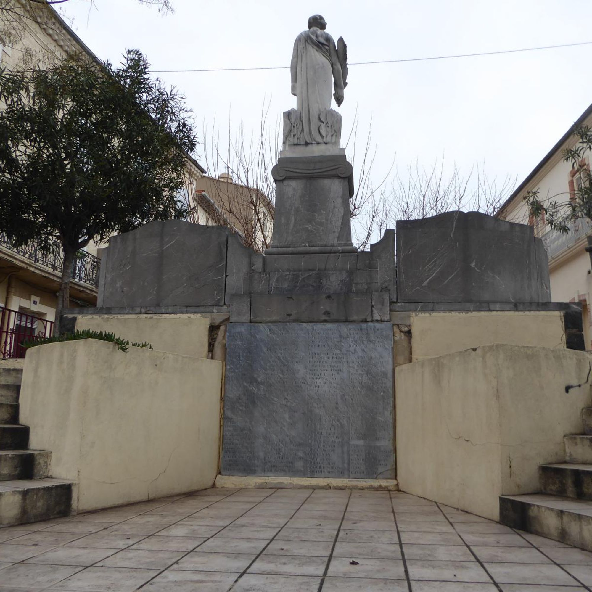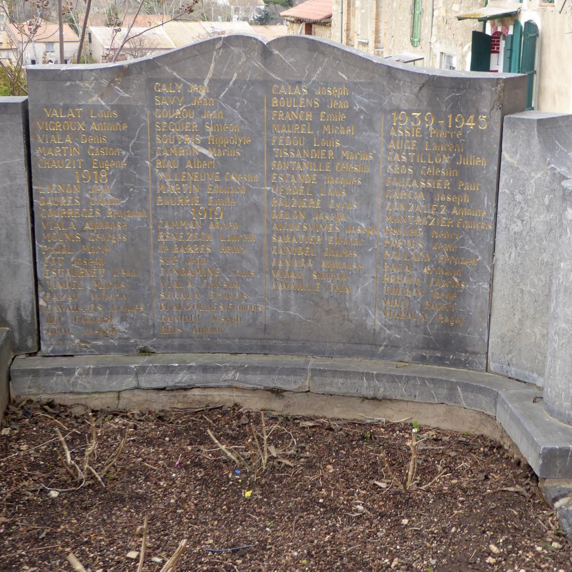 Au fond d'une place proche de la Mairie, dominant un jardin public en gradins, est installé un enclos , ceint de grilles sur trois côtés et fermé au fond par un mur en pierre en deux parties dessiné comme deux livres ouverts portant les listes de noms des morts 1914/1918 et 1939/1945.