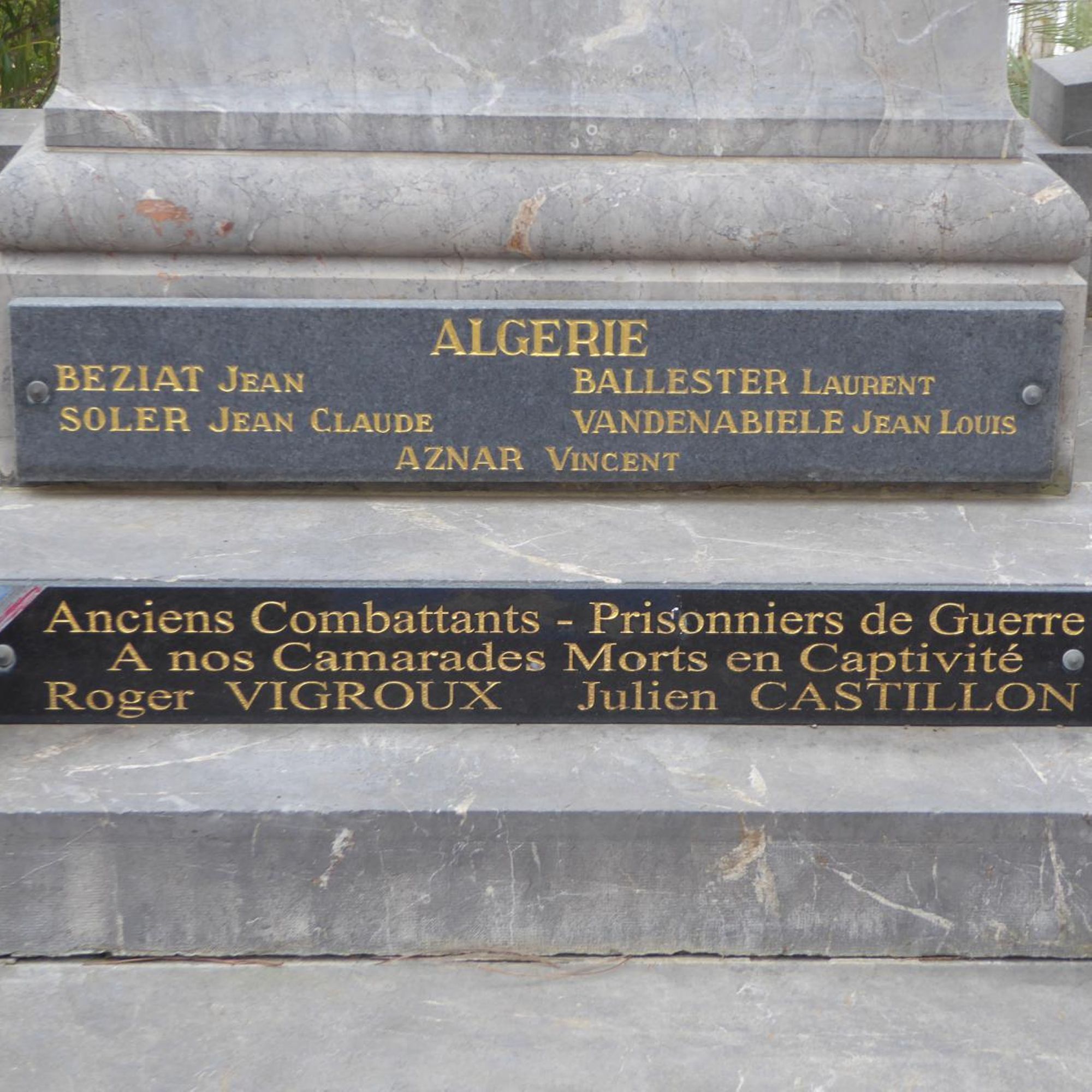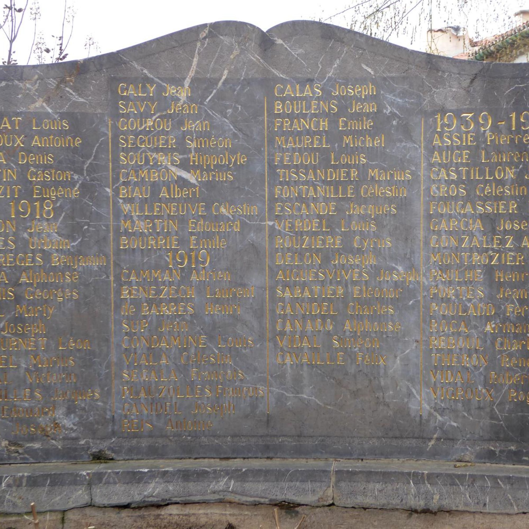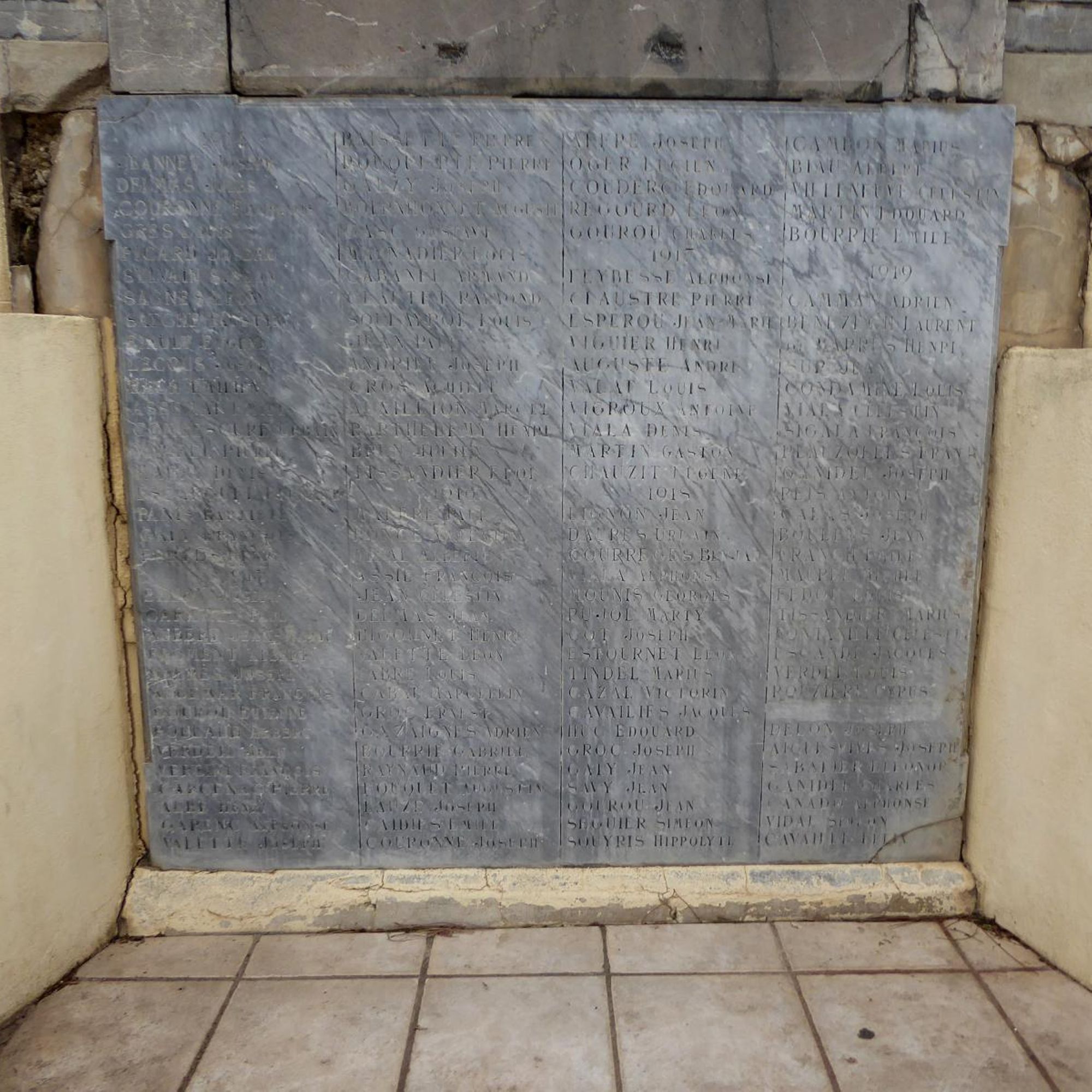 A l'arrière du monument sous la statue est fixée une plaque portant de nouveau la liste des noms des morts