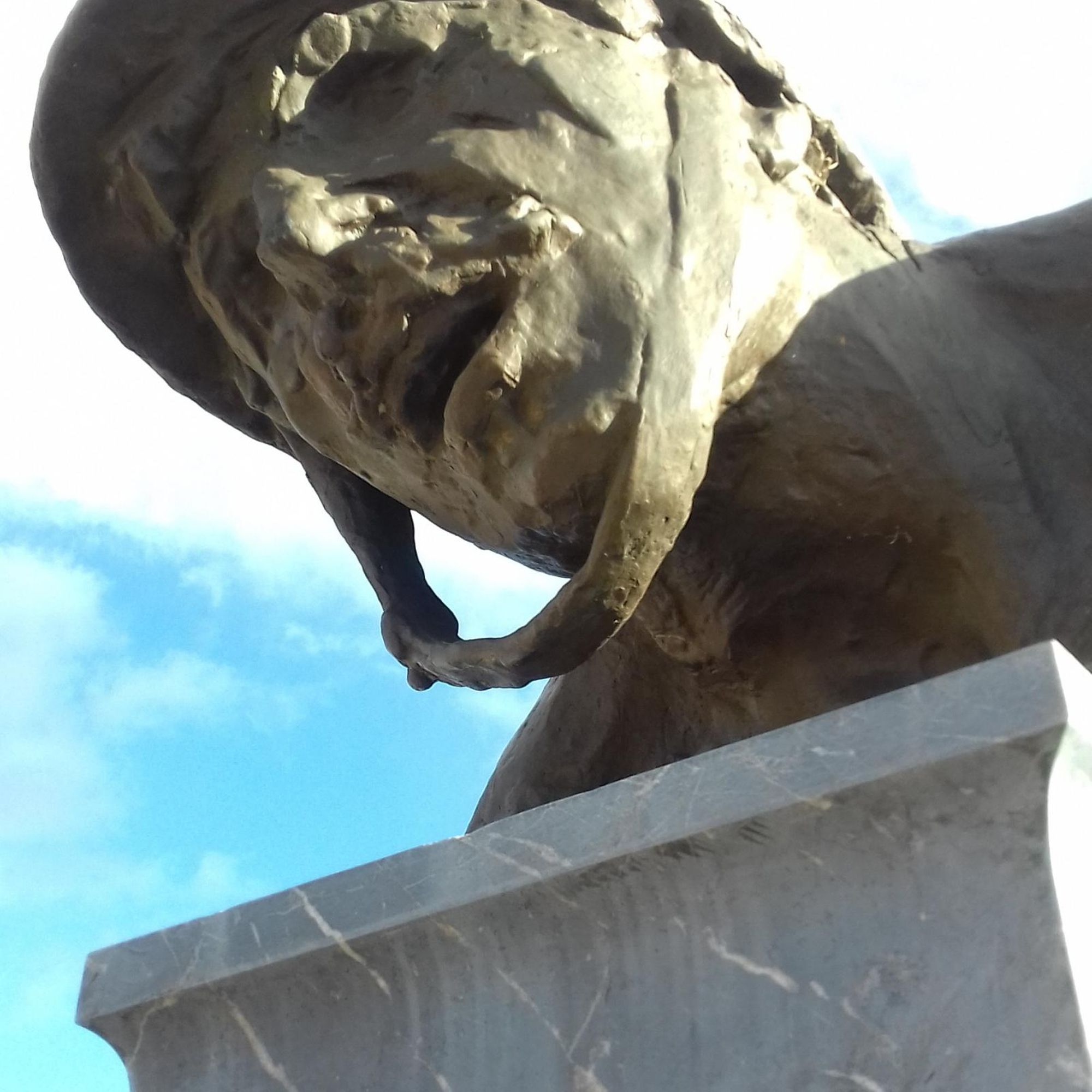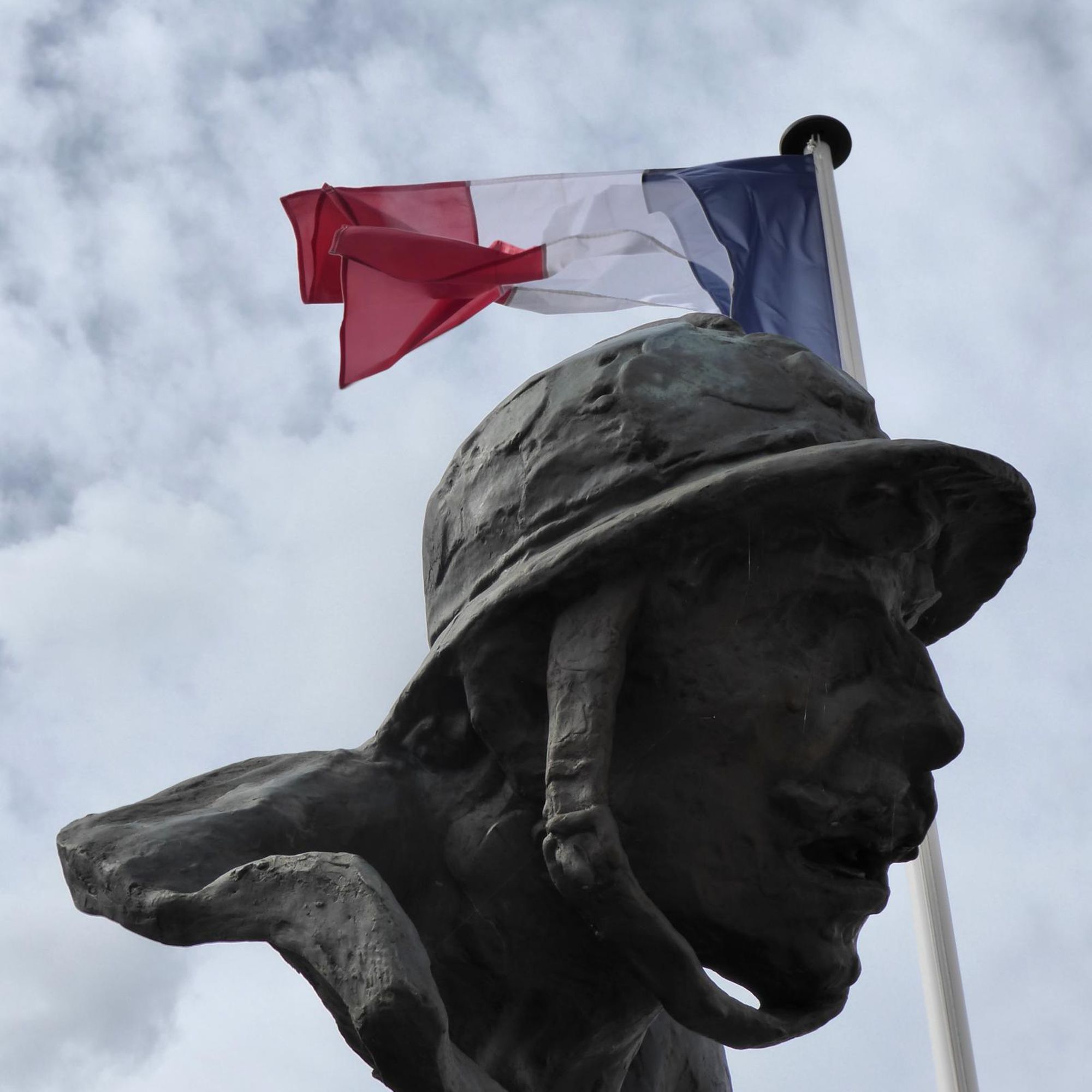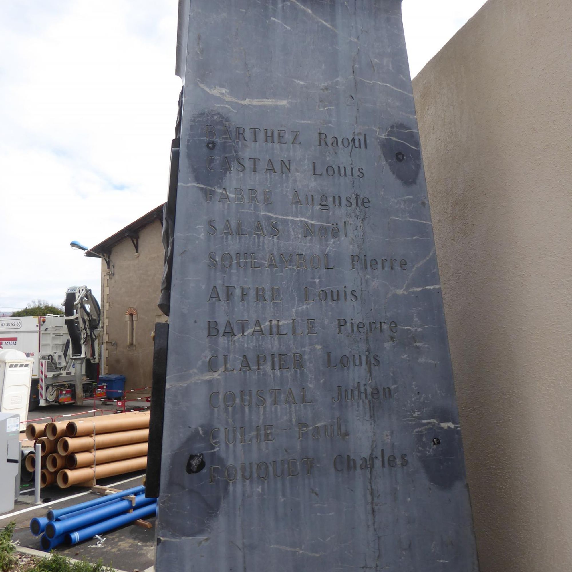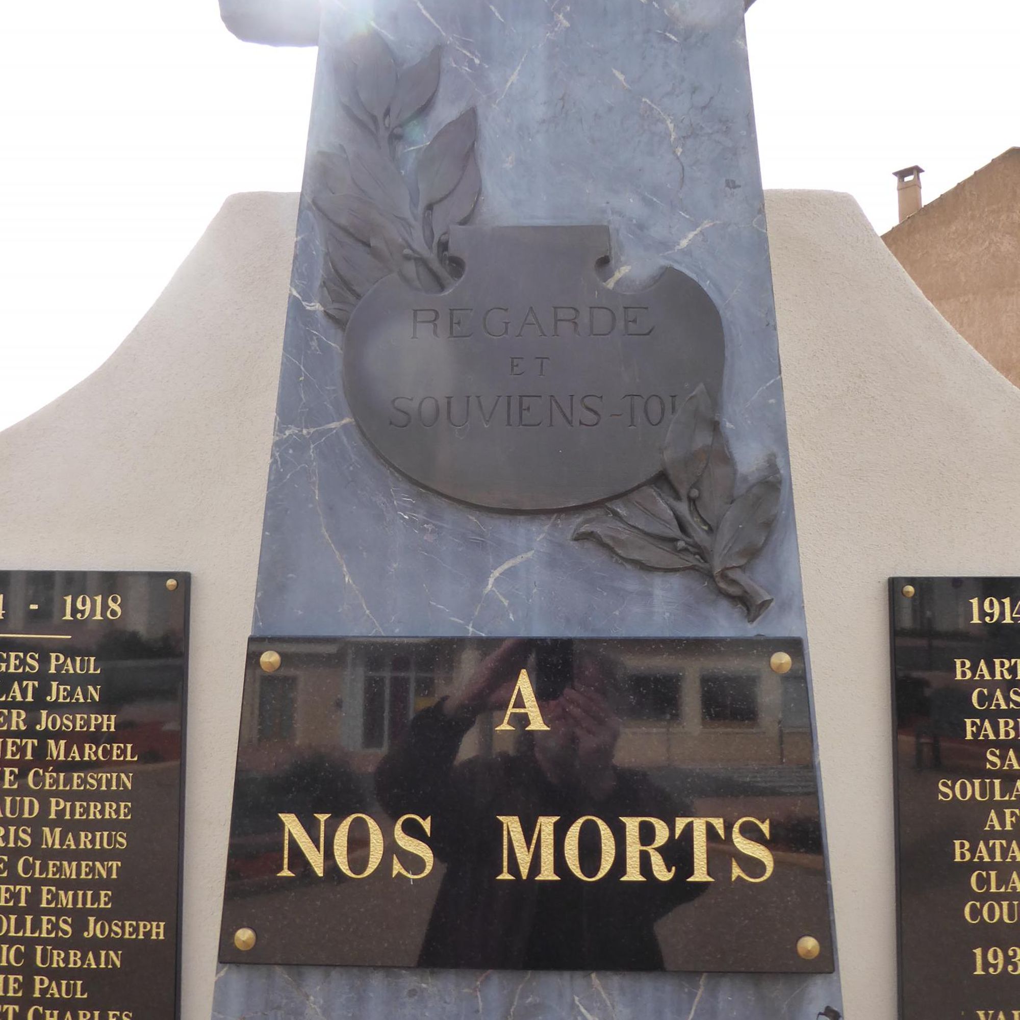 Un peu d'histoire: (source Thierry Murat) : En 1922, l'artiste Jacques VILLENEUVE natif de Bassan sculpte trois têtes de poilus d'inspiration pacifiste.