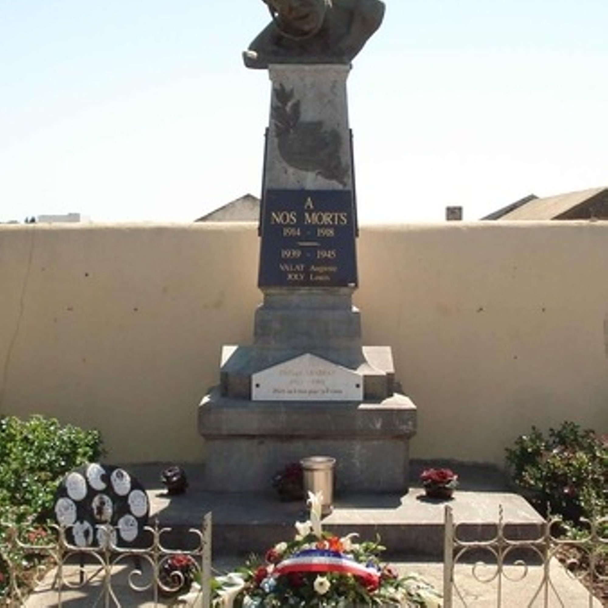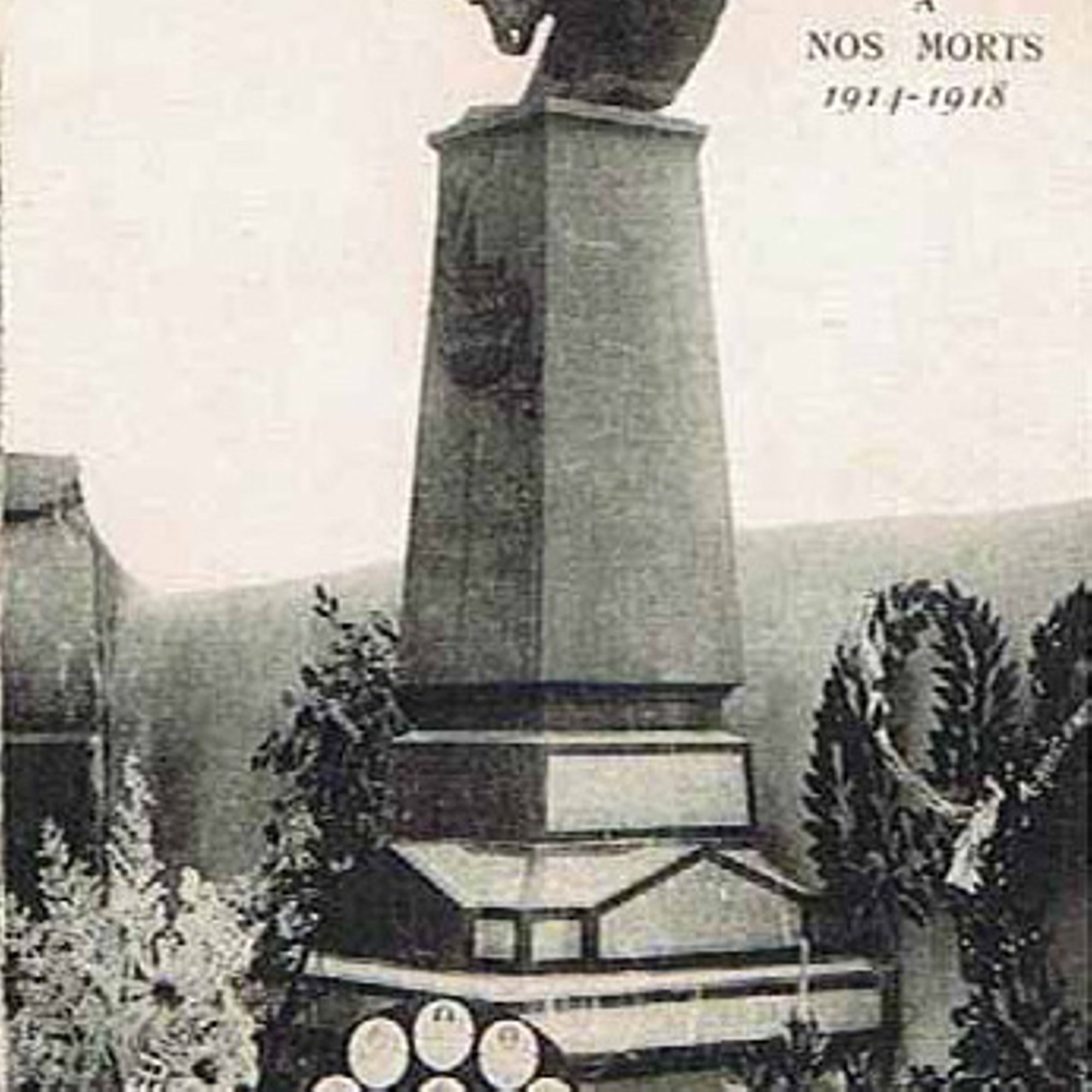 Contre un muret maçonné et enduit, est érigé le monument originel constitué d'un obélisque tronqué supportant le buste en bronze d'un poilu mourant ou souffrant.