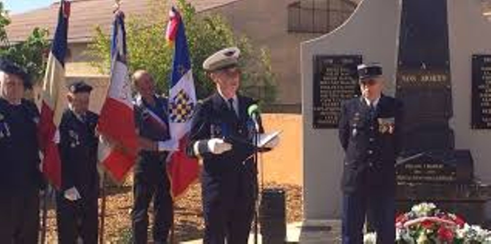 L'obélisque est orné d'une palme et une plaque imitant la plaque militaire et portant une inscription