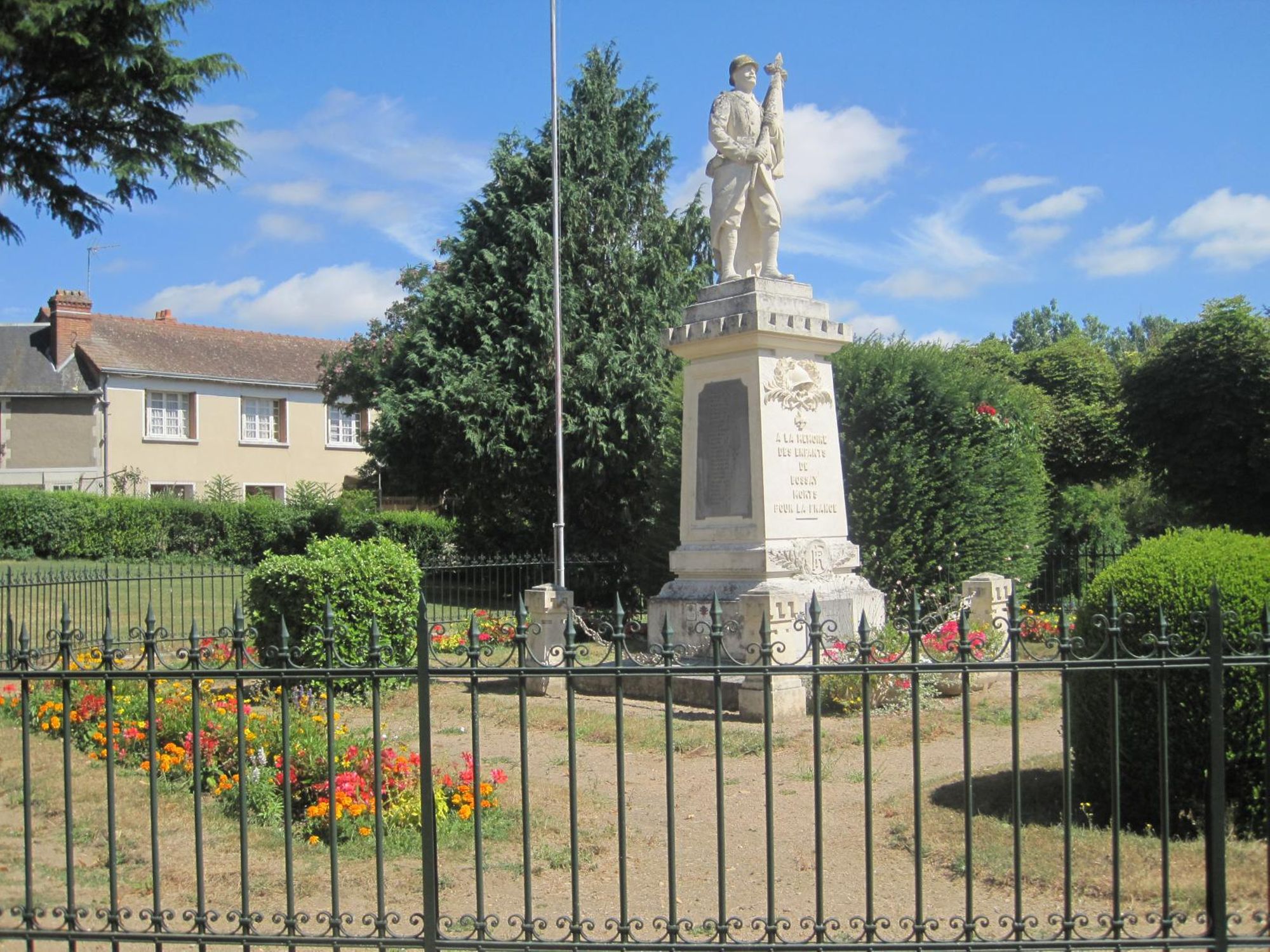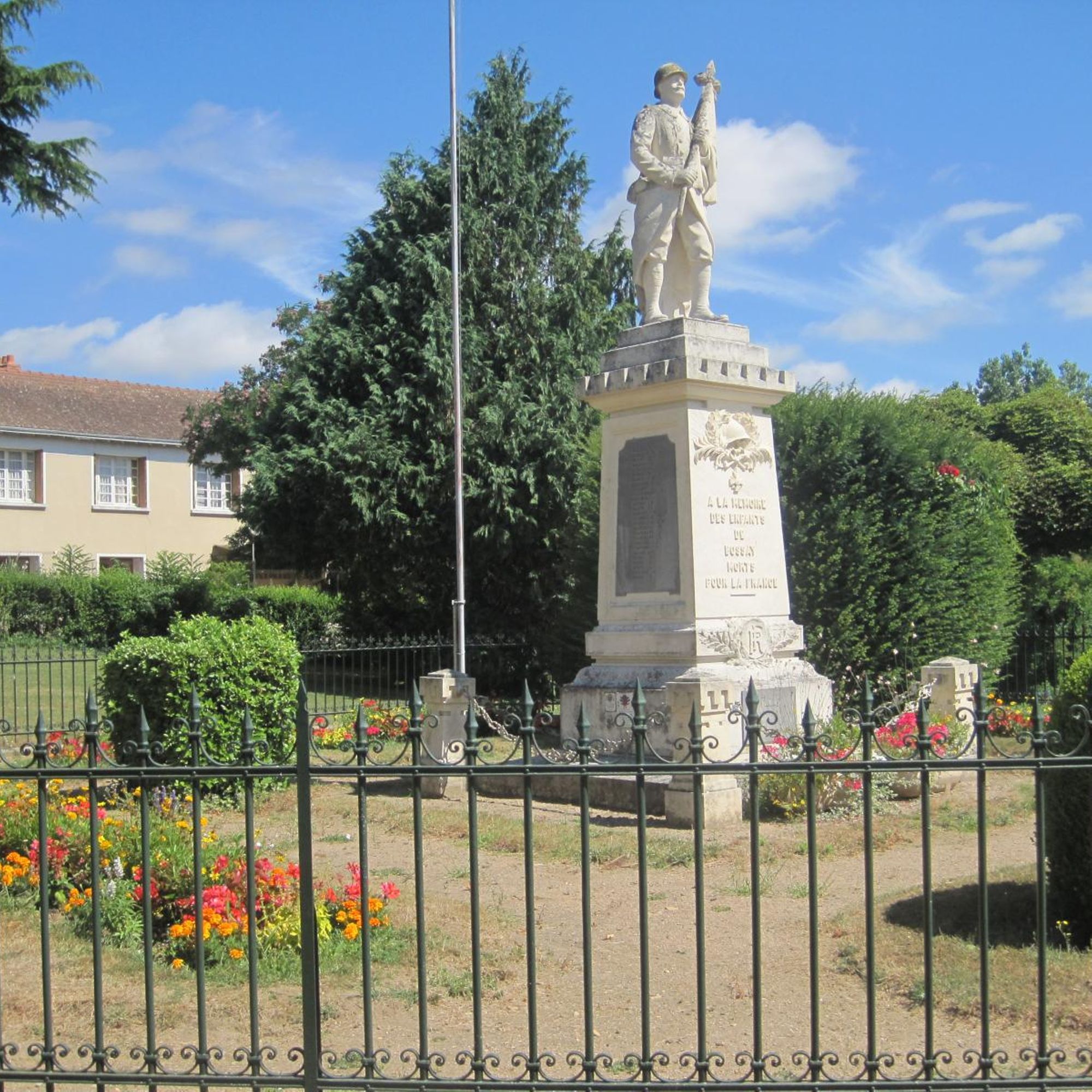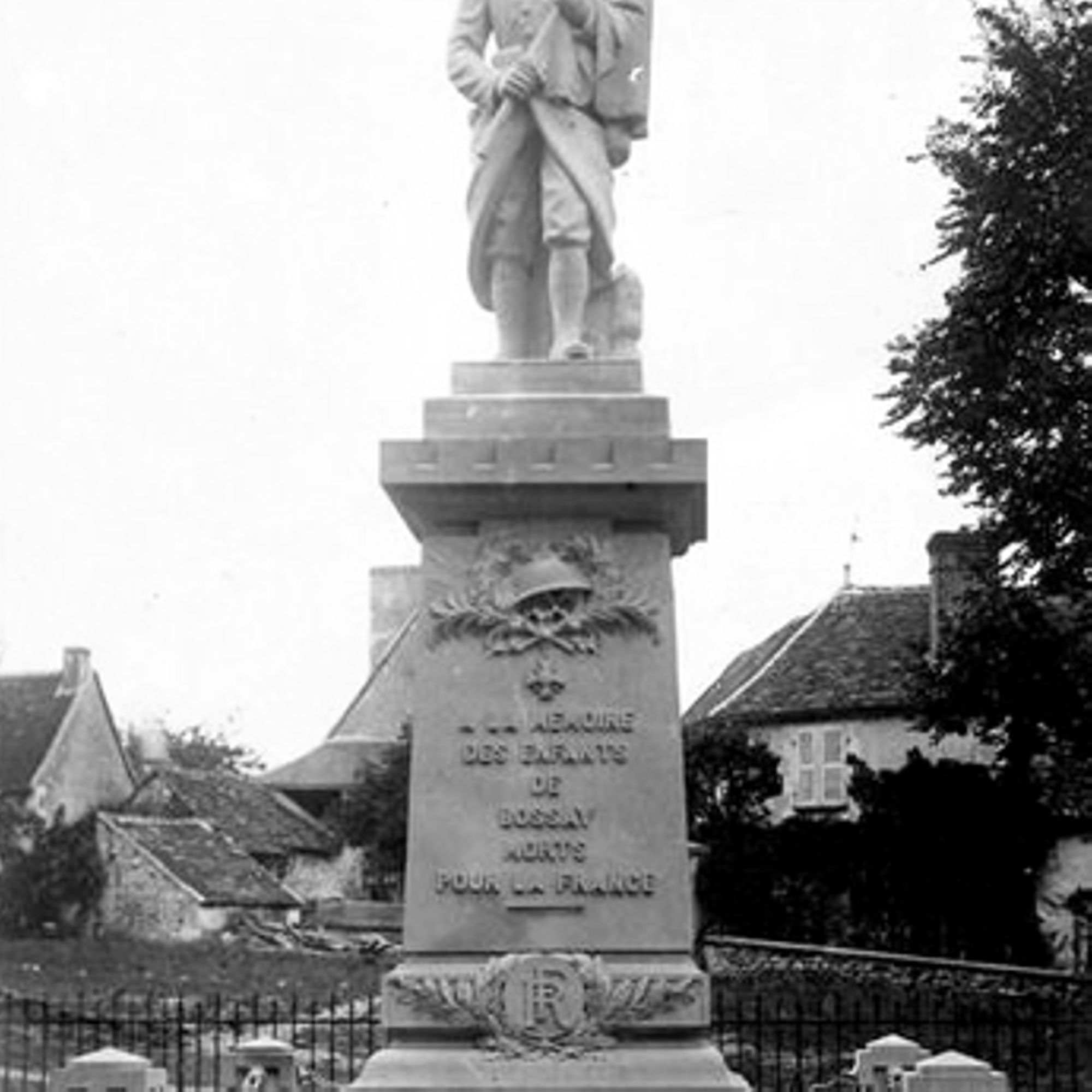 Il représente le « poilu » qui a combattu sur le front, serrant dans ses bras le drapeau, emblème sacré de la patrie. C’est le symbole des quatre-vingt huit jeunes Bosséens qui sont morts pour la France, image d’un deuil immense.