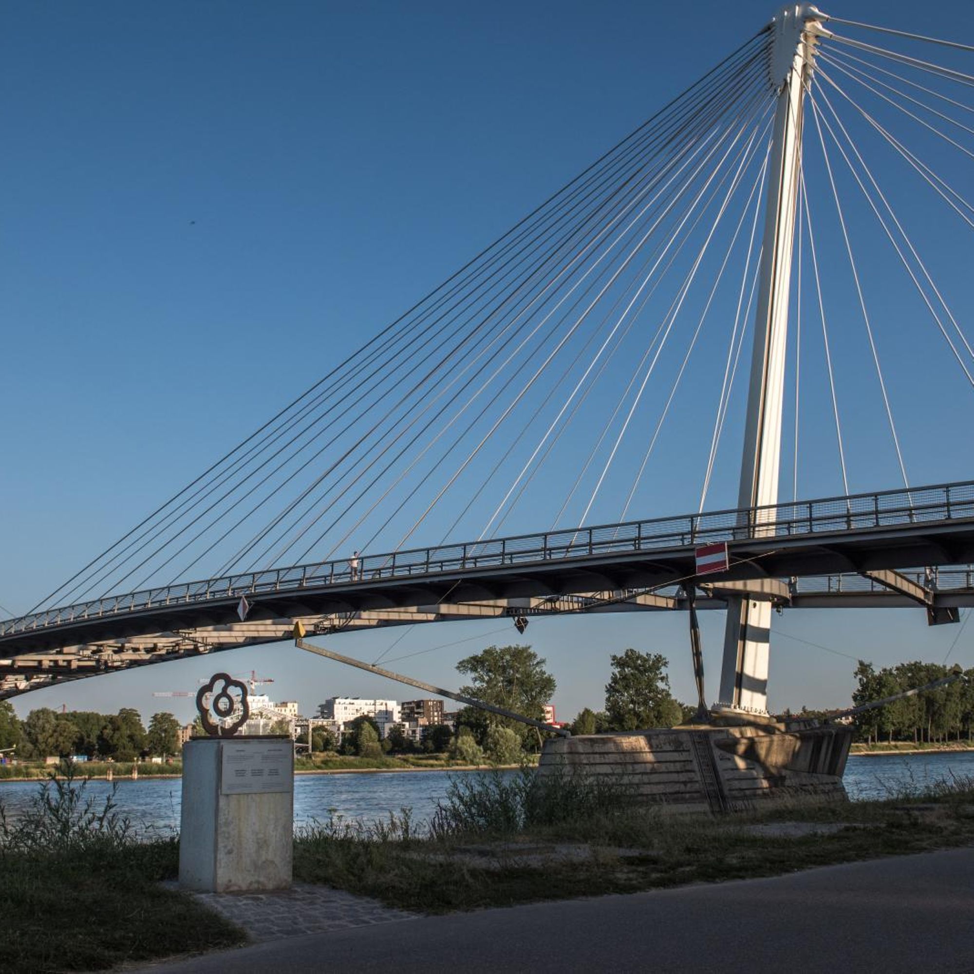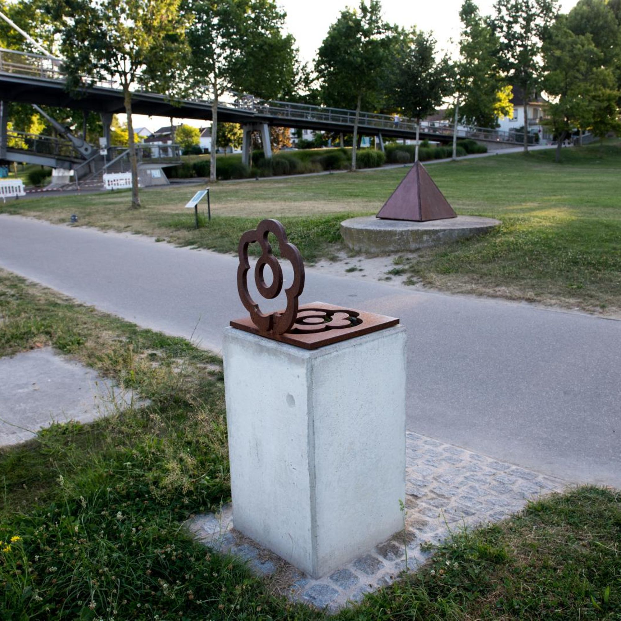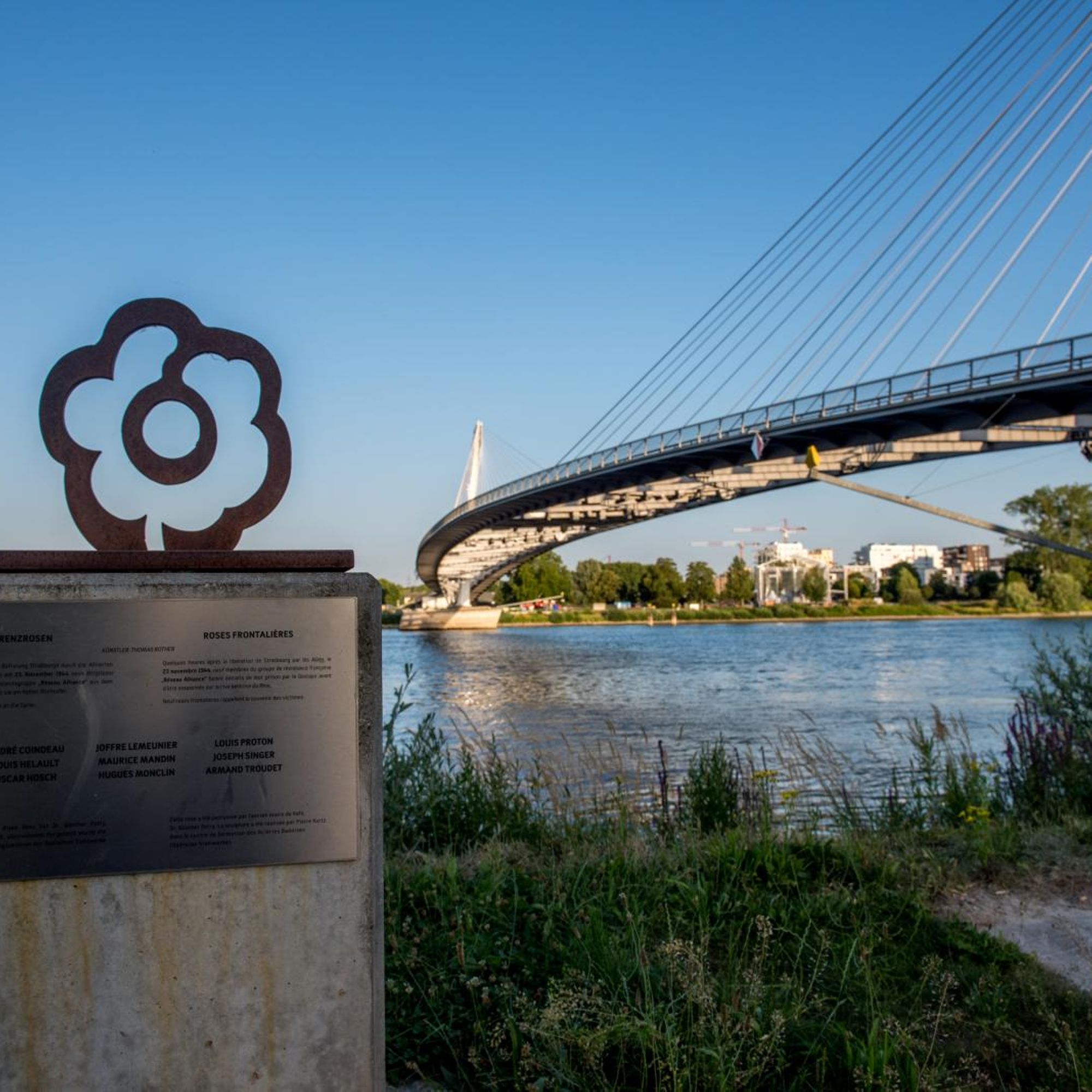 - Dans le Jardin des Deux Rives, à l’entrée de la passerelle, côté français (voir Strasbourg)