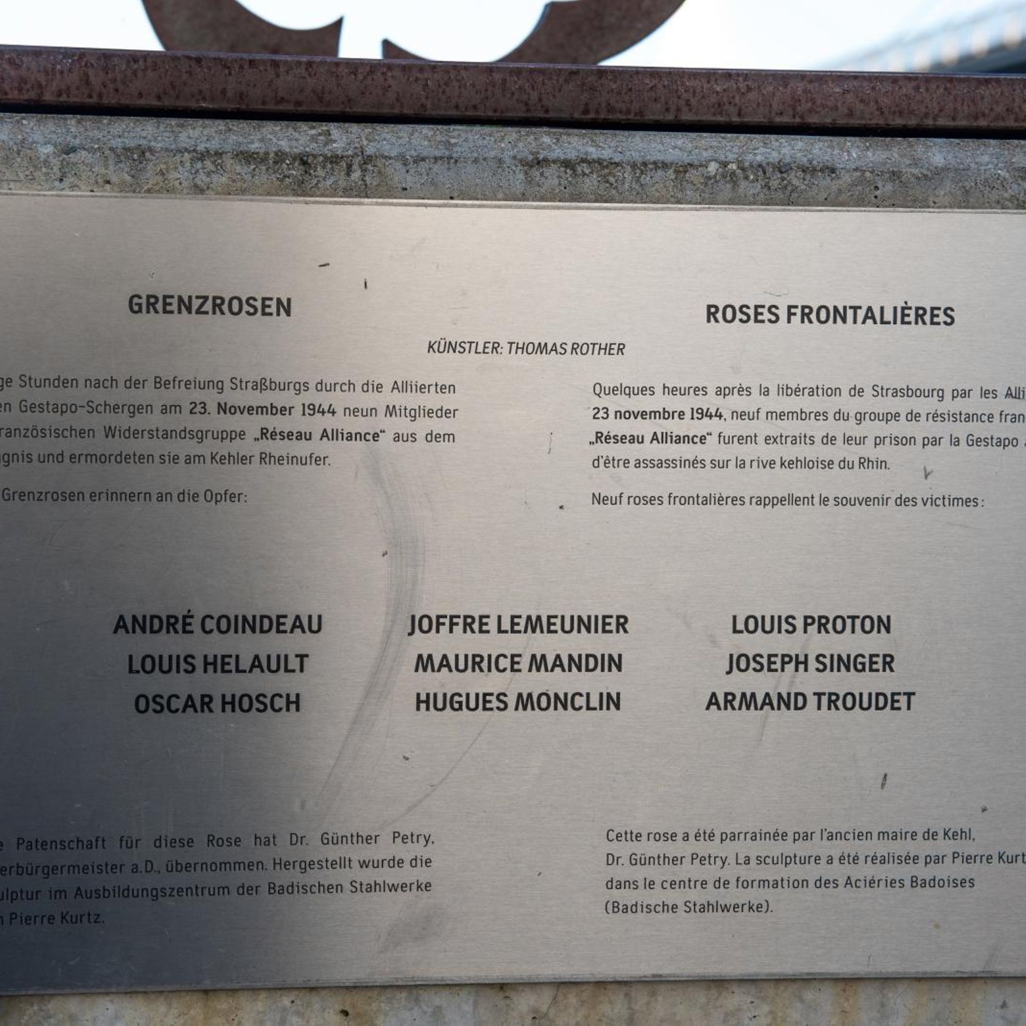 In Kehl wurden zwischen Juni 2013 und November 2014 insgesamt acht Rosen installiert, eine neunte erhielt die Nachbarstadt Straßburg in Frankreich. Verbunden damit ist die Erinnerung an die Ermordung von neun französischen Widerstandskämpfern des Réseau Alliance durch die Gestapo am 23. November 1944.