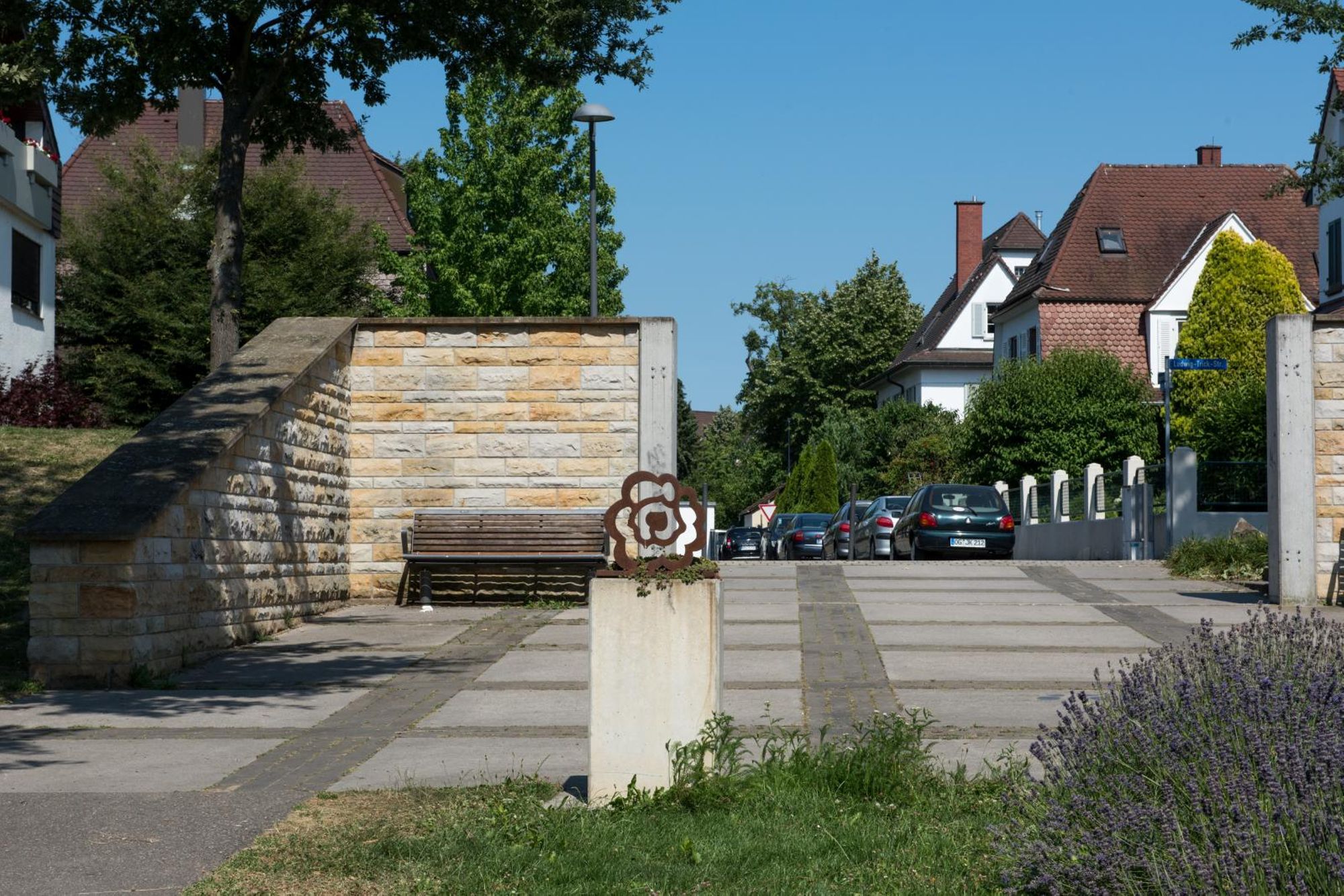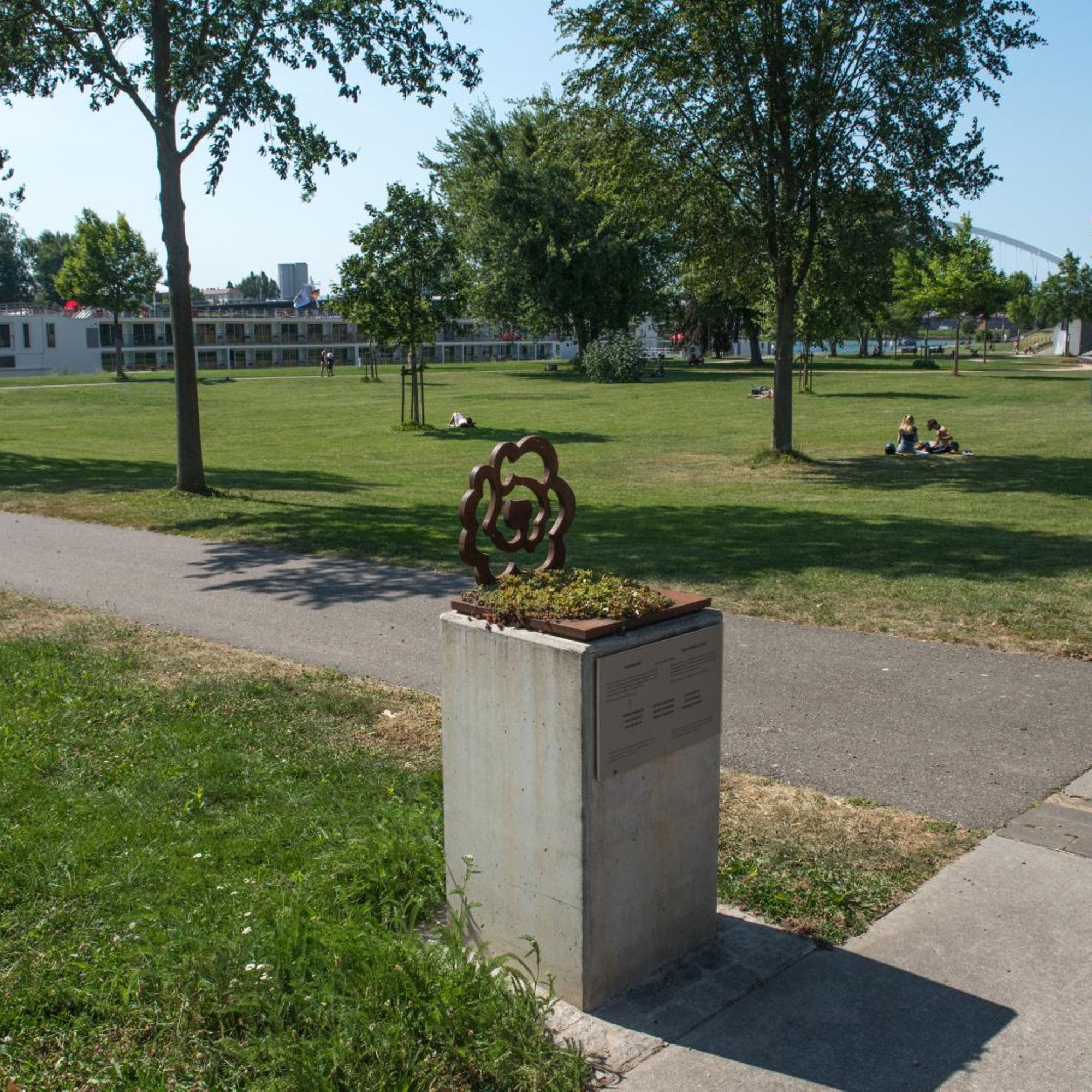 - Dans le Jardin des Deux Rives, au croisement de la Hagenstraße et de la Ludwig-Trick-Straße