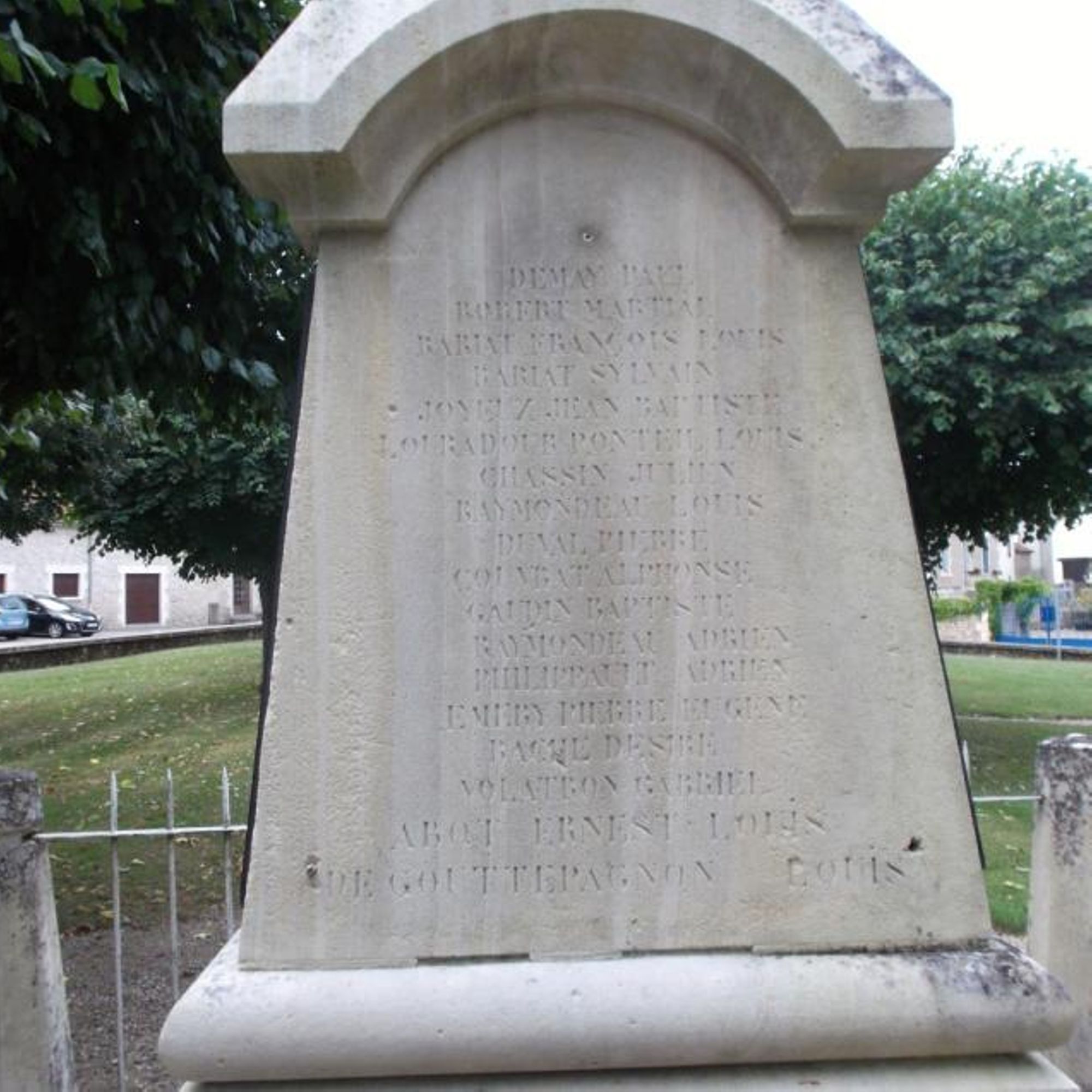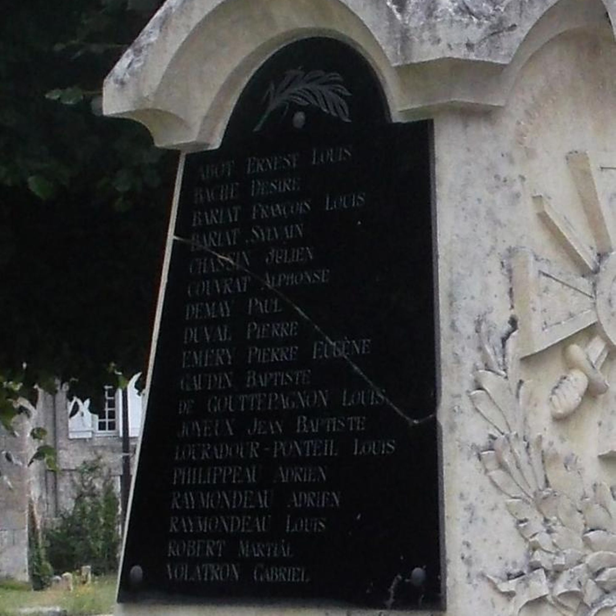 - Les noms des morts sont gravés sur le monument et répétés par ordre alphabétique sur une plaque ajoutée