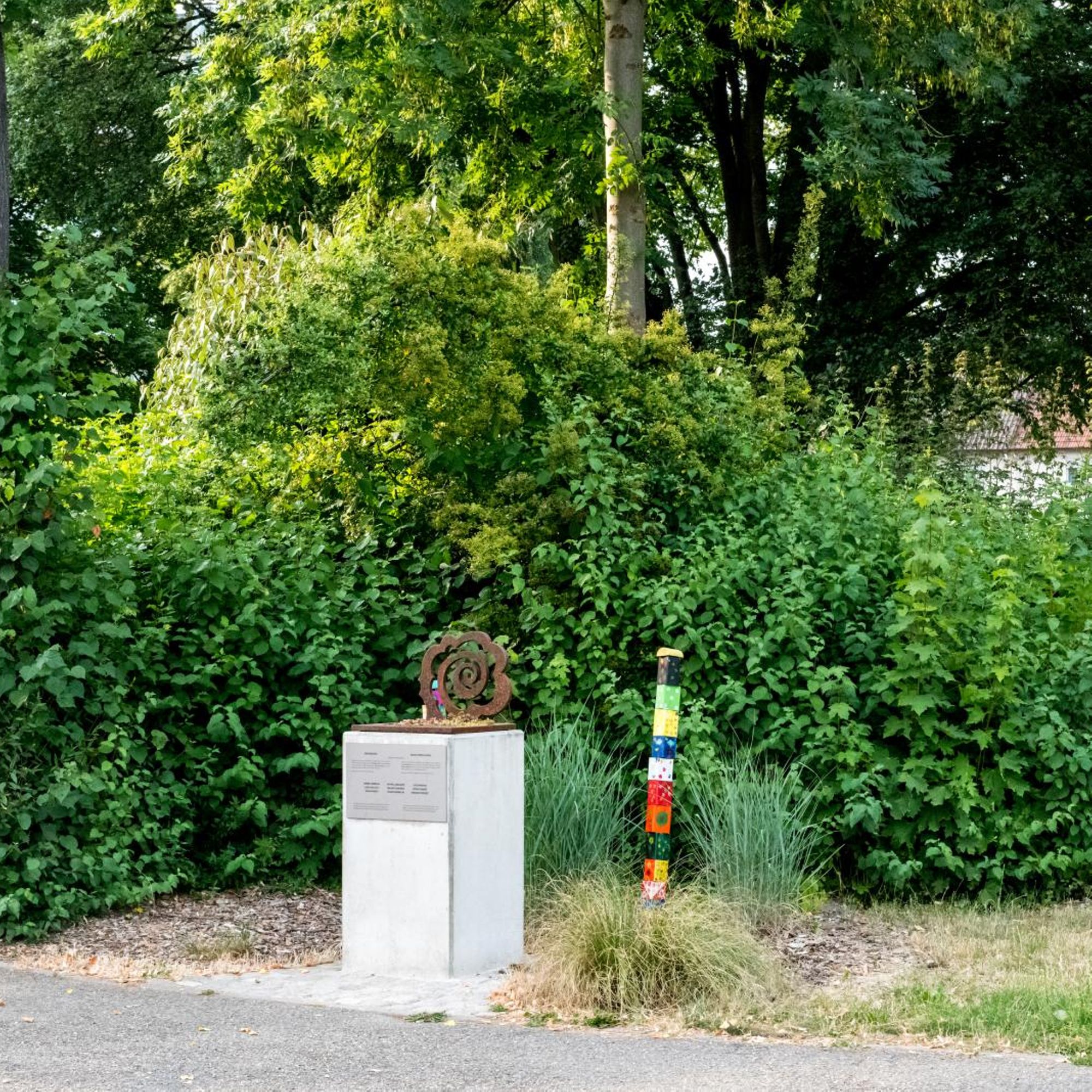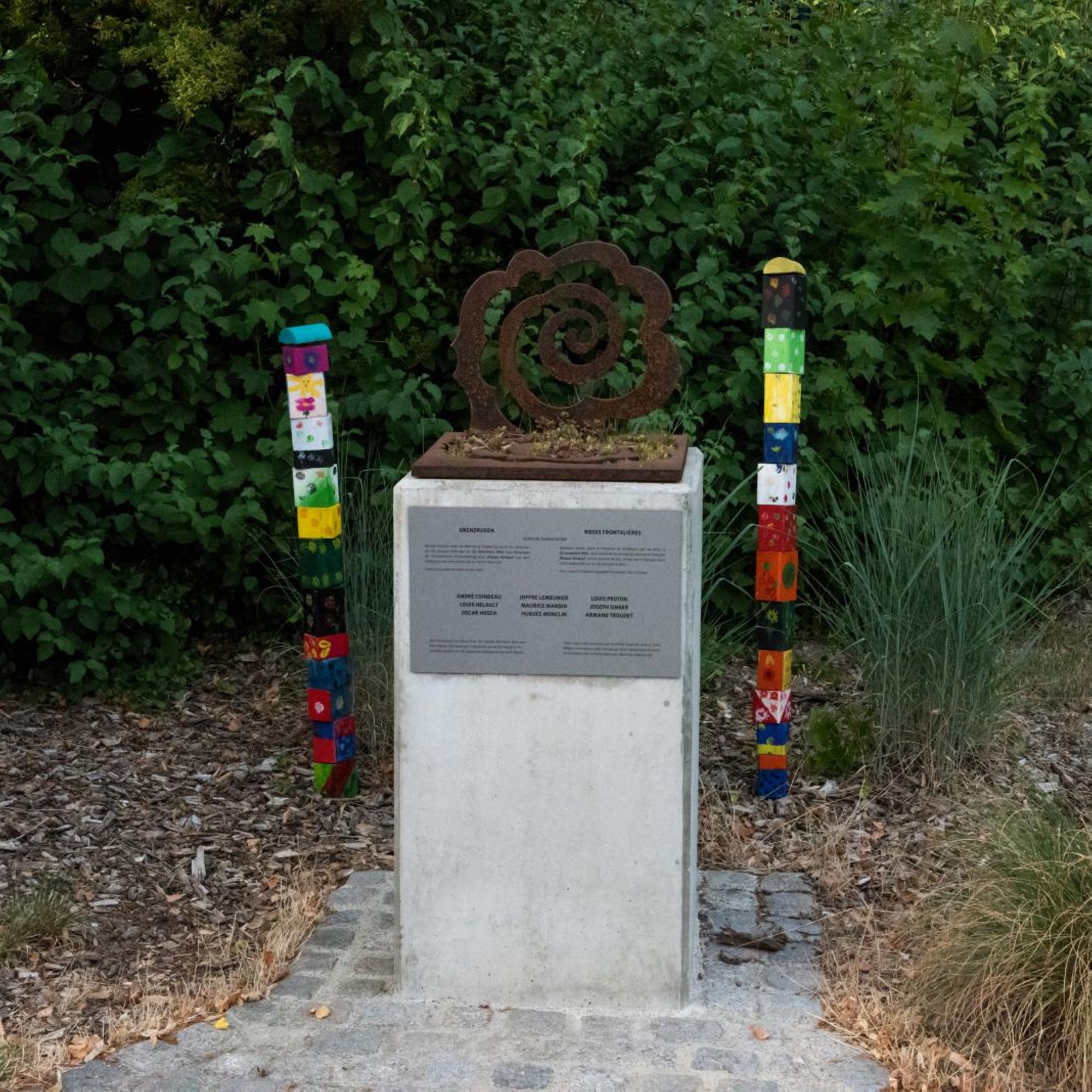 Die Arbeiten „Grenzrosen" des Essener Künstlers Thomas Rother sind Teil seines europäischen Grenzprojektes. Dabei werden Stahlskulpturen als Zeichen der versöhnenden Erinnerung an Orten aufgestellt, die an tragische Ereignisse im Zusammenhang mit dem 2. Weltkrieg erinnern.