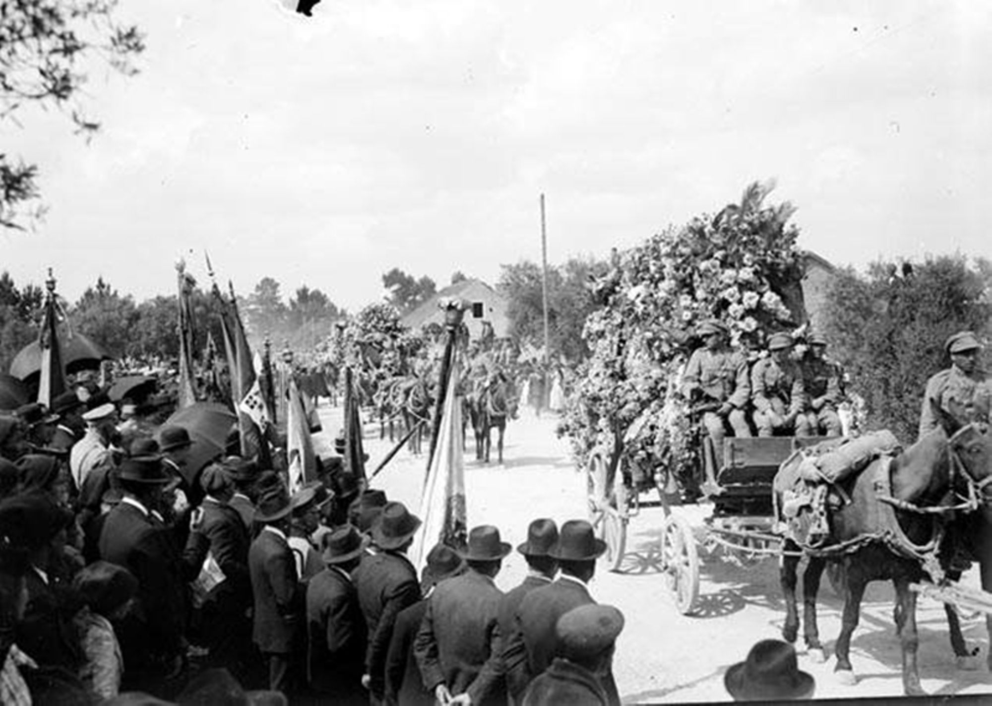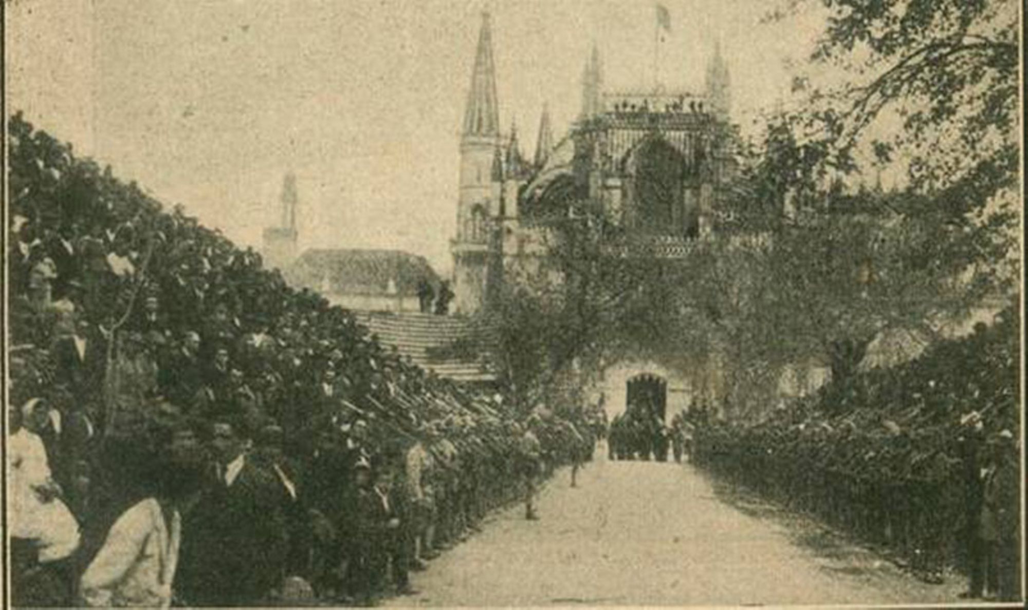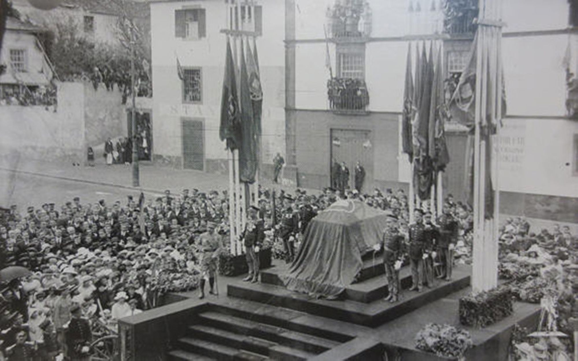 Inauguration officielle, devant une foule importante et les 90 drapeaux des régiments portugais. L’inauguration est présidée par le Président de la République António José de Almeida.