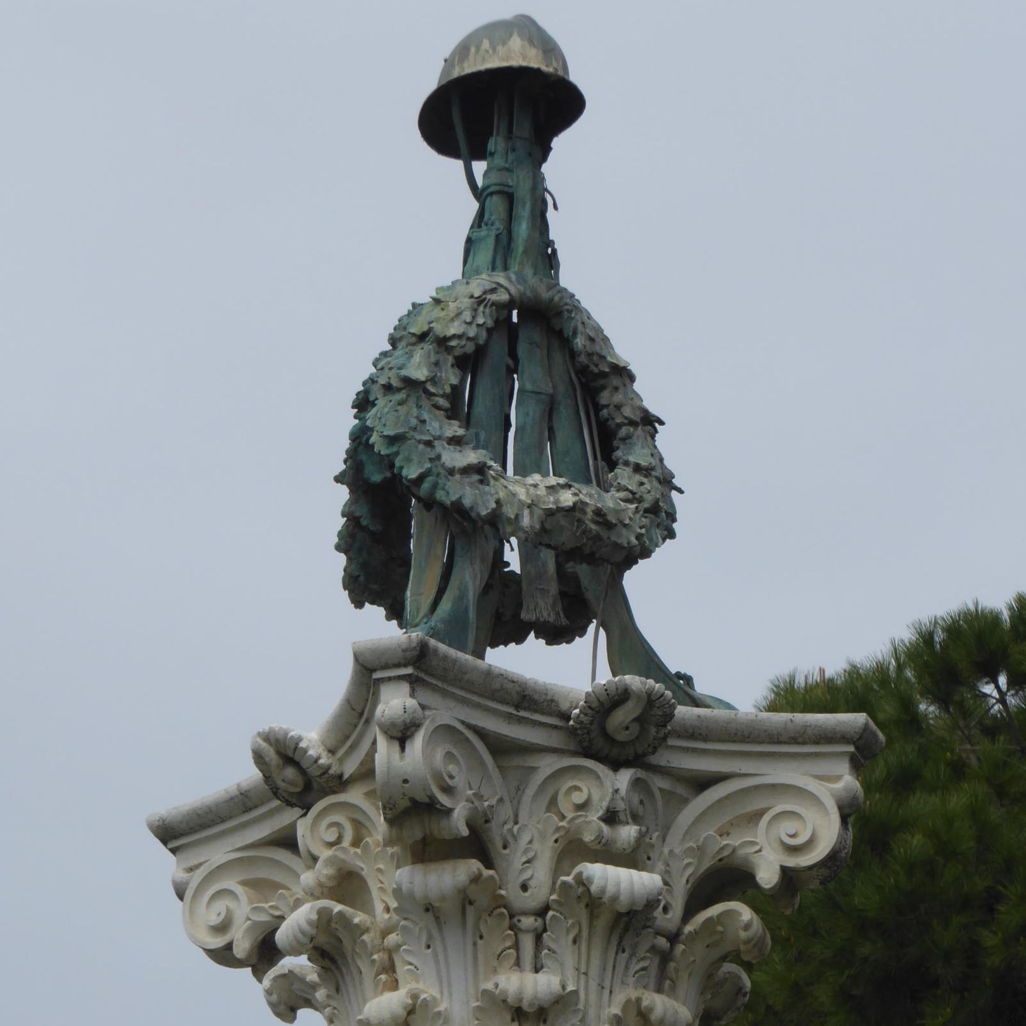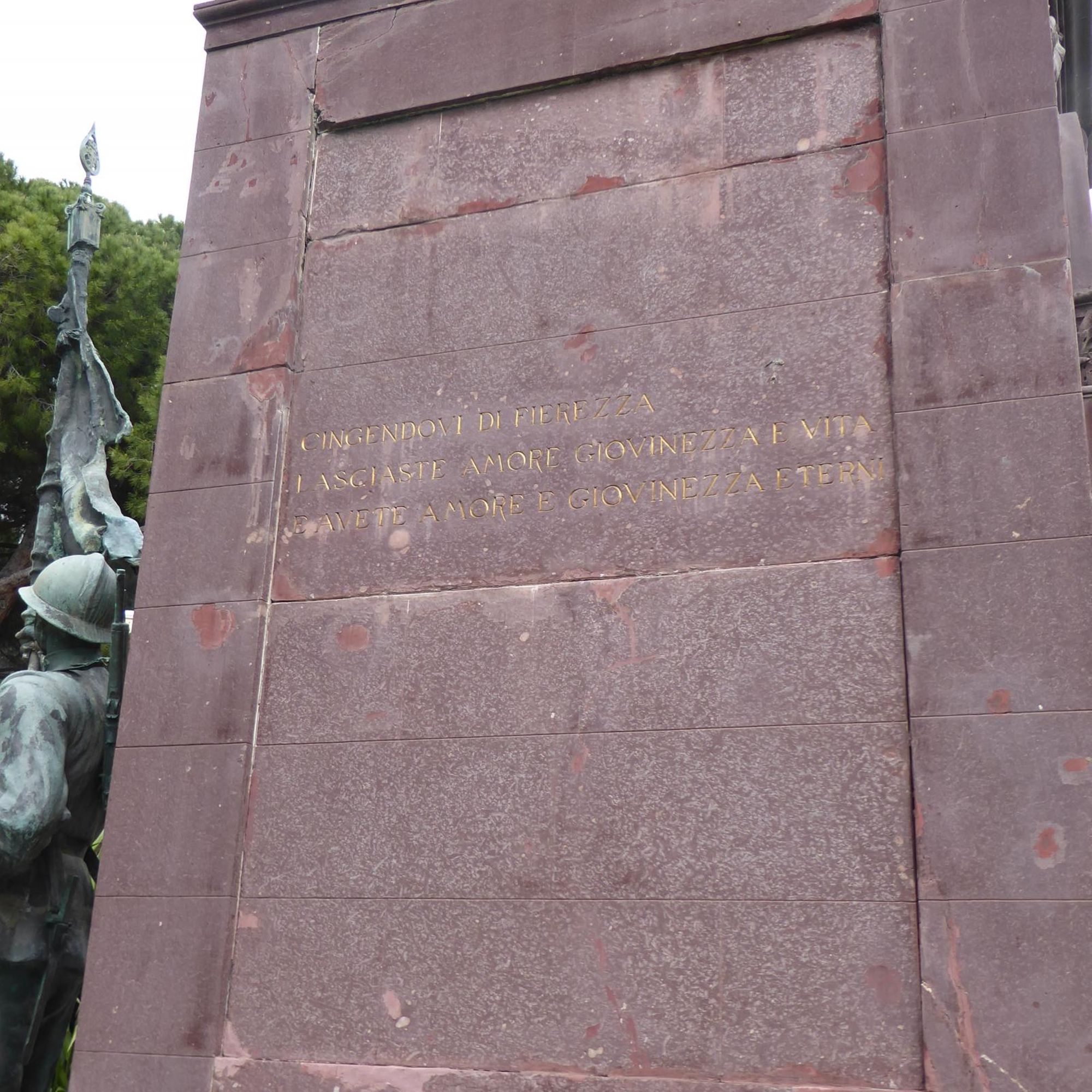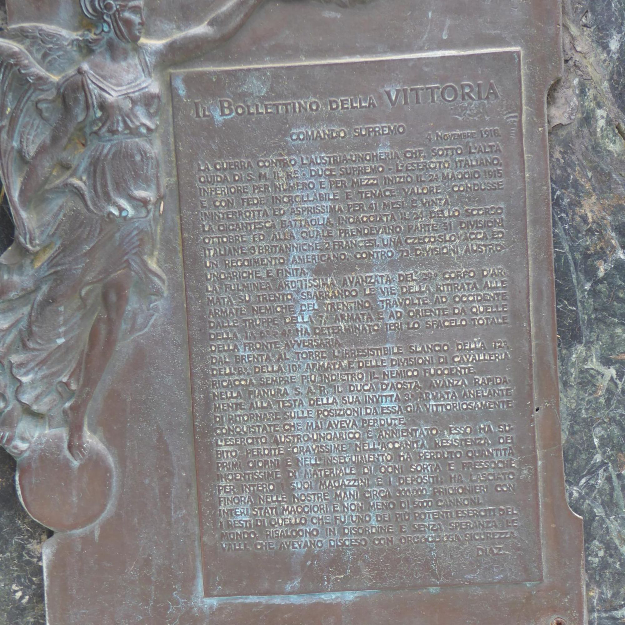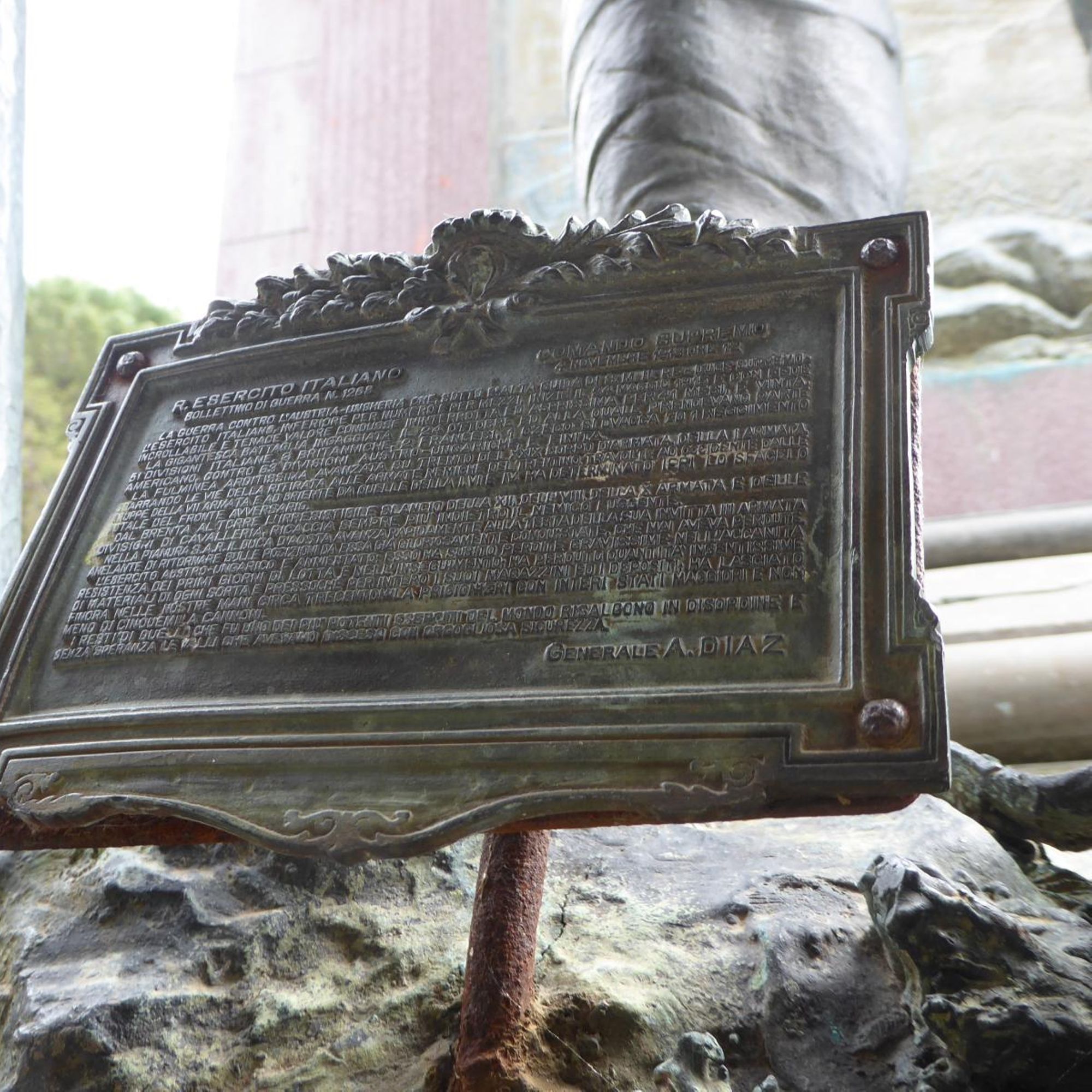 Sur une plaque en bronze de l'assise, ornée d'une Victoire casquée et ailée:
