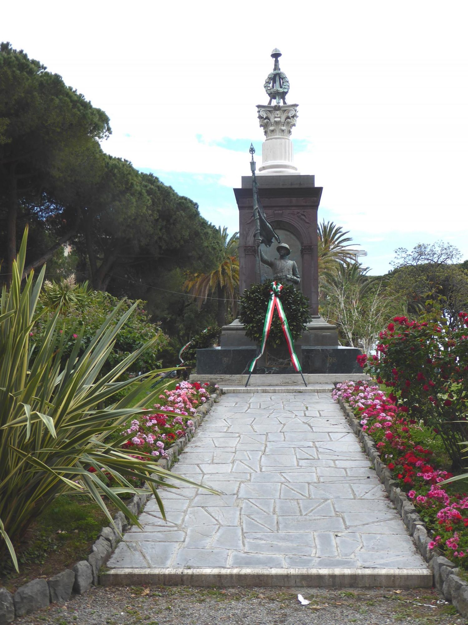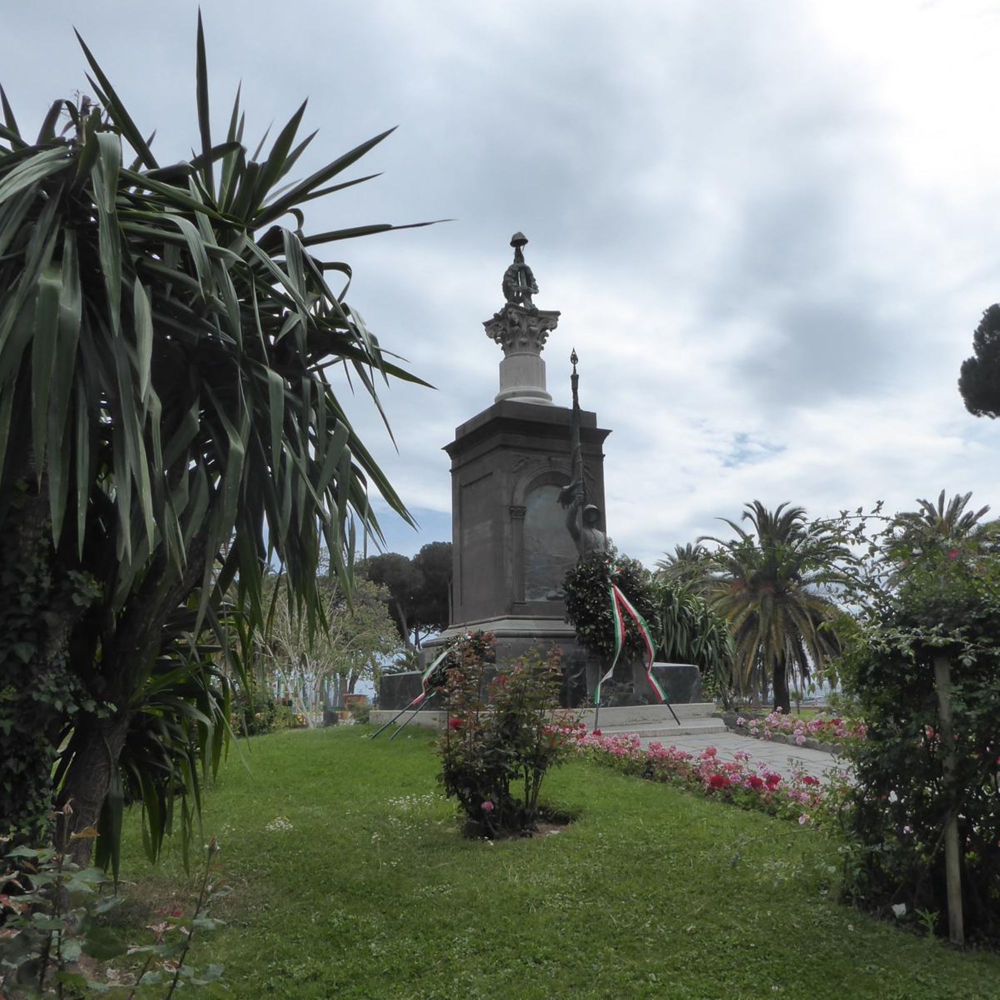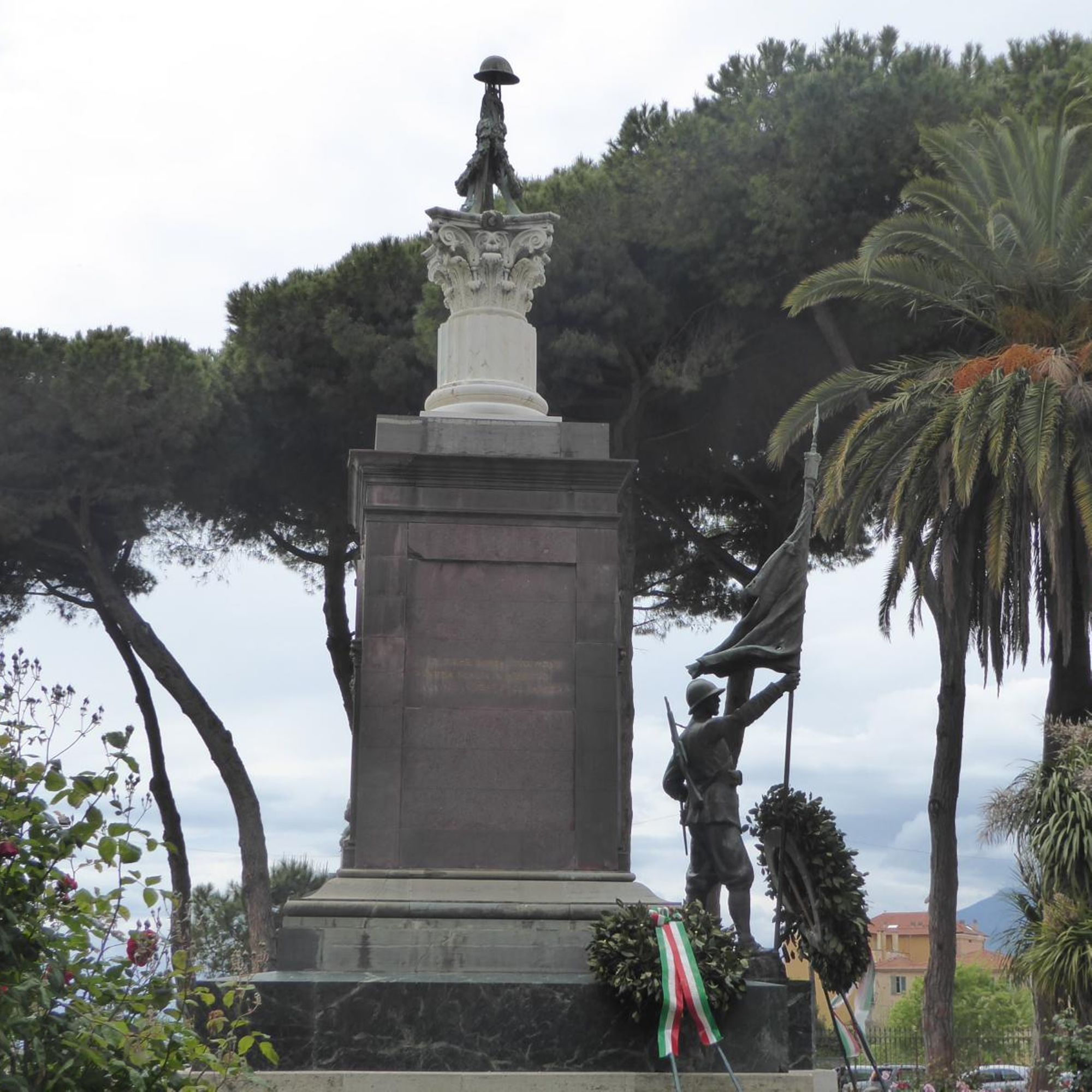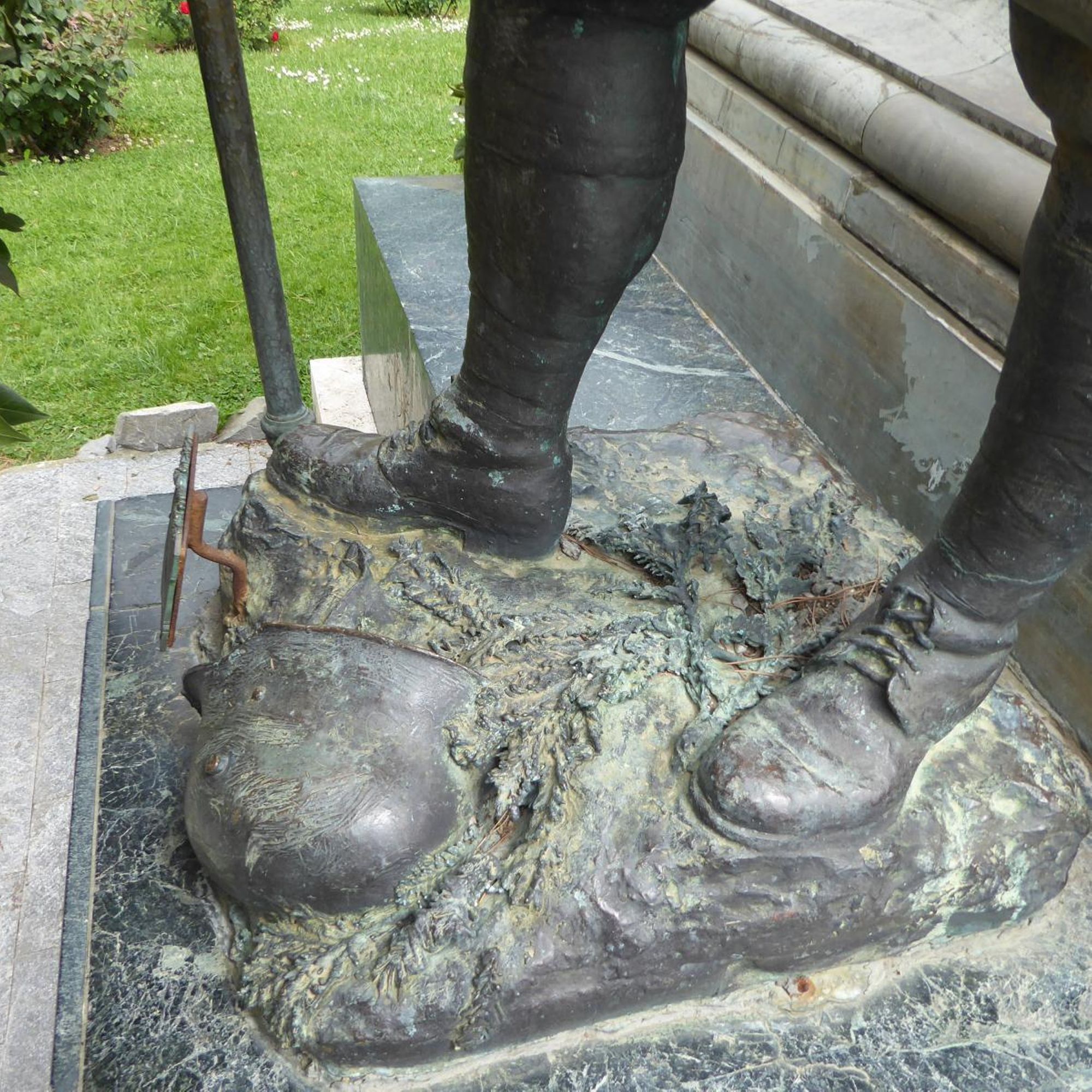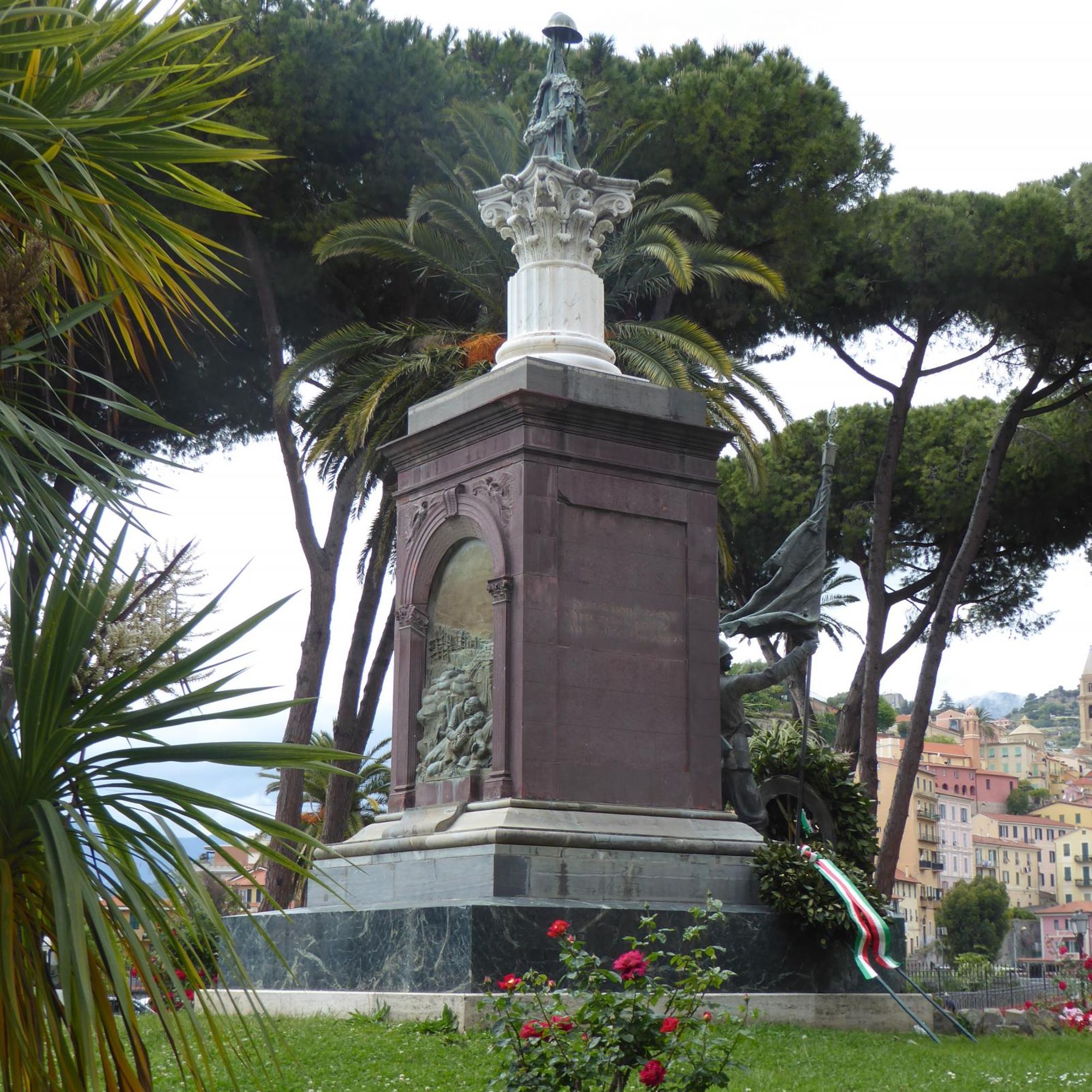 Sur une plaque en bronze de l'assise, ornée d'une Victoire casquée et ailée: