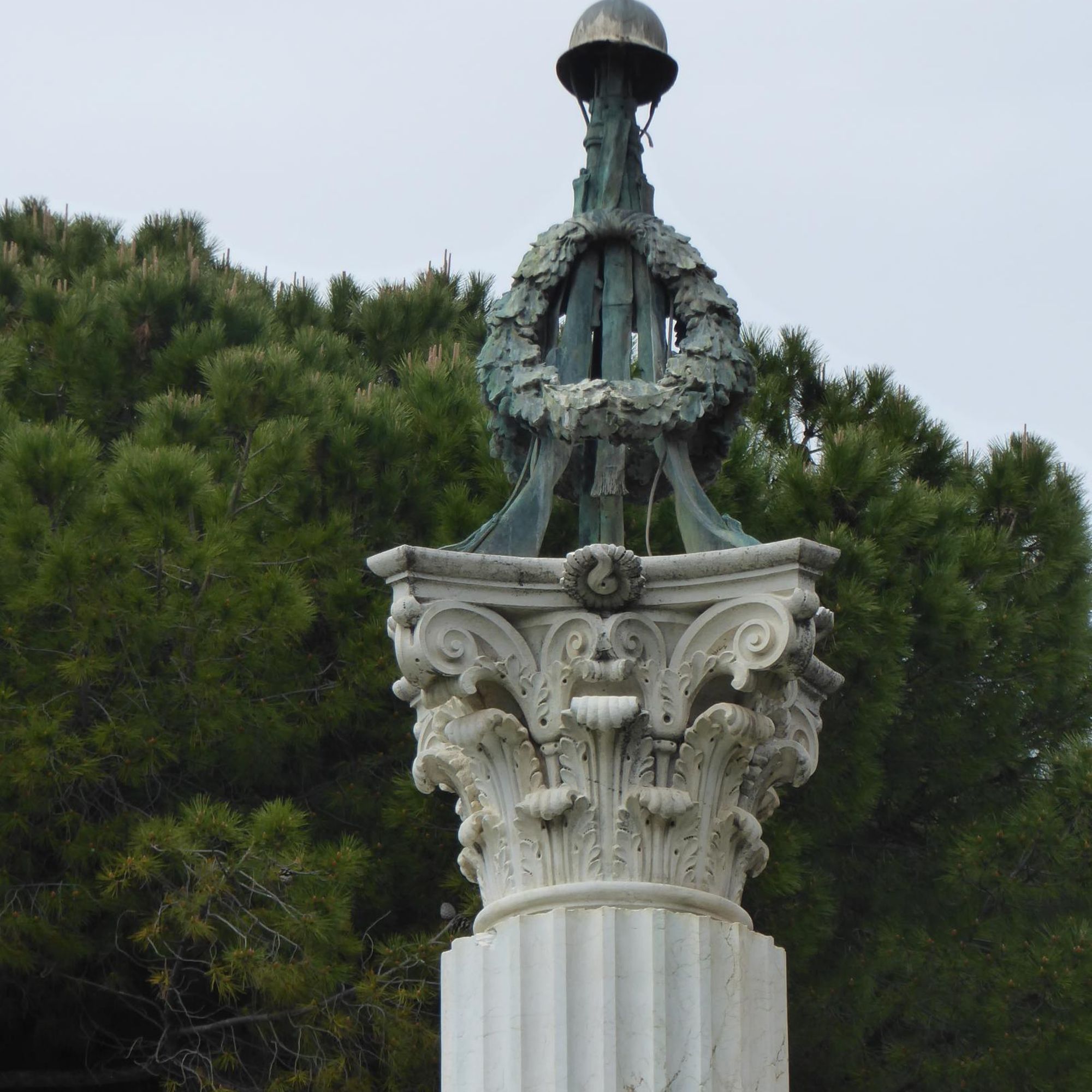 Sur une assise à trois degrès, se dresse un piédestal de style classique supportant une base de colonne corinthienne sur laquelle est posé un châpiteau corinthien.