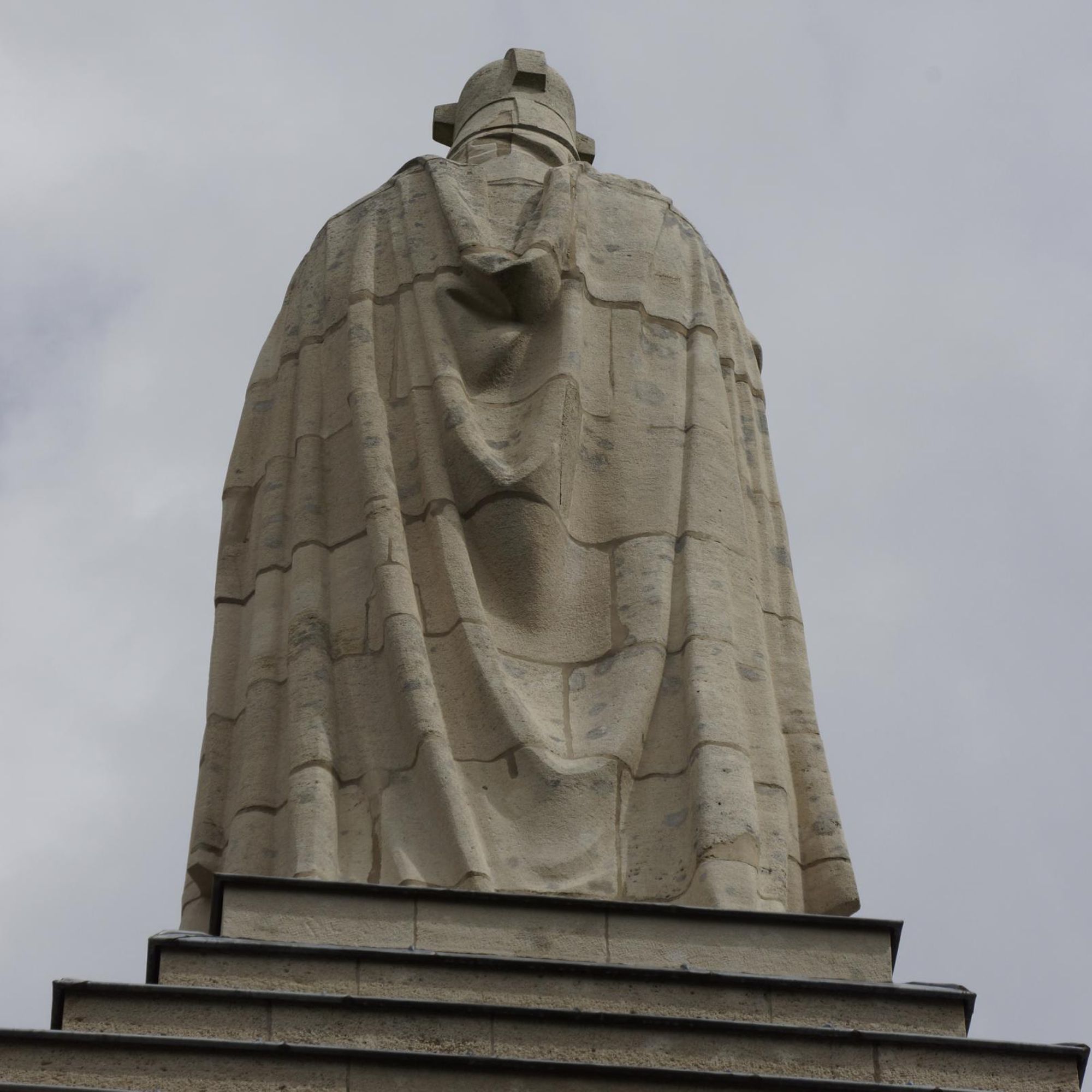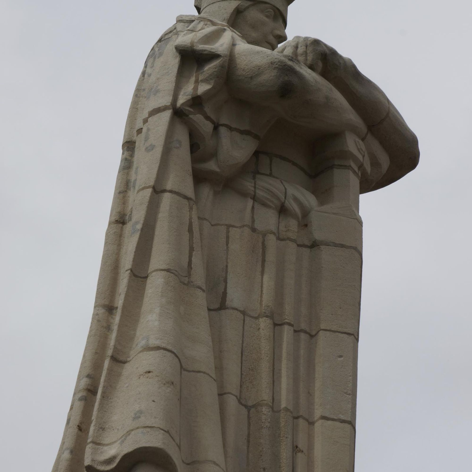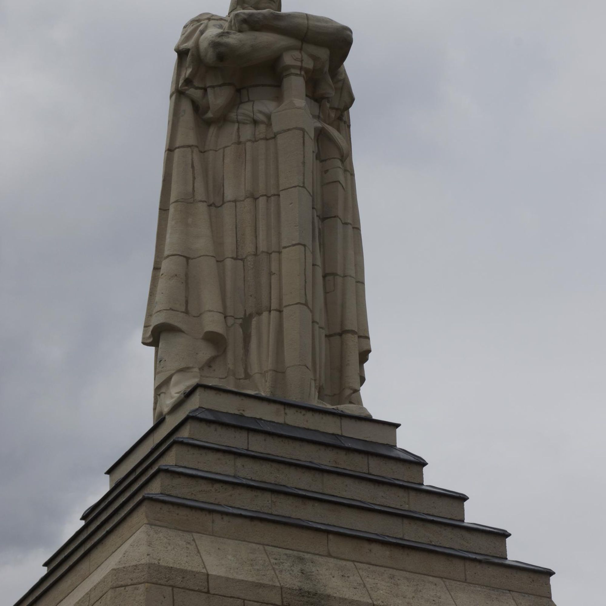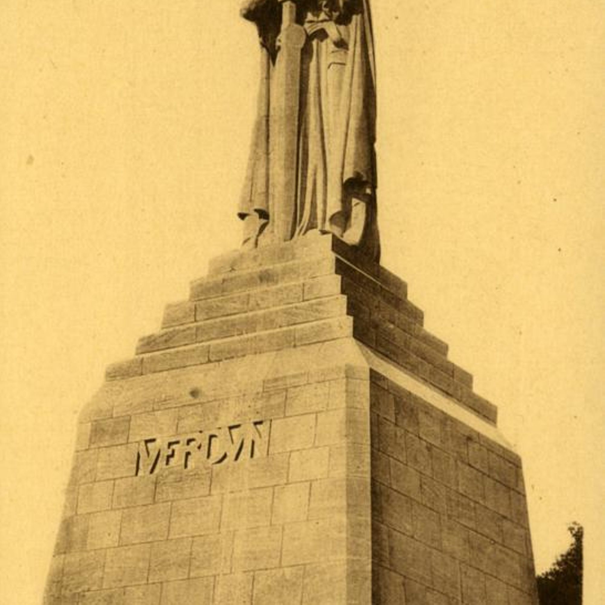 Du haut d'une tour pyramidale de 30 m au sommet tronqué, un guerrier franc appuyé sur son épée massive monte la garde, le regard porté vers les champs de bataille à l'est. Au pied de la pyramide, une crypte abrite trois niches présentant sur des socles de marbre les Livres d'Or des soldats français et américains ayant combattu en Meuse (les Livres sont aujourd'hui visibles en mairie).