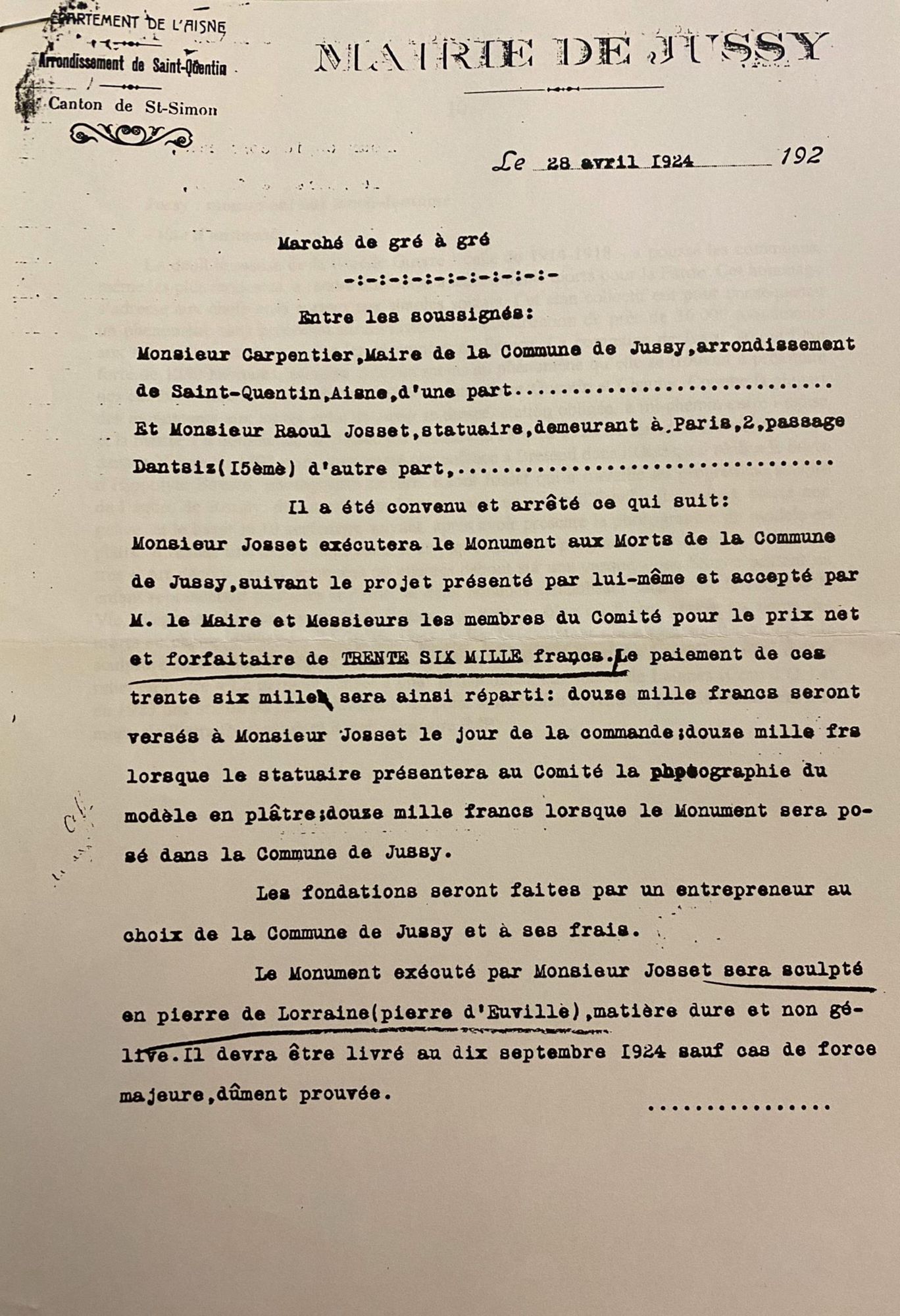 Le monument sera sculpté en pierre de Lorrain (pierre d'Euville), matière dure et non gélive
