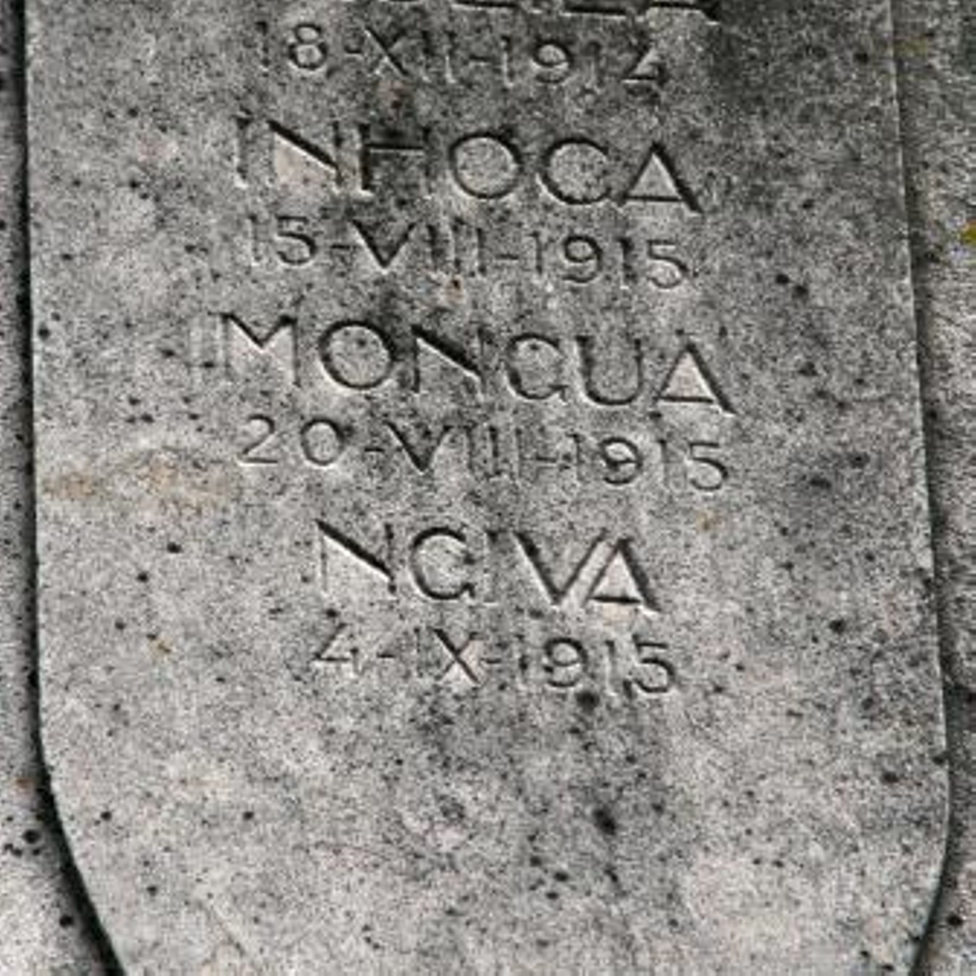 Sur ses trois autres faces, le haut du pilier porte un écusson de même dimension sur lesquels sont gravés les noms des campagnes auxquelles prirent part les soldats portugais.
