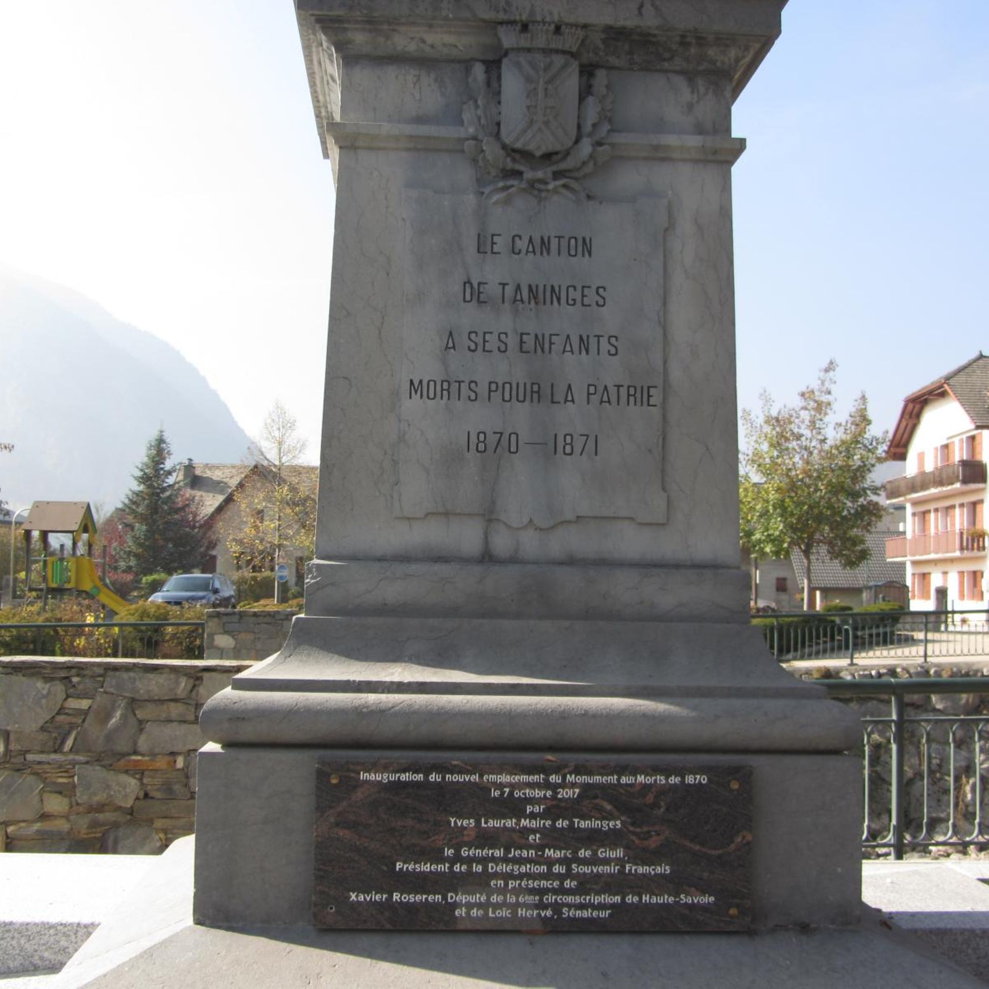 par Yves Laurat, Maire de Taninges et le général Jean-Marc de Giuli, Président de la Délégation du Souvenir Français en présence de Xavier Roseren, Député de la 6ème circonscription de Haute-Savoie et de Loïc Hervé, Sénateur