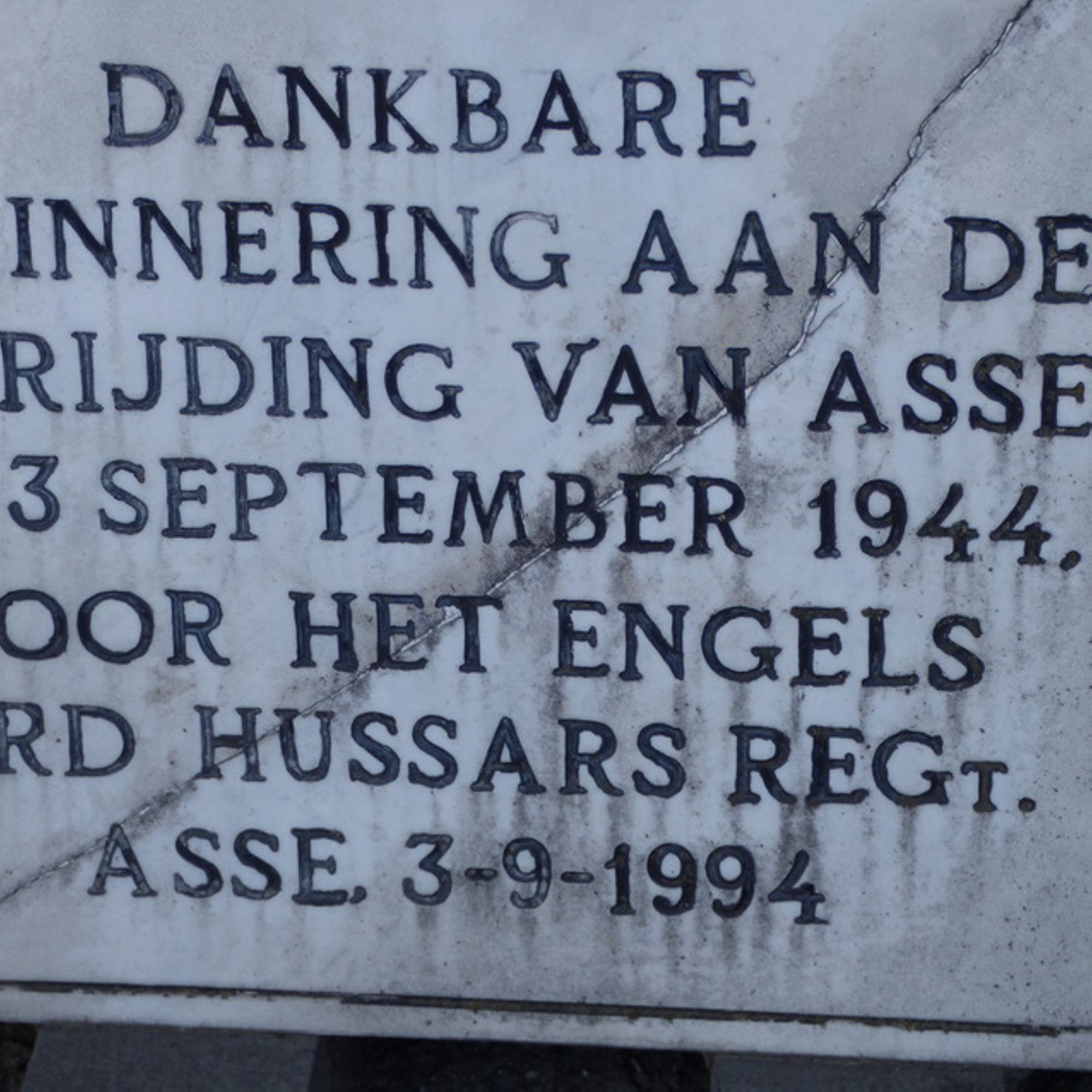 Plaque de remerciement au 23e Rgt Hussard anglais pour la libération de Asse en 1944
