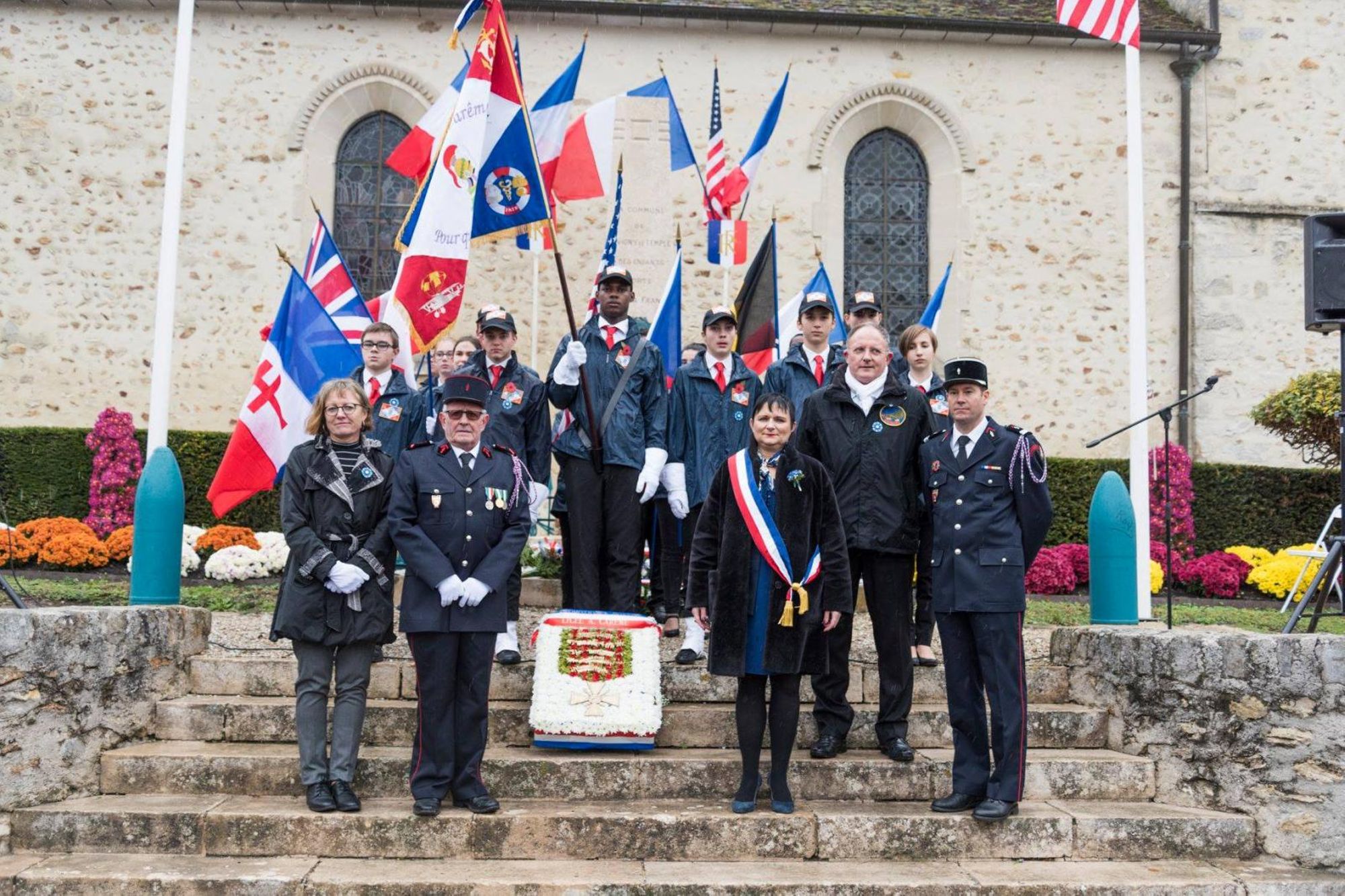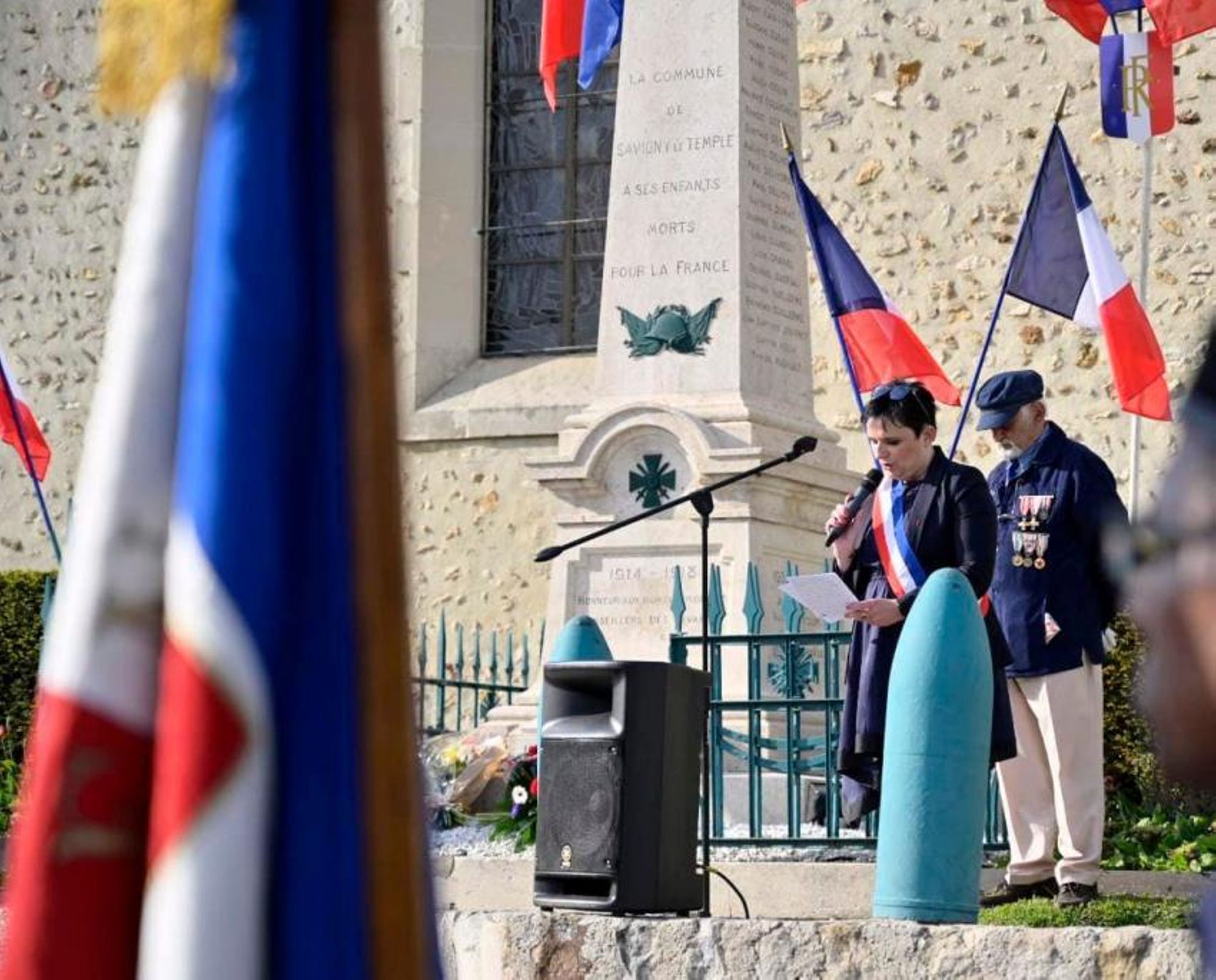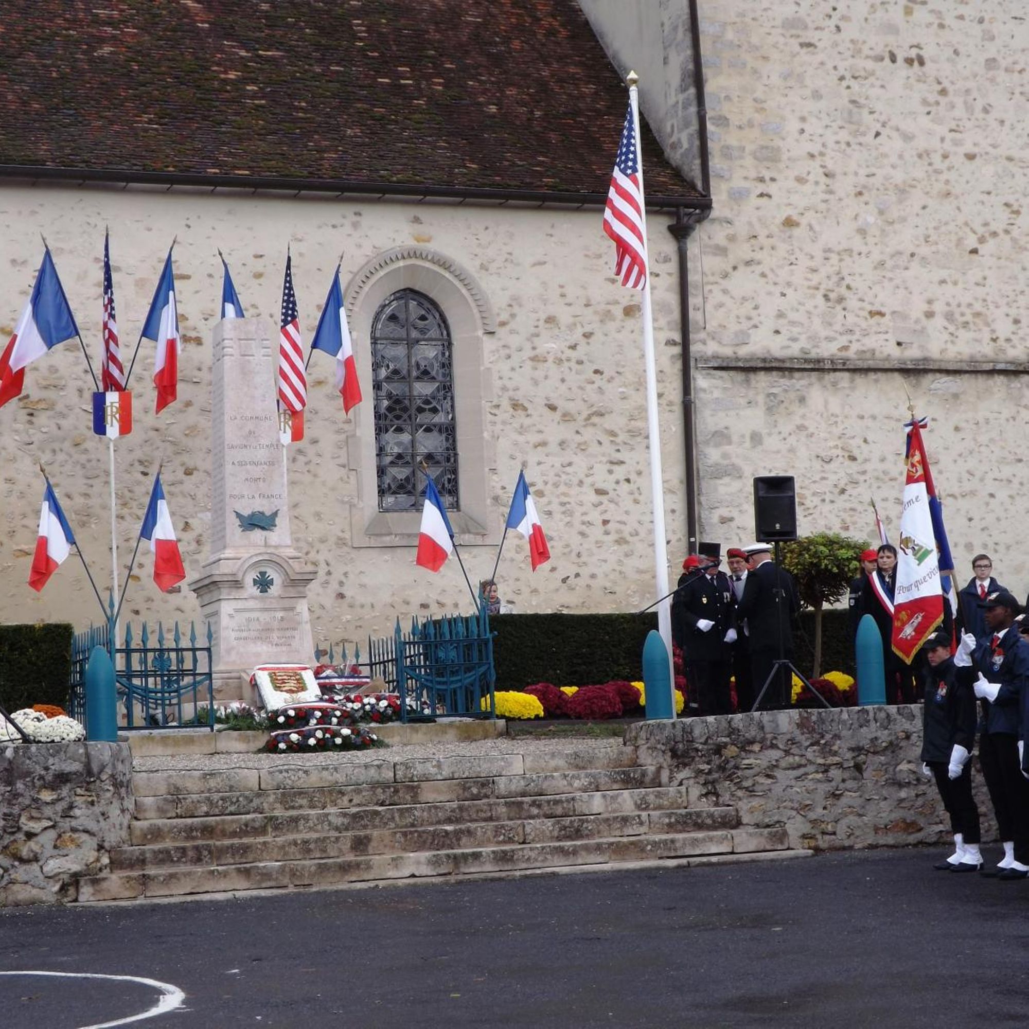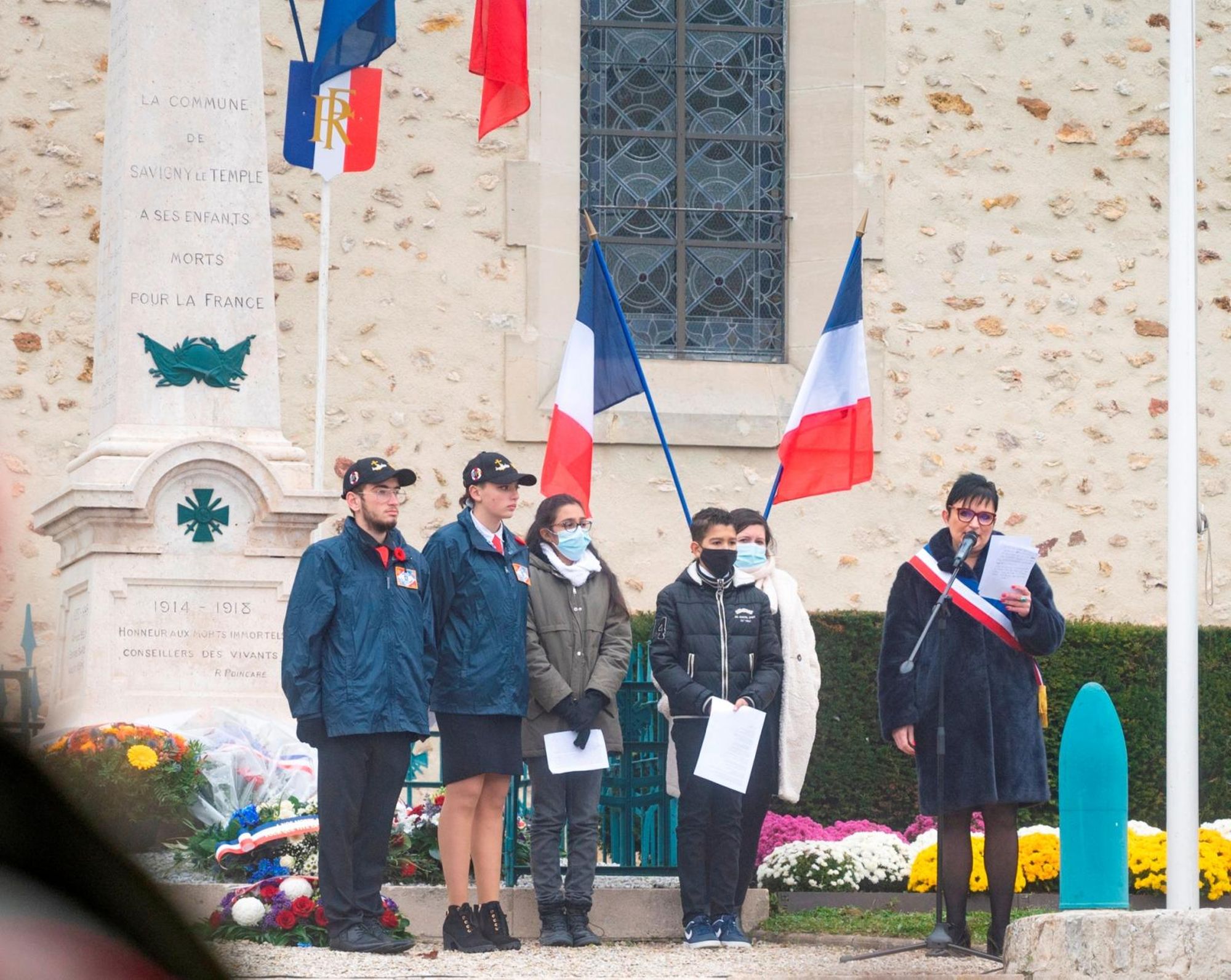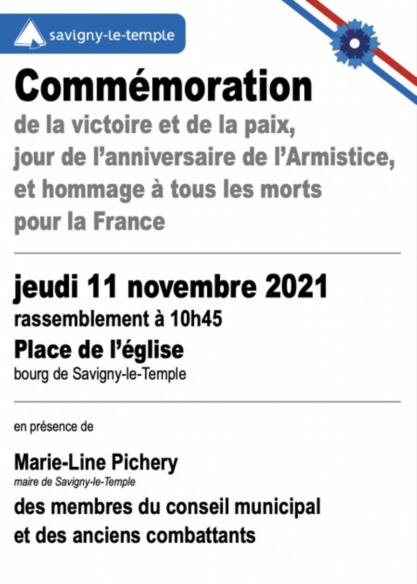 Commémoration de la victoire et de la paix, jour de l'anniversaire de l'Armistice, et hommage à tous les morts pour la France, en présence de Marie-Line Pichery, maire de Savigny-le-Temple, des membres du conseil municipal et des anciens combattants