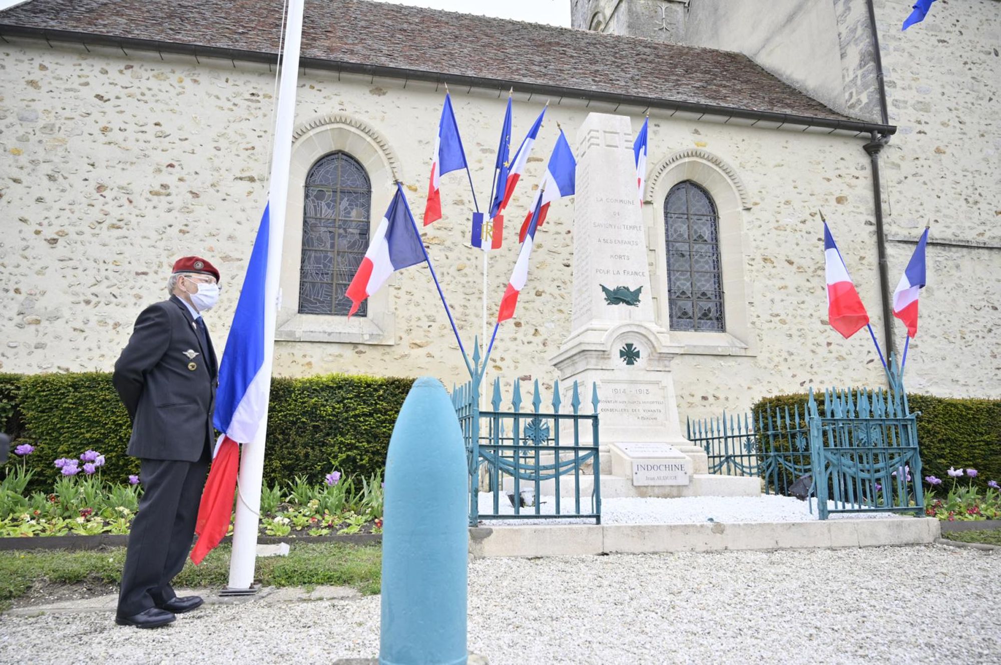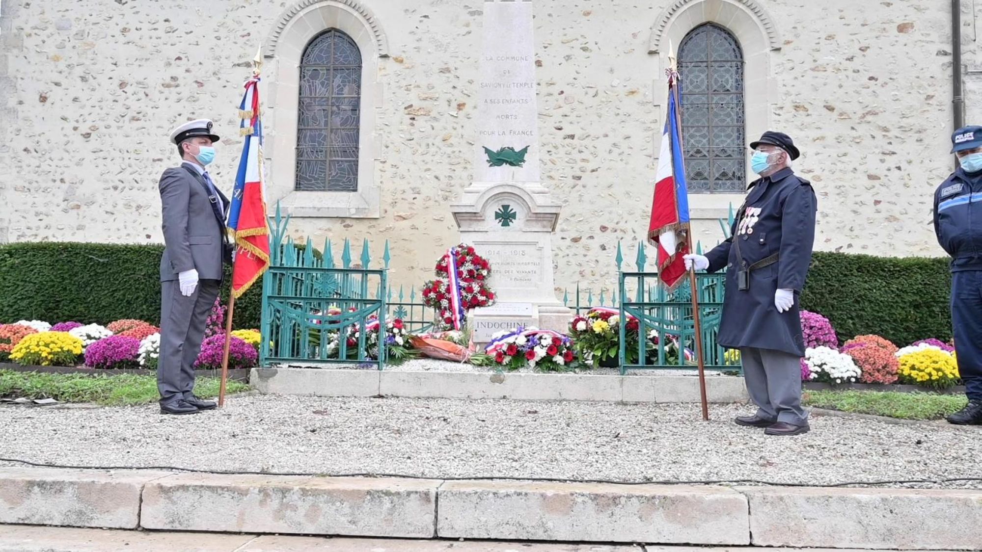 Journée nationale d'hommage aux Morts pour la France en Indochine, en présence de Marie-Line Pichery, maire de Savigny-le-Temple, accompagnée des membres du conseil municipal ainsi que des associations d'anciens combattants, avec le respect des distanciations sociales.