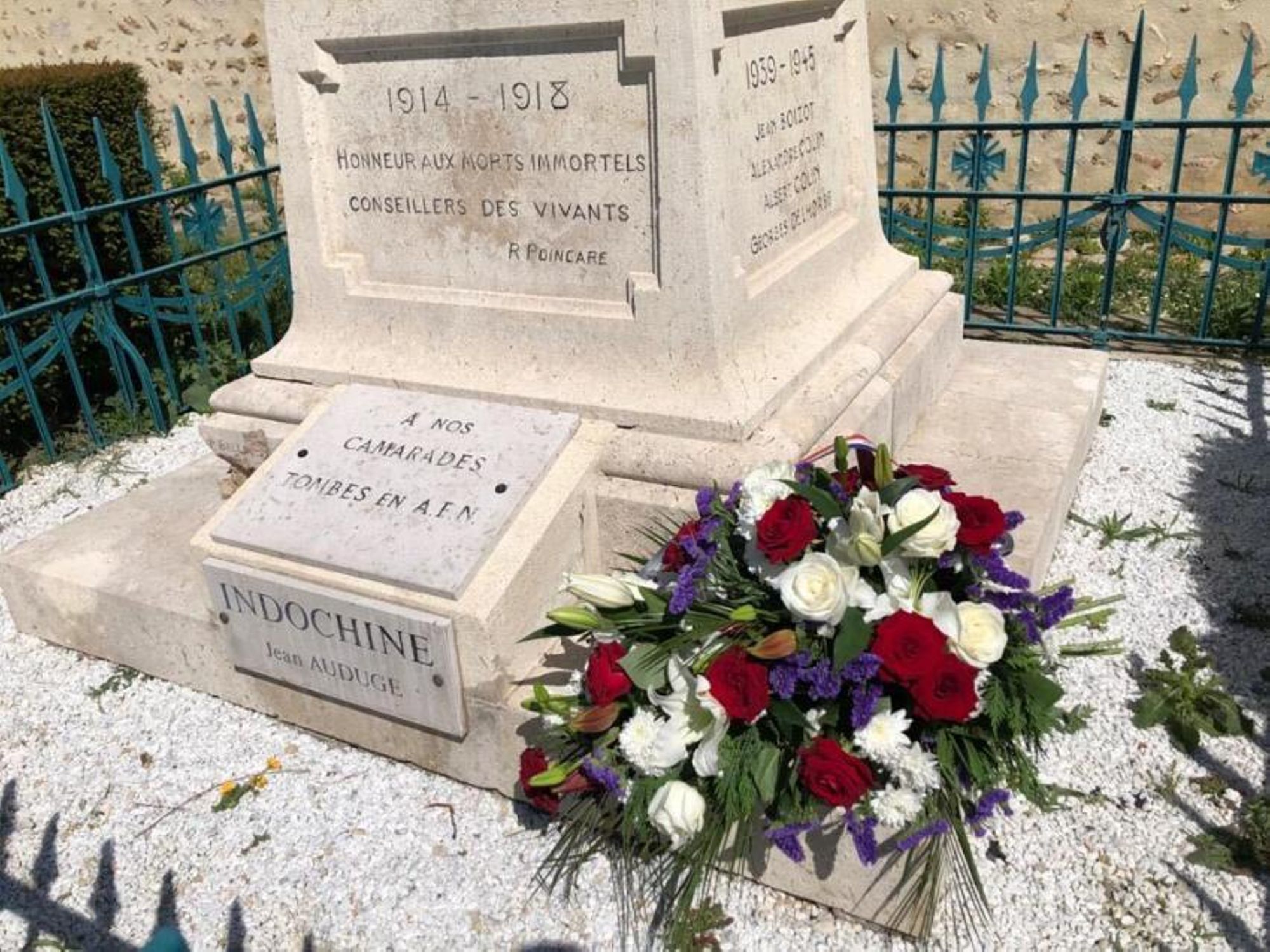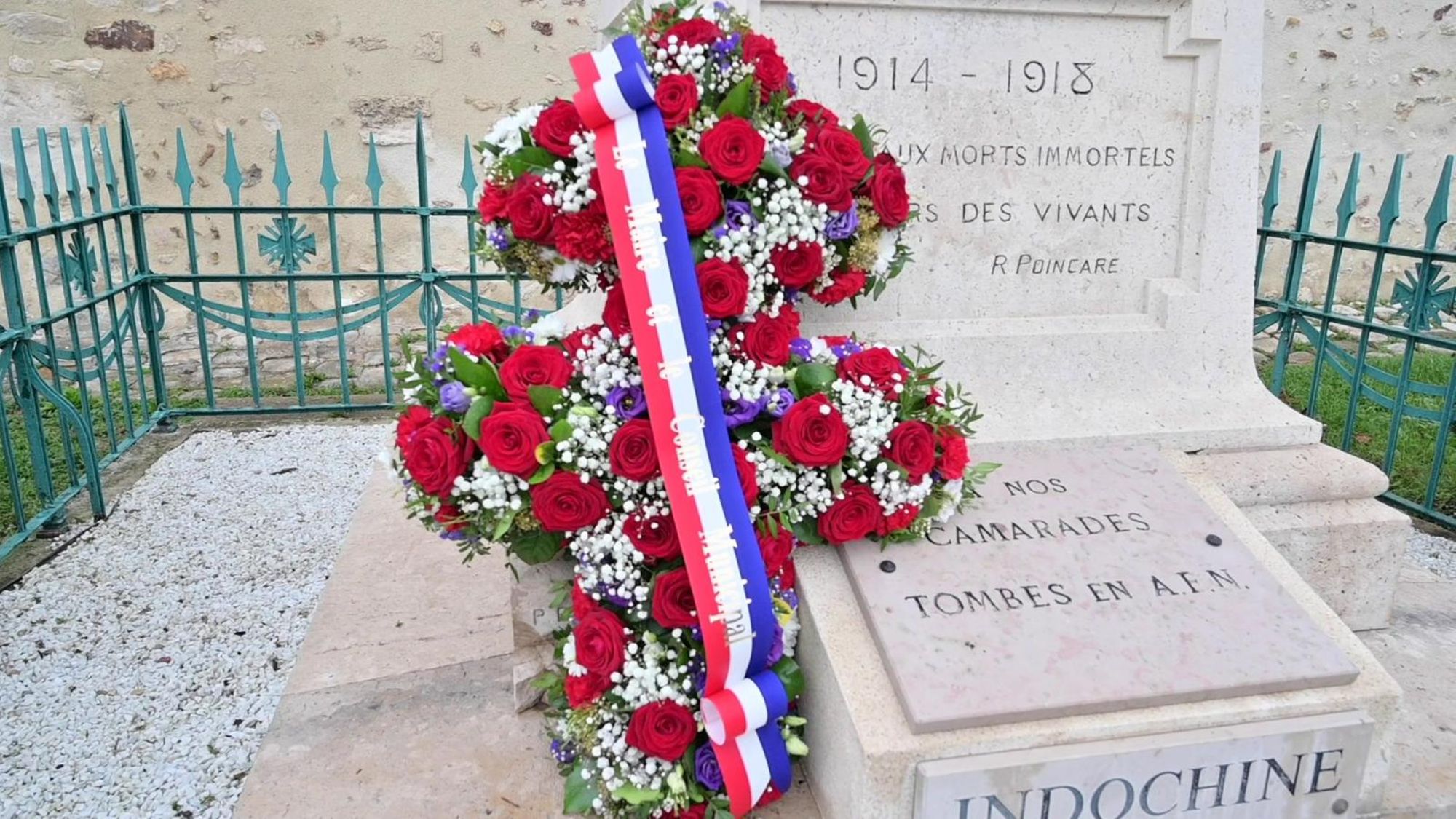 Ce matin, 18 juin 2022, une gerbe de fleurs commémorative a été déposée au pied du Monument aux Morts, en mémoire de « l’Appel historique du 18 juin à refuser la défaite et à poursuivre le combat », des anciens combattants et de la résistance française