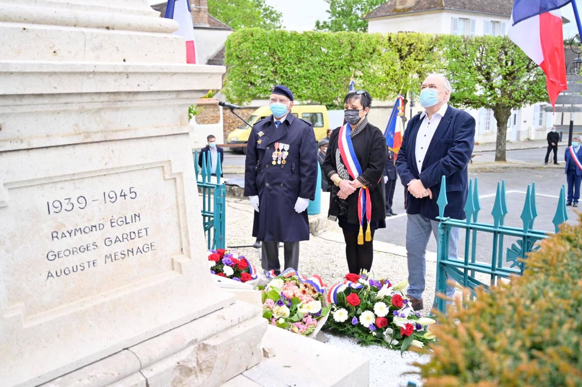 En ce samedi 8 mai 2021, la commémoration se tient au Bourg, menée par Mme le maire, avec les représentants des anciens combattants. Présent également, René Frikart, délégué aux politiques mémorielles de la ville et au suivi des associations des anciens combattants, Cathy Bissonier, conseillère départementale et Olivier Faure, député de la 11ème circonscription.